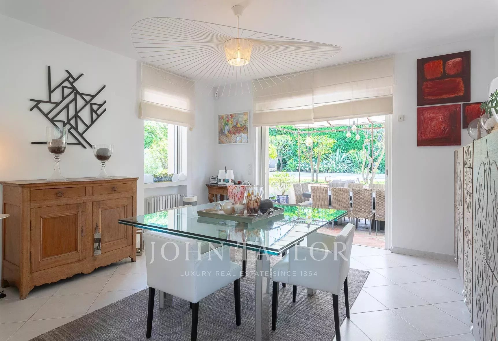 - Eine offene Küche mit Zugang zum Esszimmer und zur überdachten, windgeschützten Terrasse.