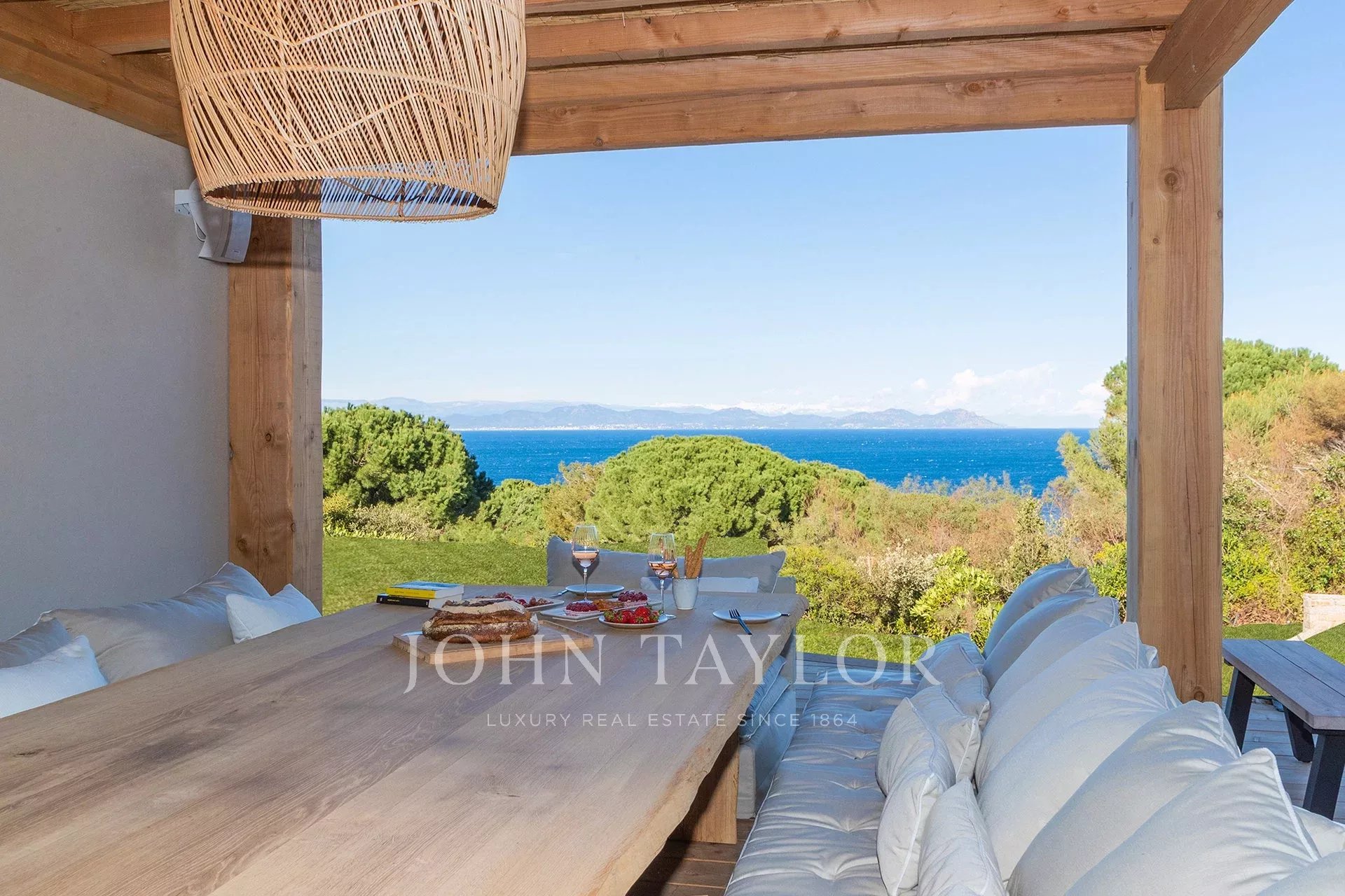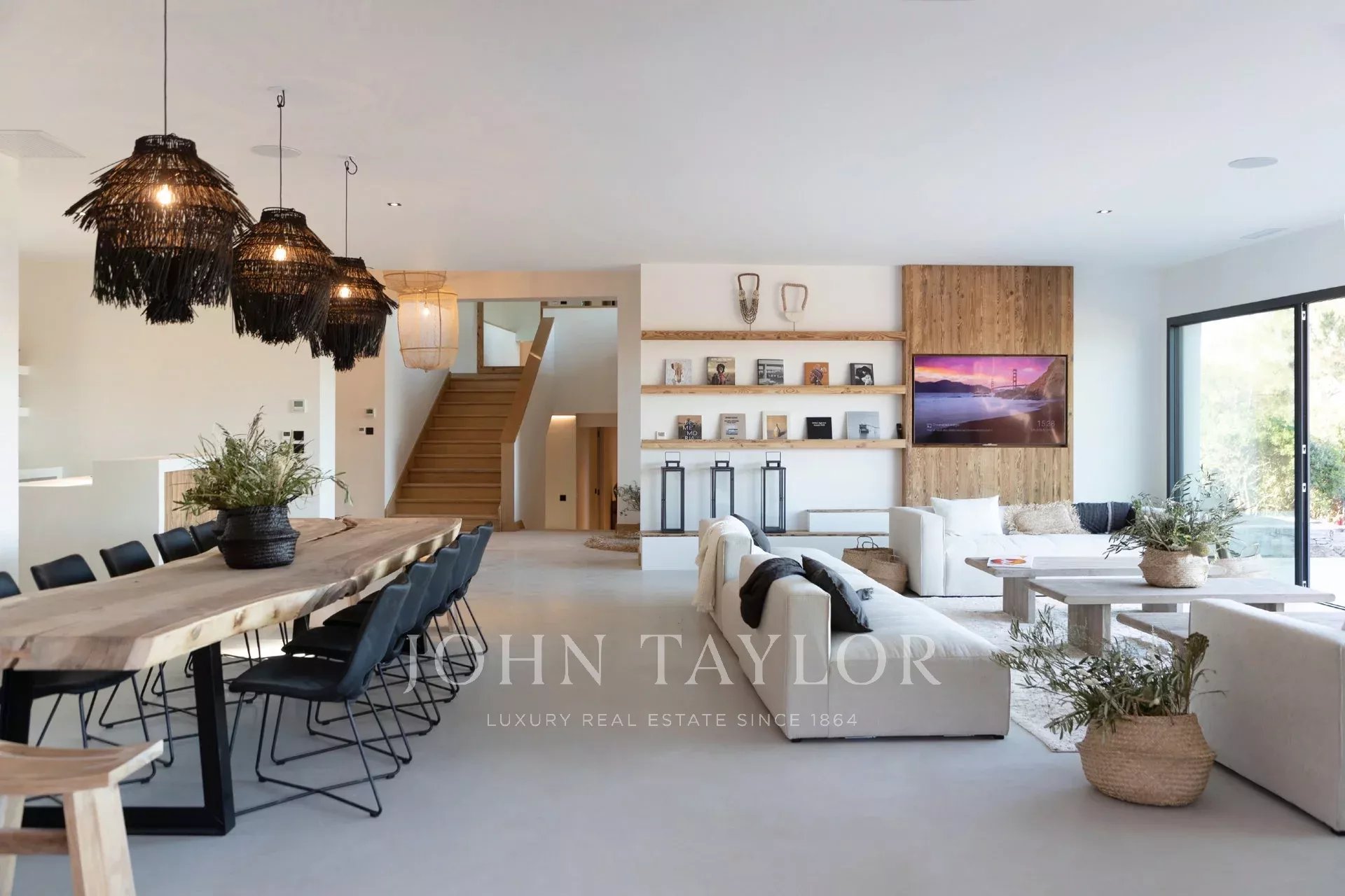 - einem großen, hellen und raffinierten Wohnbereich mit einem Esszimmer, das sich zu einer überdachten Terrasse hin öffnet.