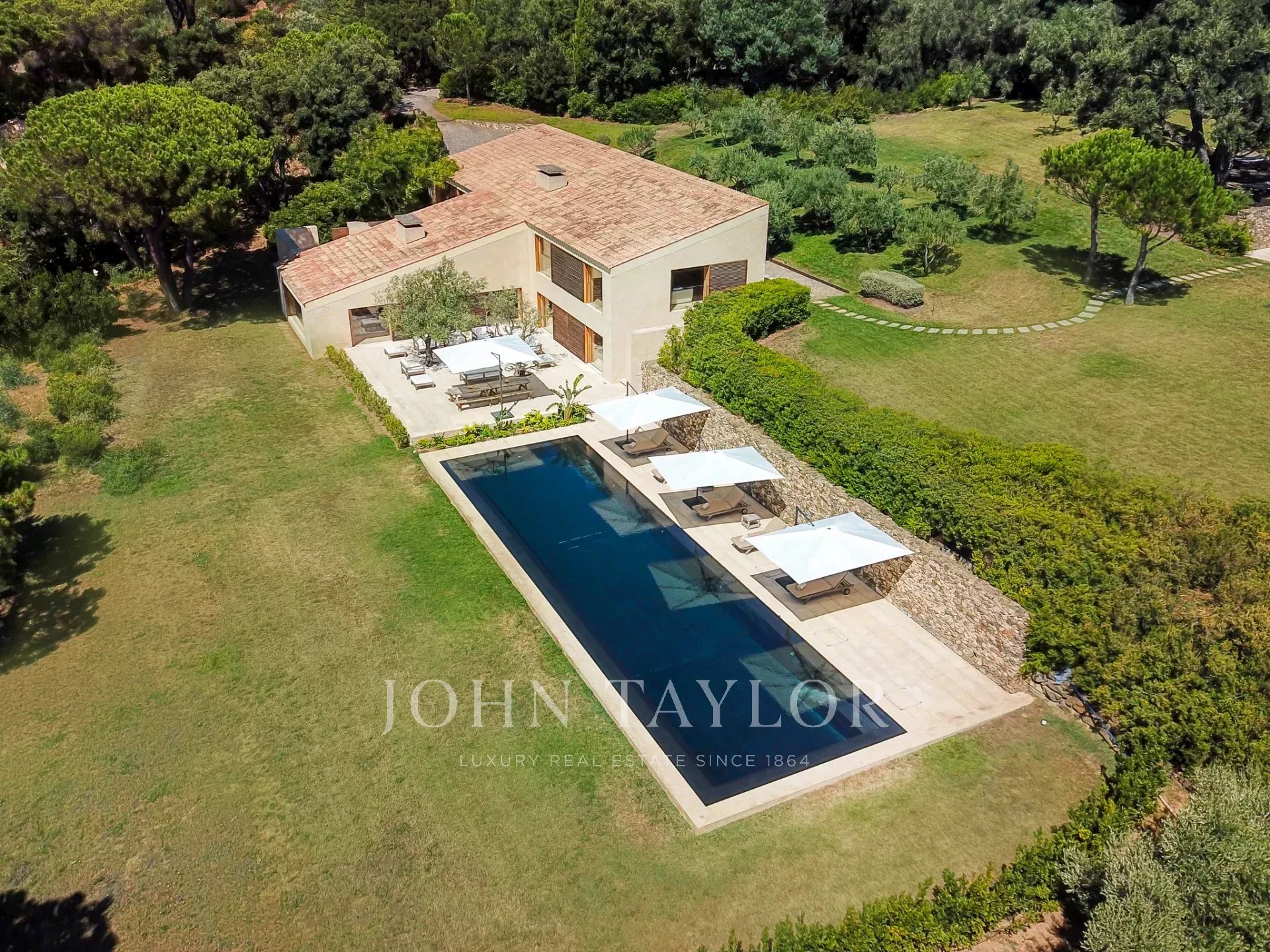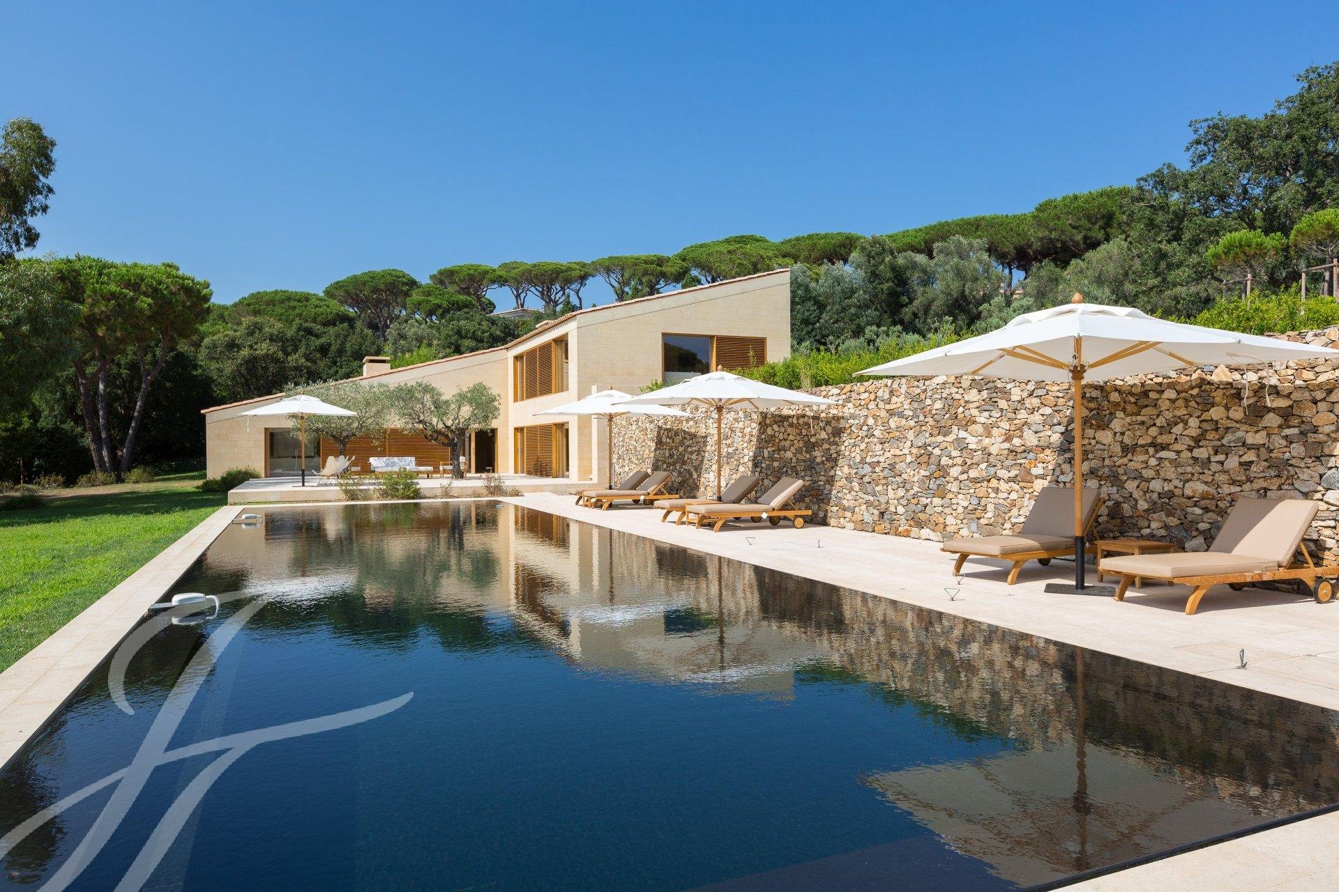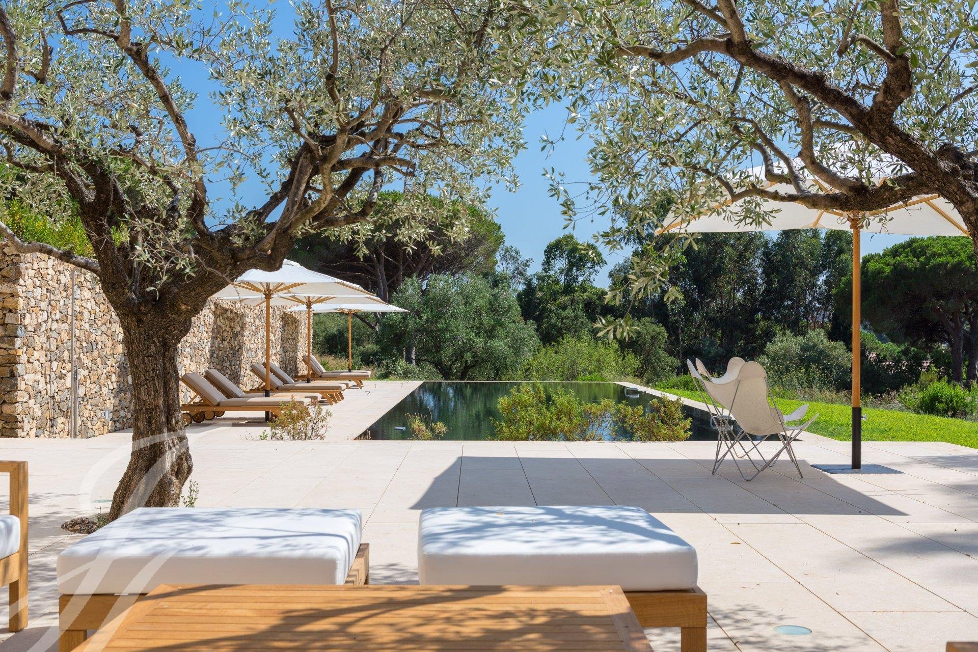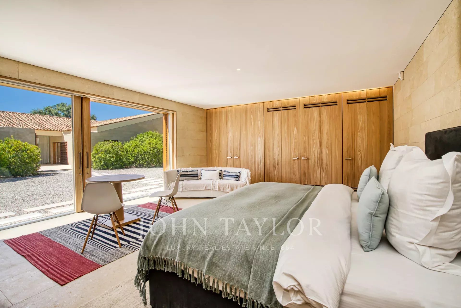 Exklusives Anwesen in den Parks von Saint-Tropez, das als Ganzes gemietet werden kann, d.h. 8 Zimmer. Es wurde von John Pawson, einem britischen Architekten, entworfen und setzt sich wie folgt zusammen: