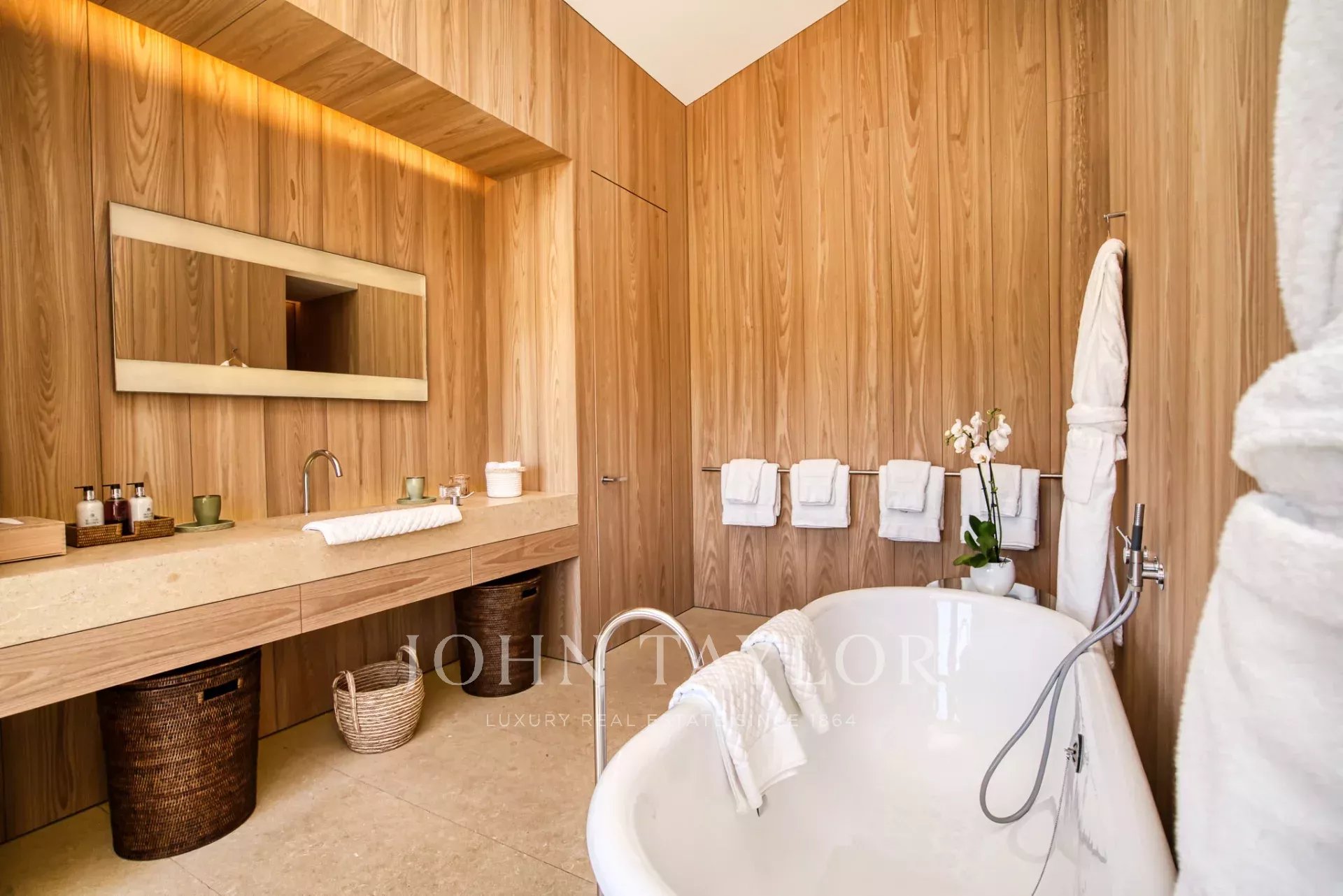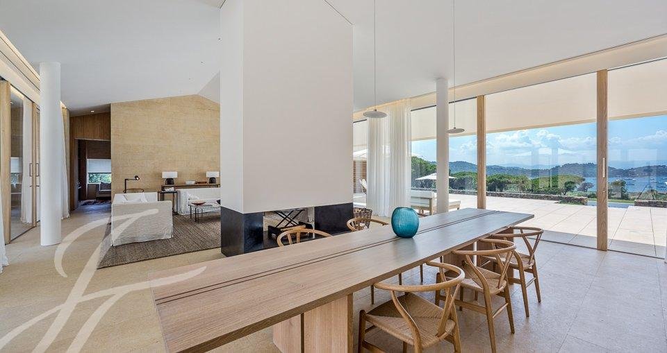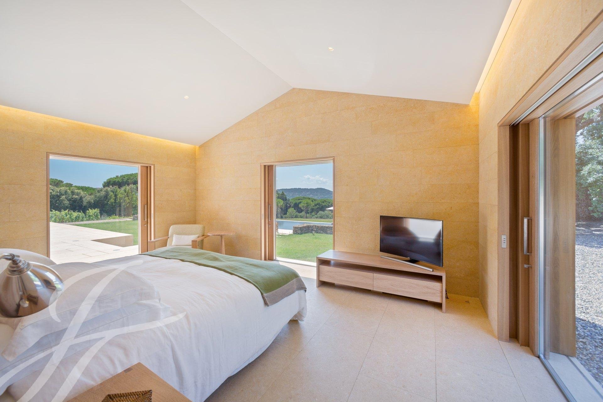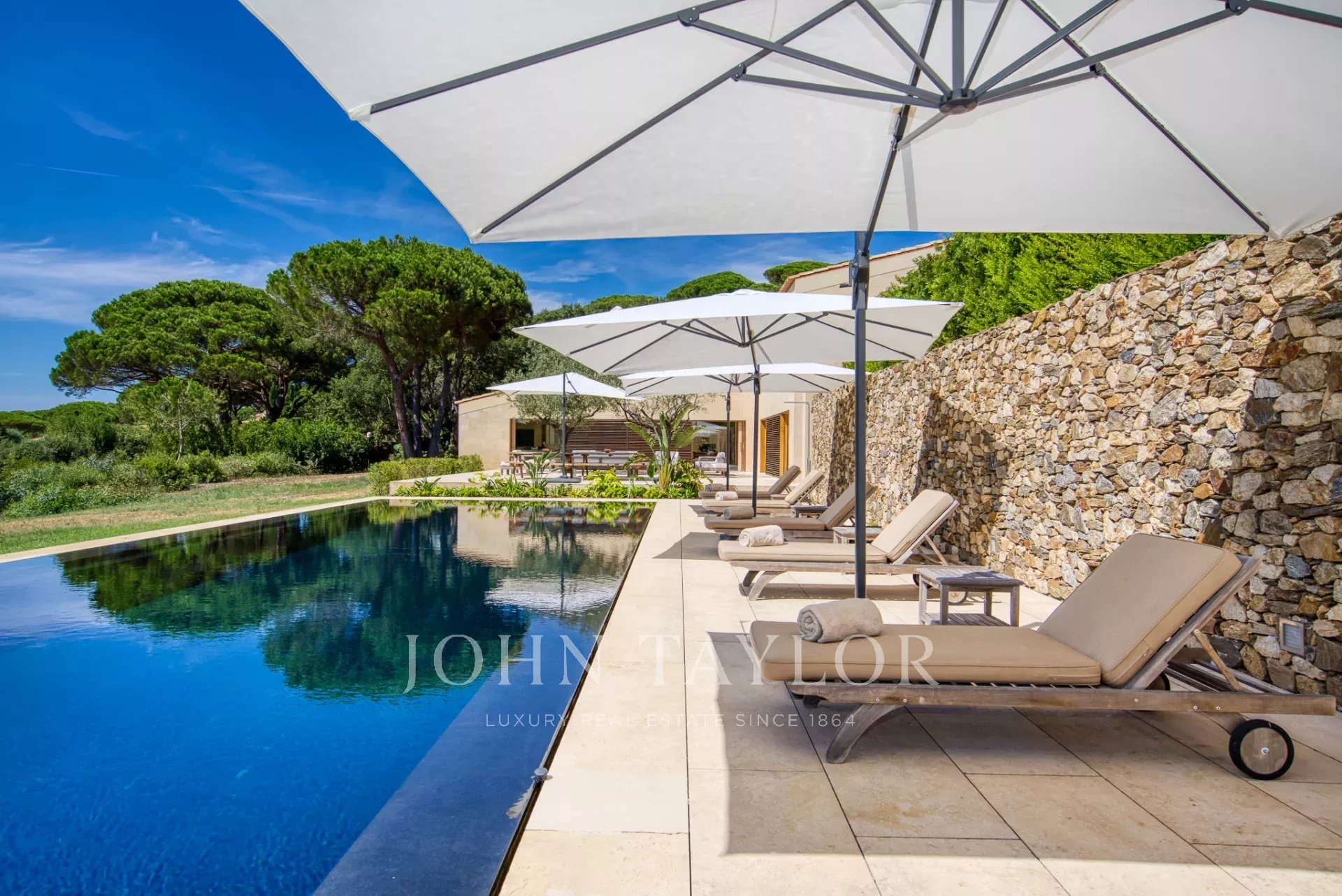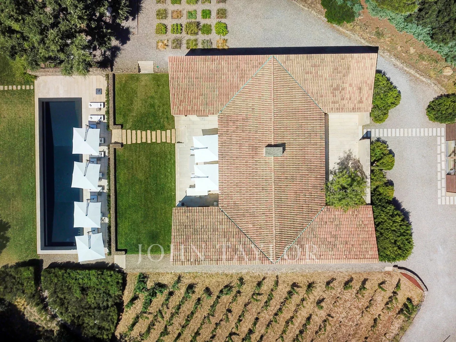 Exklusives Anwesen in den Parks von Saint-Tropez, das als Ganzes gemietet werden kann, d.h. 8 Zimmer. Es wurde von John Pawson, einem britischen Architekten, entworfen und setzt sich wie folgt zusammen: