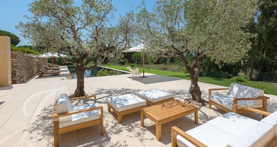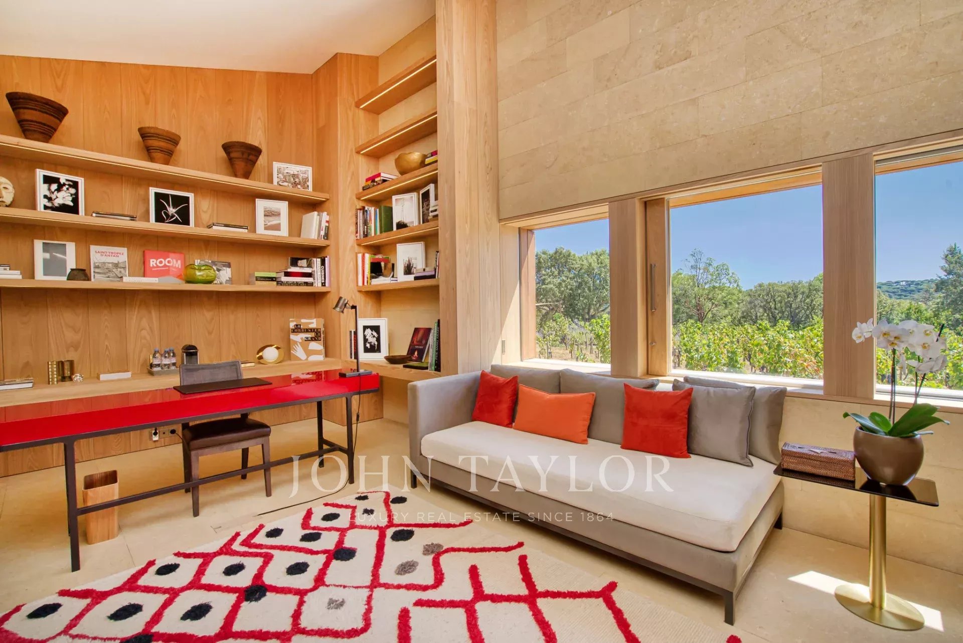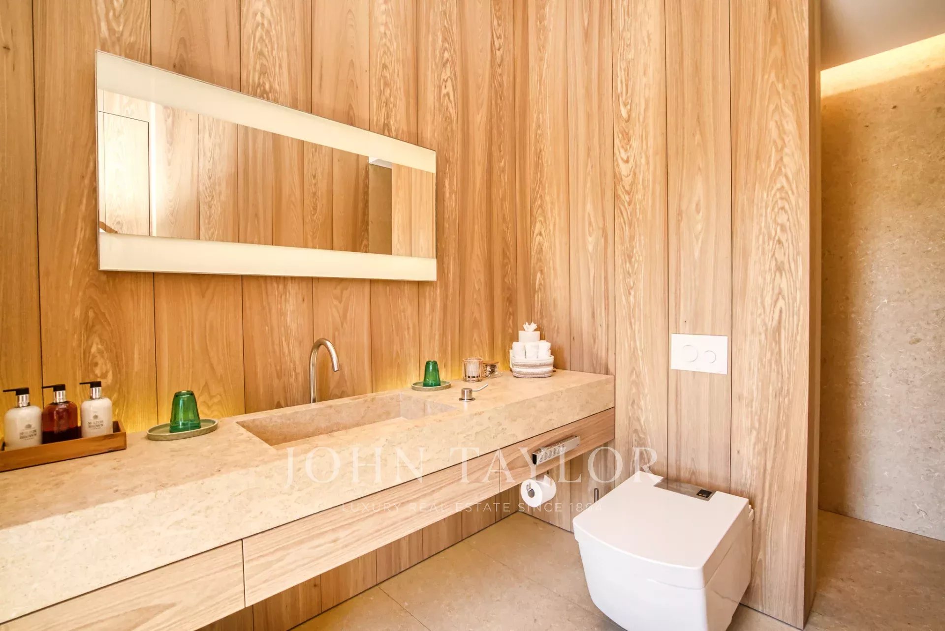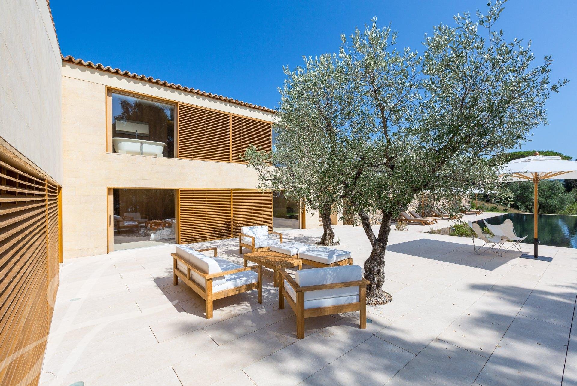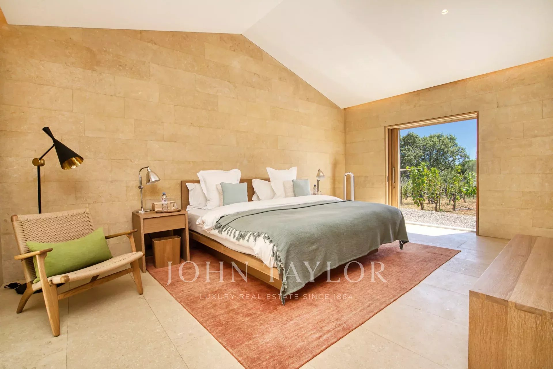 Exklusives Anwesen in den Parks von Saint-Tropez, das als Ganzes gemietet werden kann, d.h. 8 Zimmer. Es wurde von John Pawson, einem britischen Architekten, entworfen und setzt sich wie folgt zusammen: