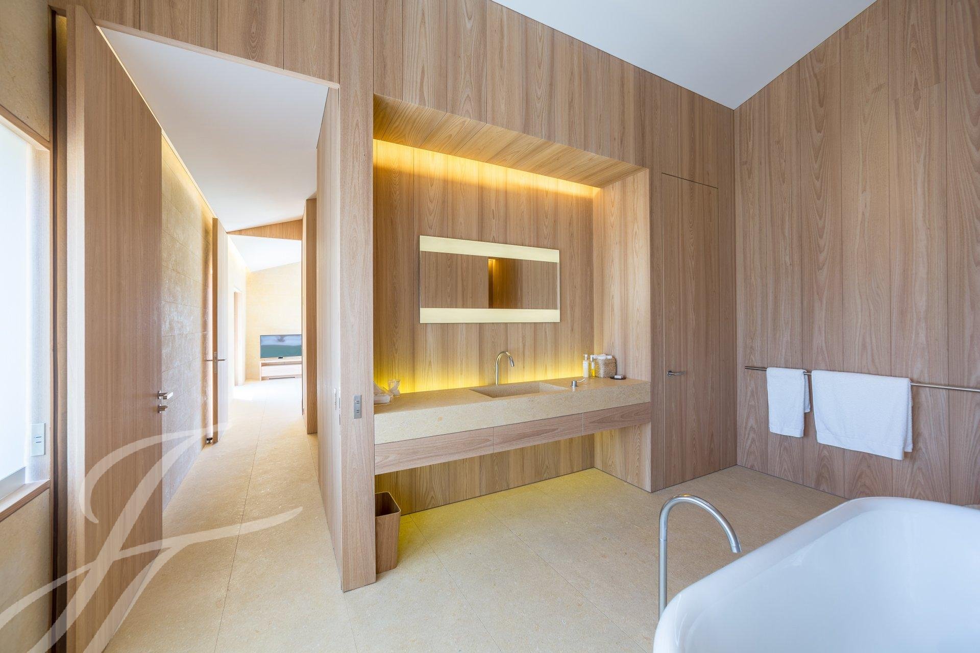 Ausstattung: Toto Toilette, beheizter Spiegelpool, Decke und Boden mit Strahlungsplatten zum Heizen und Kühlen, Entfeuchtungssystem, Wasseraufbereitung gegen Legionellen, internes und externes Beleuchtungssystem, Kontrollsystem mit Ergo Home Automation System, Alarmanlage, Feuerlöscher an Alarmanlage angeschlossen.