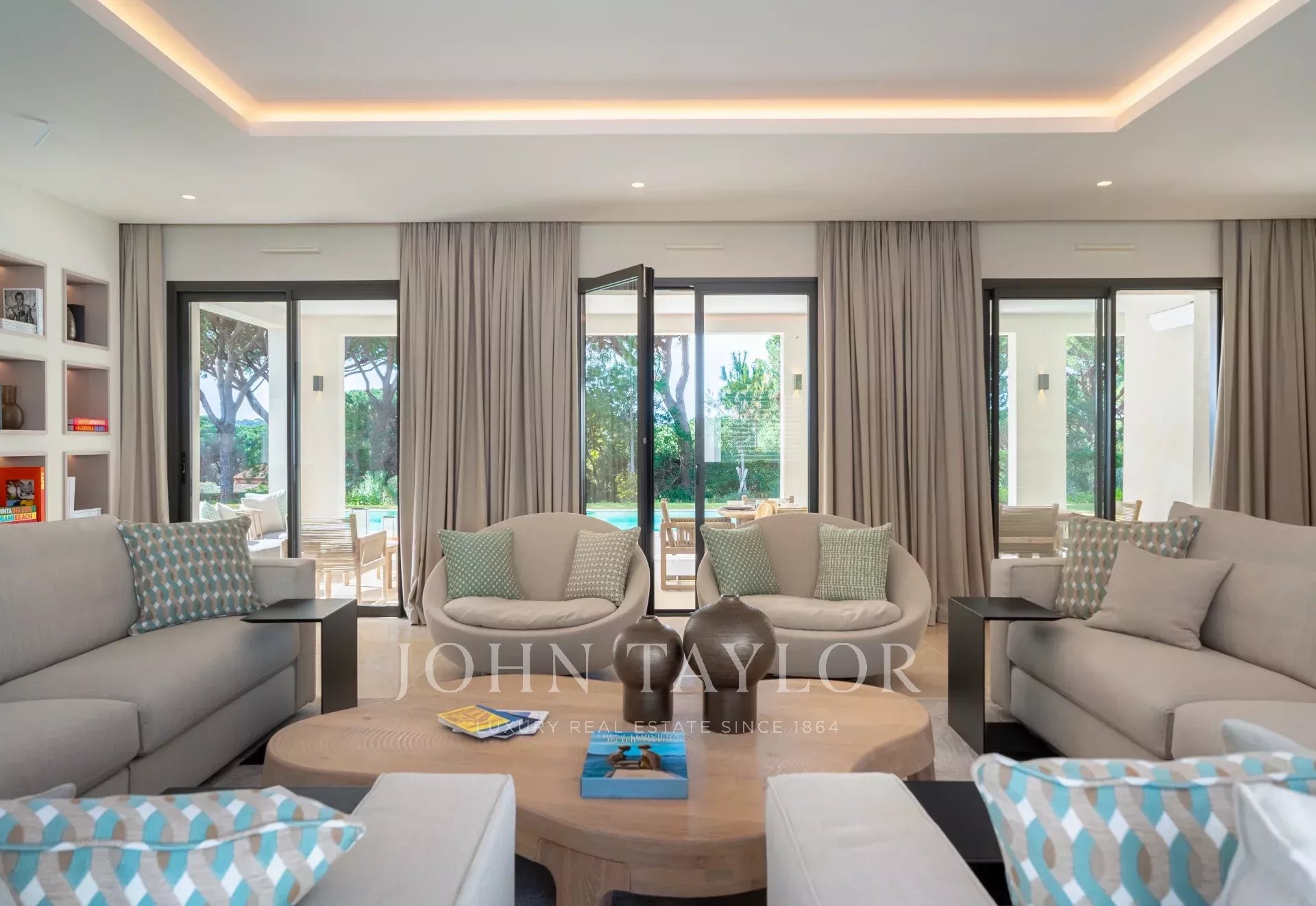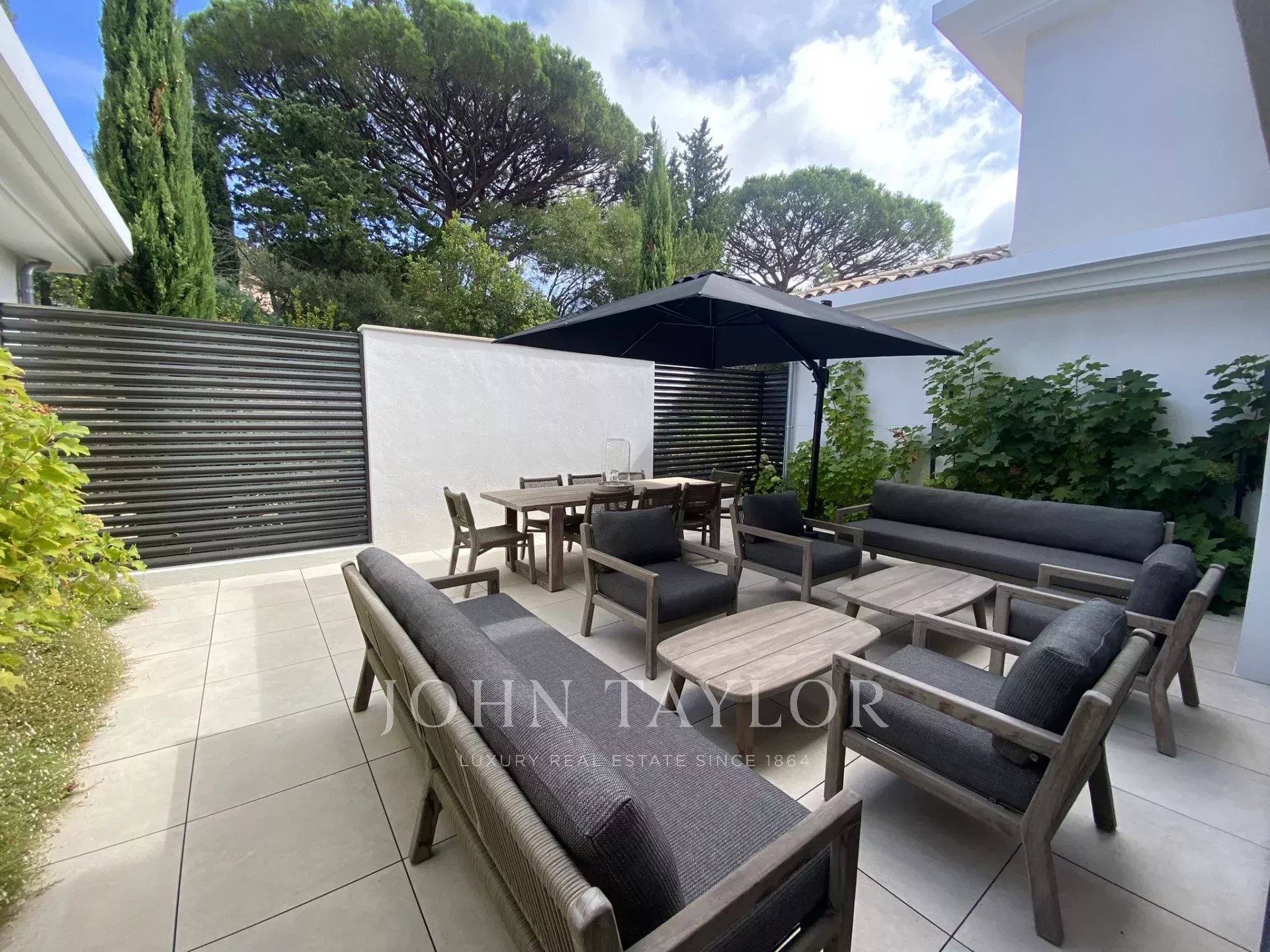 Ein wunderschönes neues Anwesen, das in einer ruhigen Sackgasse in den Parks von Saint-Tropez eingebettet ist. Dieses Anwesen bietet ein idyllisches Familienleben, bestehend aus :