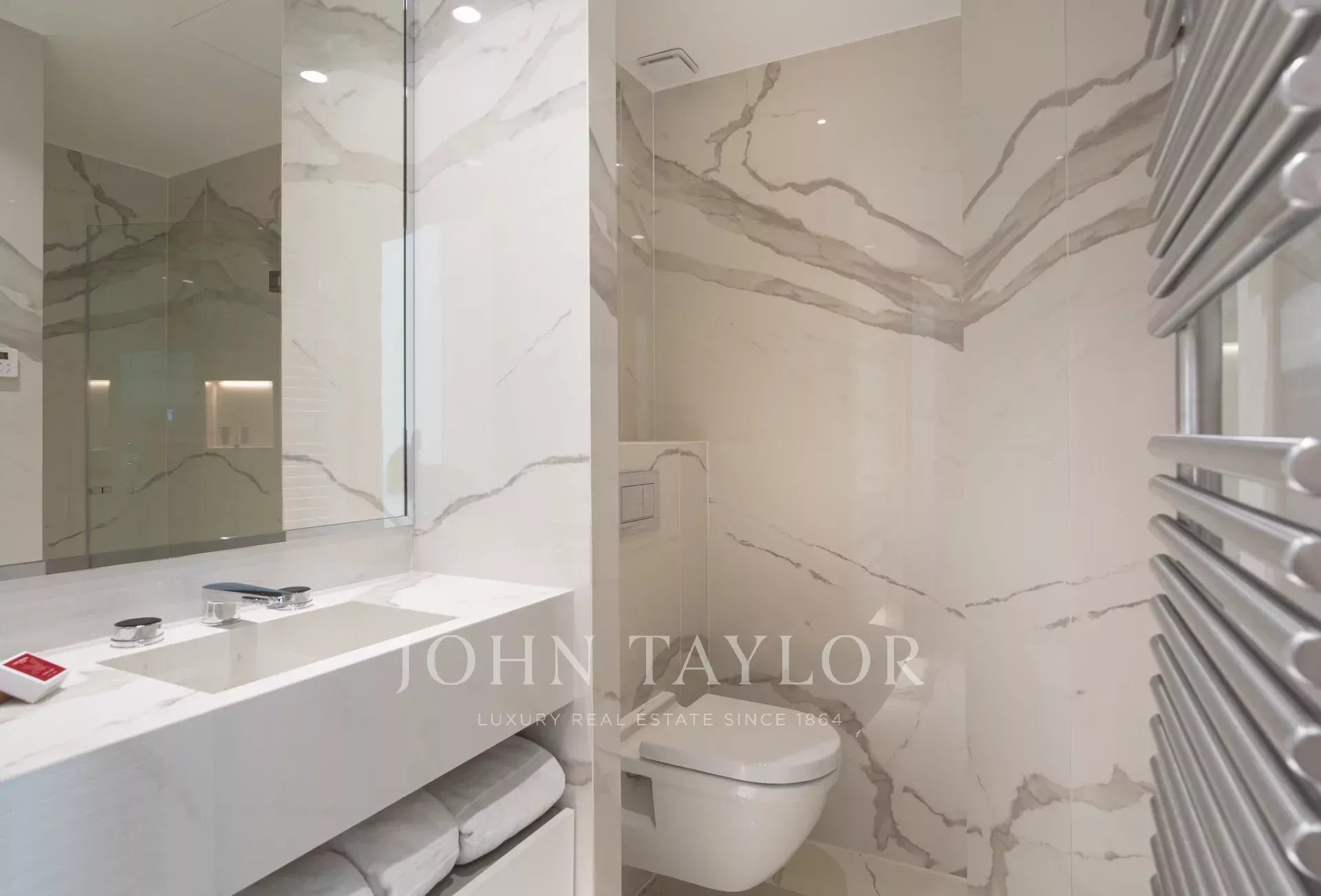 Ein Flur führt zu zwei Schlafzimmern (Bett 160), jedes mit eigenem Duschbad/WC, sowie einem Schlafzimmer (Bett 180), Ankleidezimmer und Duschbad/WC. Ein separates Schlafzimmer (Bett/180), Ankleidezimmer und Dusche/WC.