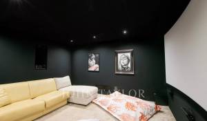Im Untergeschoss befinden sich ein Heimkino, ein voll ausgestatteter Fitnessraum (Gewichte, Rudergerät, Fahrräder) sowie ein Waschraum mit Waschmaschine und Trockner.