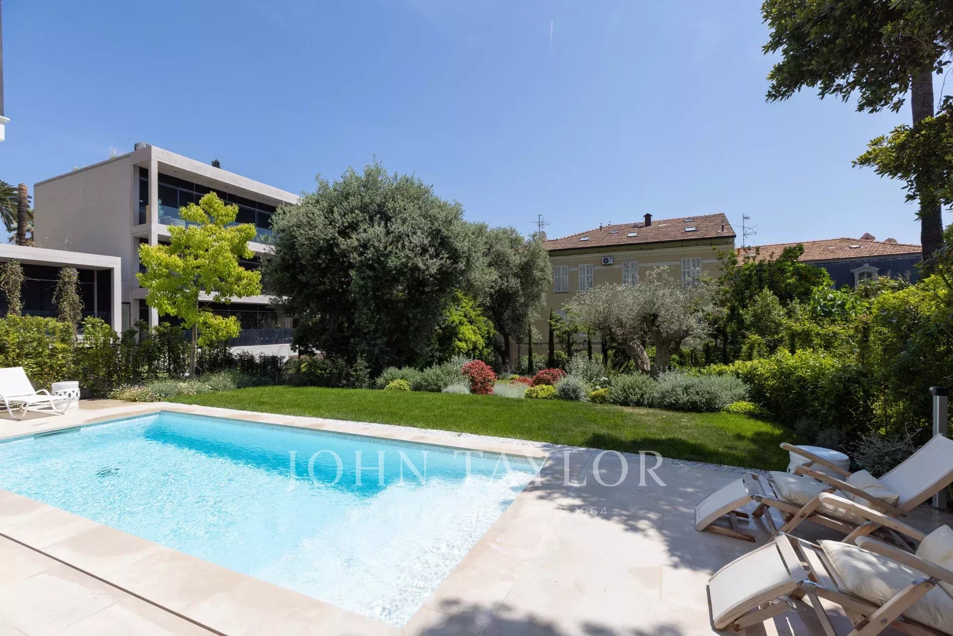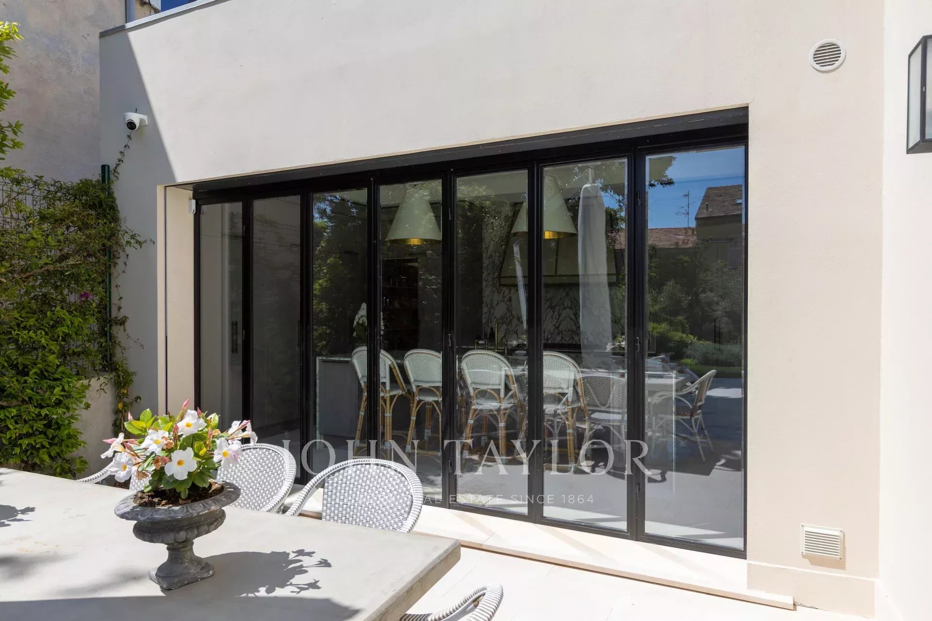 Die Villa wurde auf drei Etagen gebaut und komplett renoviert. Sie verfügt über ein großes Wohnzimmer mit Küche, das sich zum Pool und seinem flachen Garten hin öffnet, drei Schlafzimmer sowie einen TV-Bereich und ein zusätzliches Zimmer für das Personal.