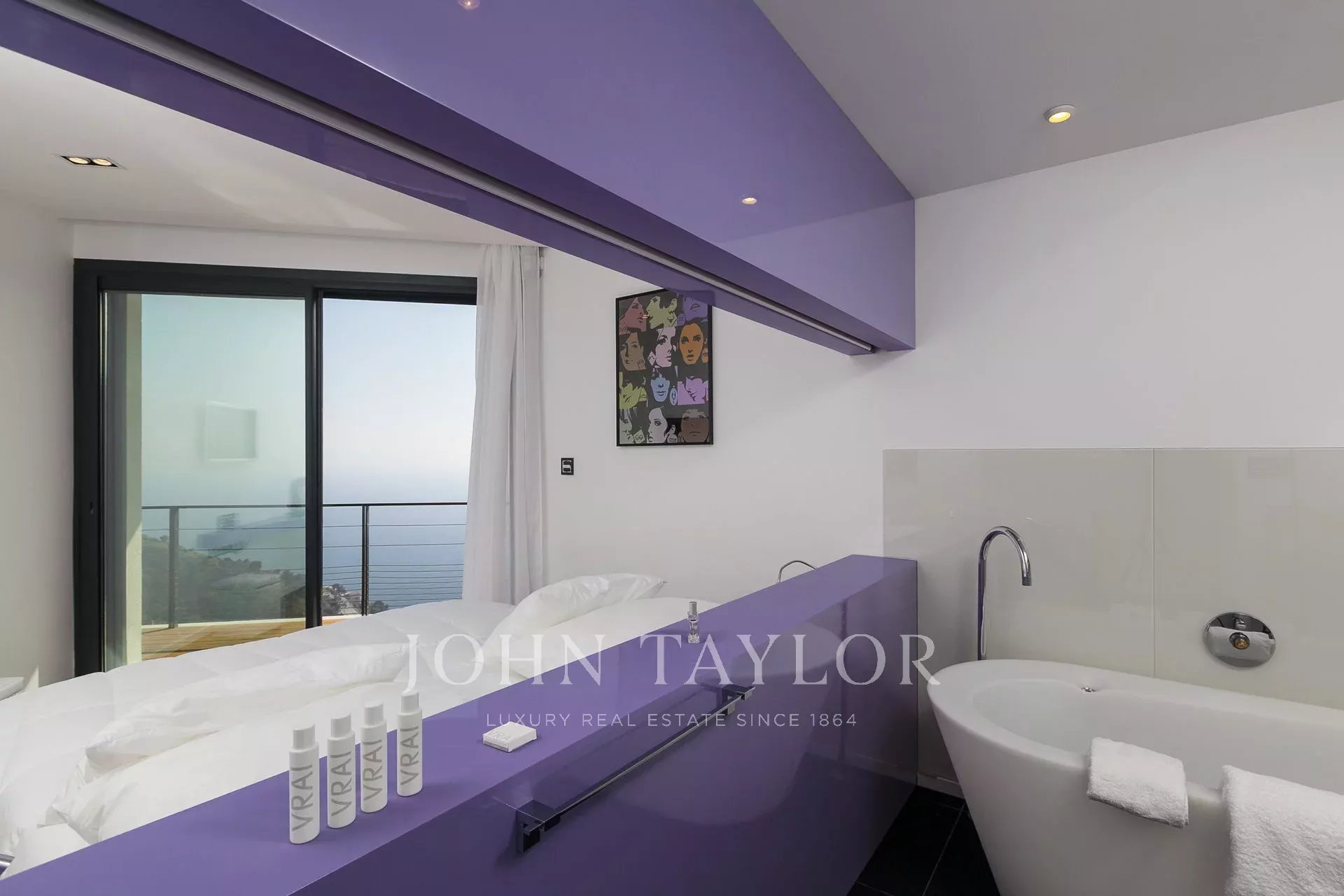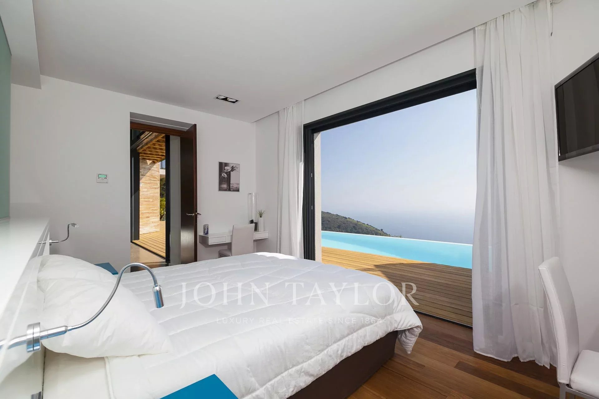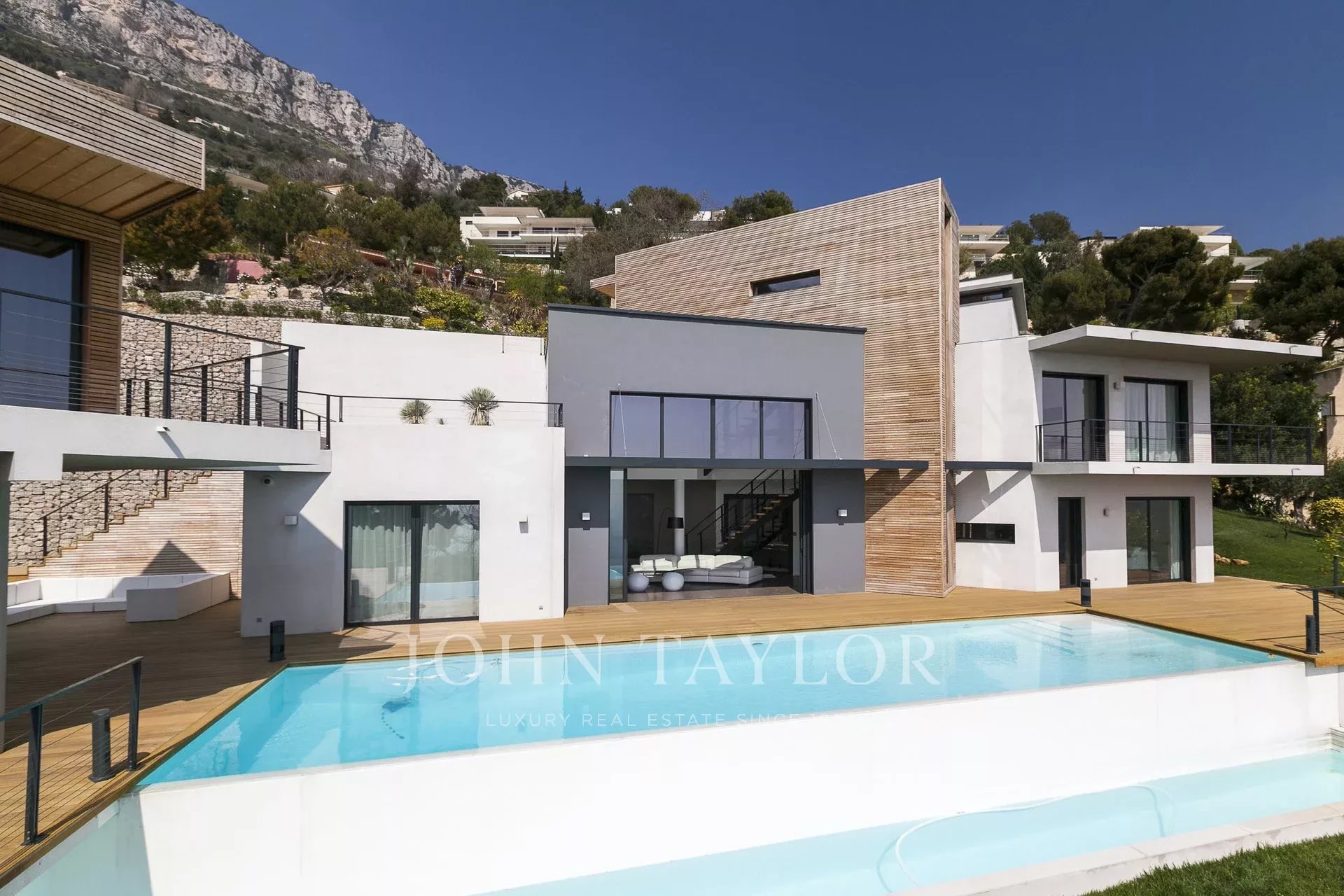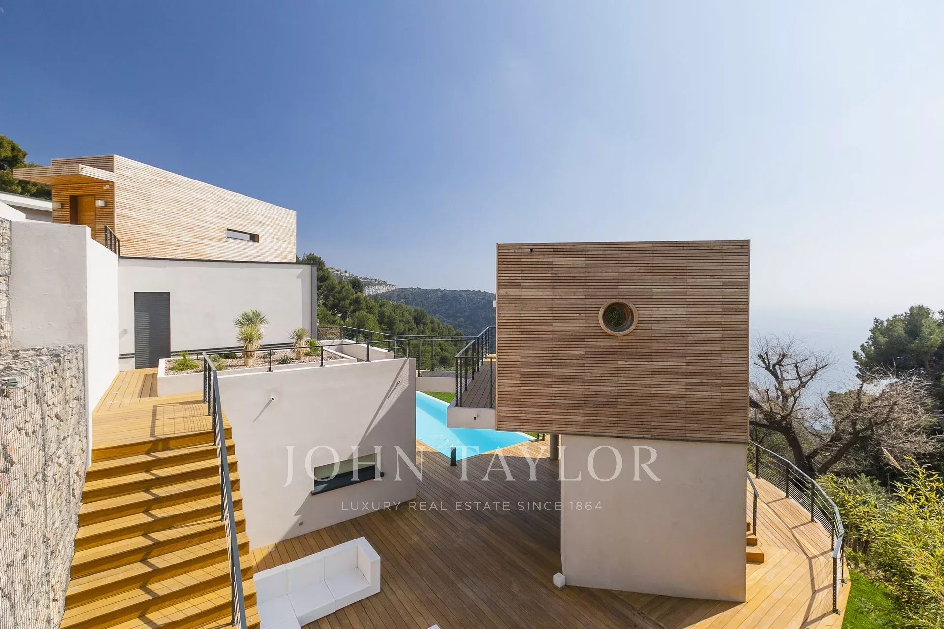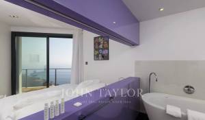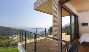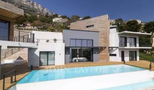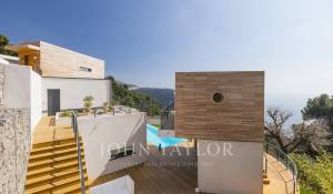 Wunderschöne moderne Villa mit einer Wohnfläche von ca. 350 m² auf einem Grundstück von ca. 2.200 m², auf den Höhen von Eze in einem Wohngebiet gelegen, mit einem herrlichen Blick auf das Meer und die Hügel. Die Villa besteht aus 5 Schlafzimmern, jedes mit eigenem Bad oder Dusche, einem Wohnzimmer mit Zugang zu einer großen Terrasse mit beheiztem Pool, einem Essbereich, einer voll ausgestatteten Küche mit semiprofessionellem Hauswirtschaftsraum. Gästepavillon mit einem Schlafzimmer und eigenem Duschbad.