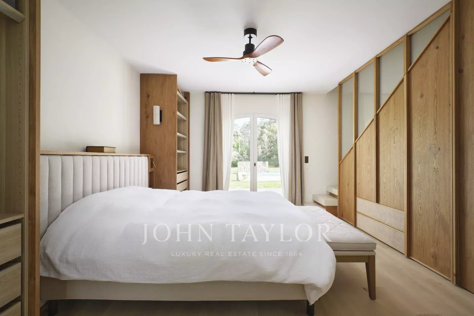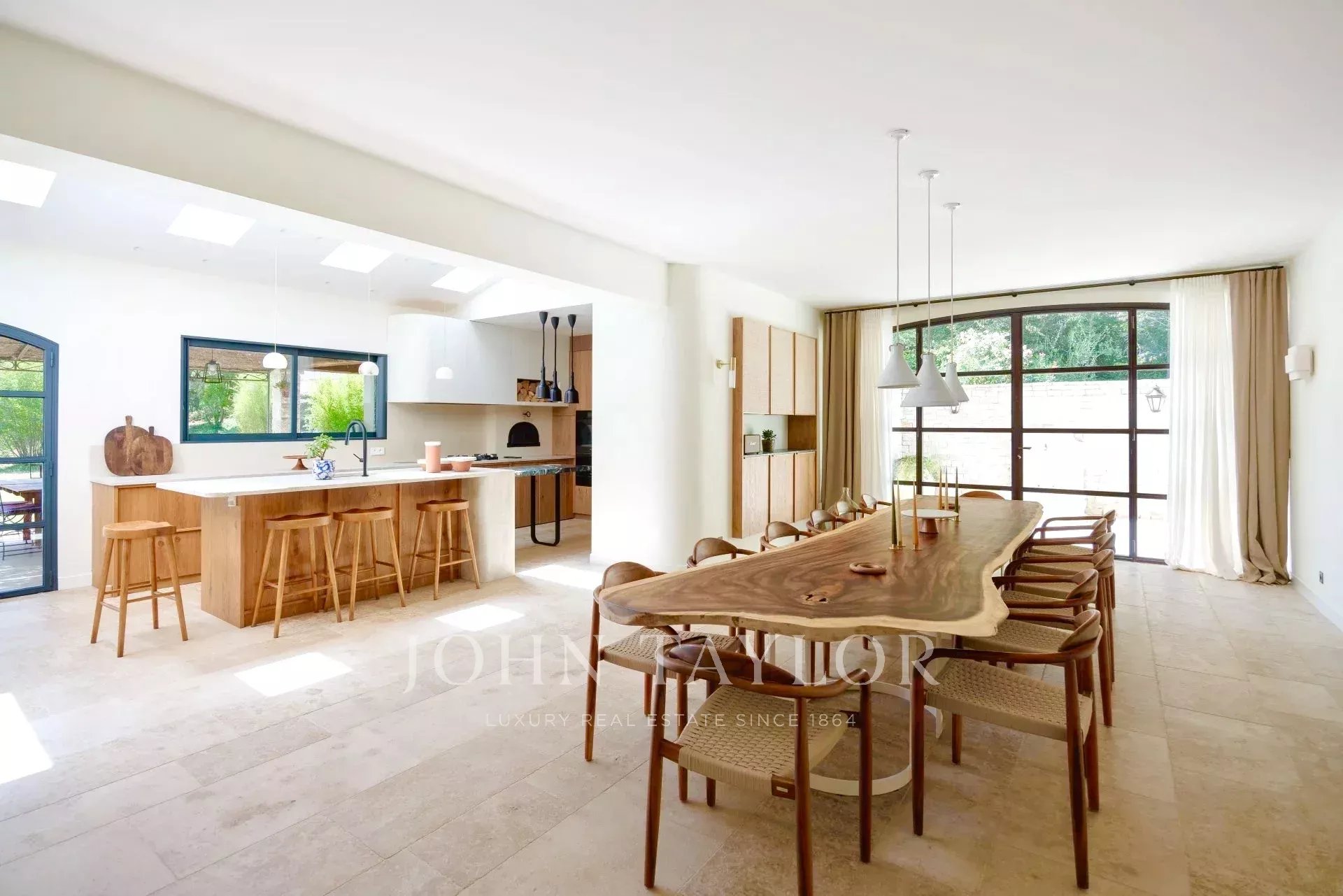 Das Haus besticht sofort durch seine raffinierte und warme Dekoration. Jeder Raum wurde sorgfältig durchdacht und vereint harmonische Farben, geschmackvoll ausgewählte Möbel und edle Materialien. Natursteine, hochwertiges Holz, zarte Stoffe: Alles hier strahlt Komfort und Raffinesse aus.