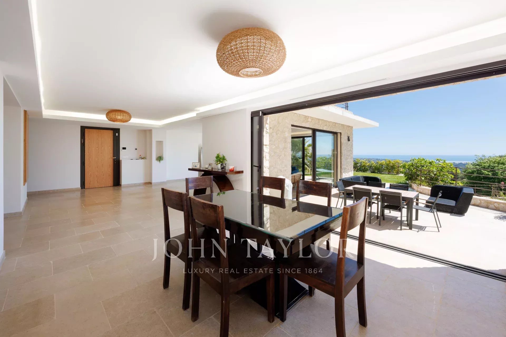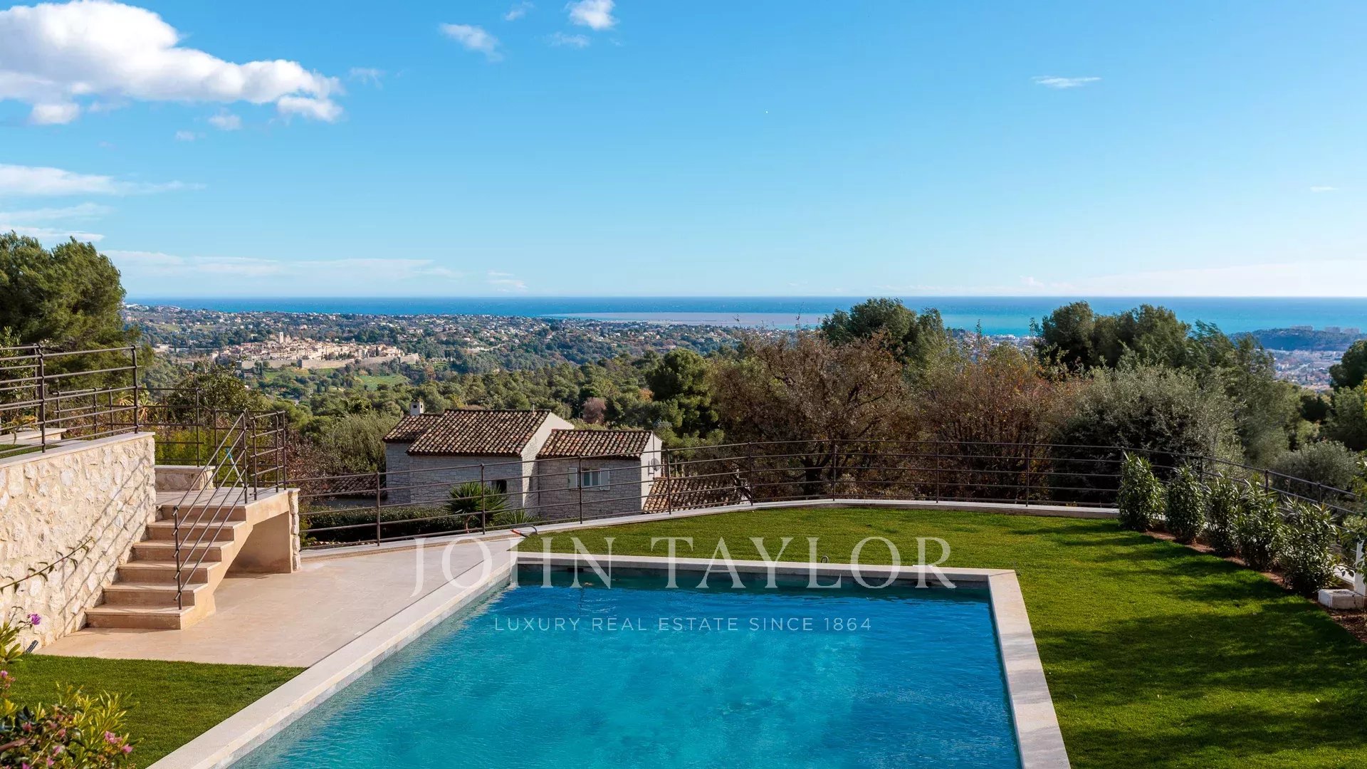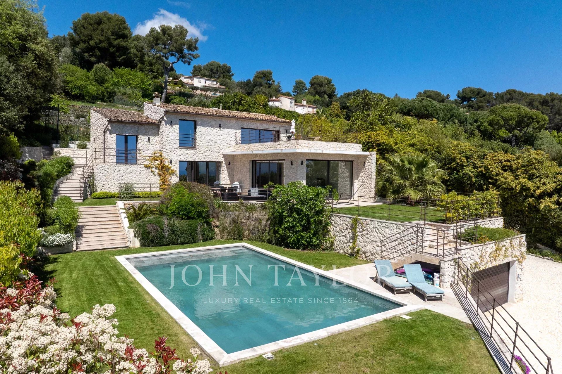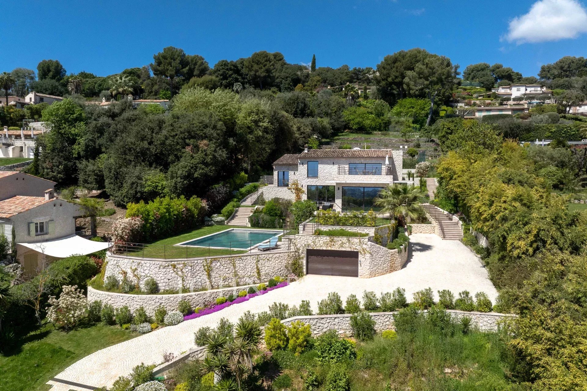 In einer der prestigeträchtigsten Gegenden von Saint-Paul de Vence liegt diese wunderschöne, ca. 260 m² große Steinvilla auf einem 2180 m² großen Landschaftsgrundstück mit Pool und Tennisplatz. Sie genießt einen atemberaubenden Panorama-Meerblick auf die French Riviera und bietet einen außergewöhnlichen Lebensrahmen zwischen Eleganz und Gelassenheit.
