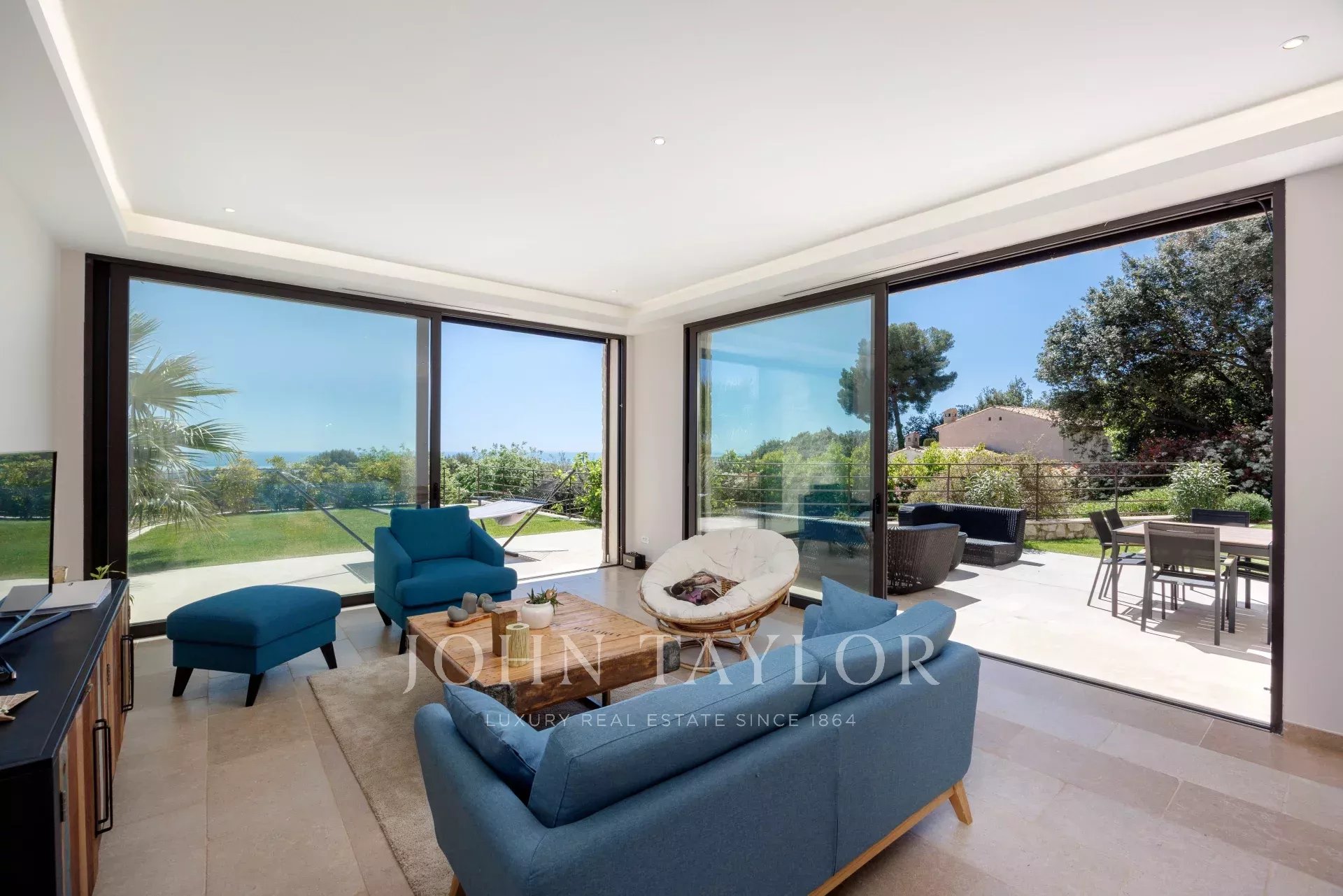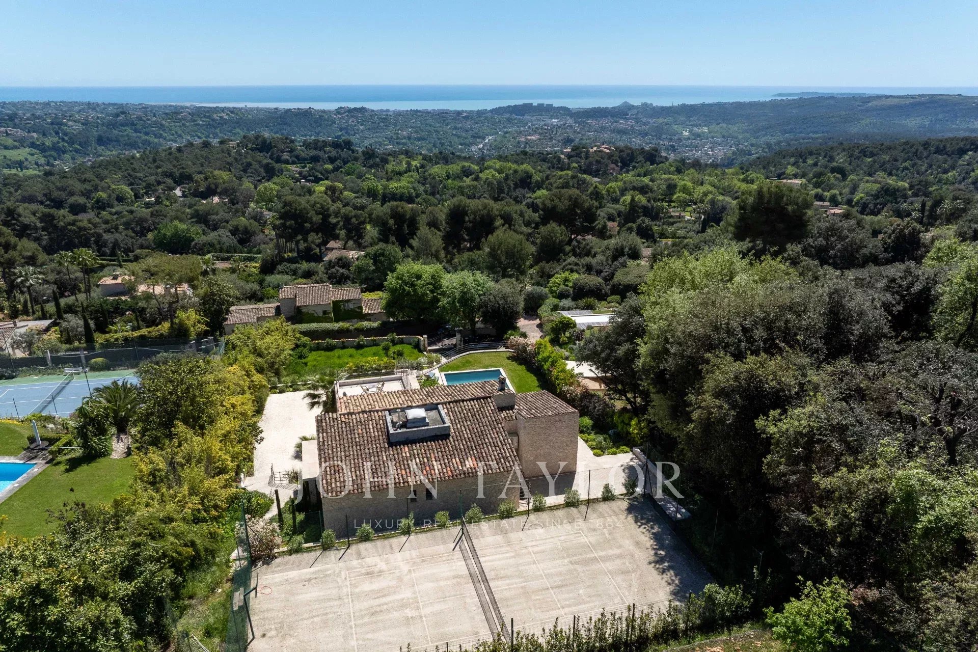 Die Villa verfügt außerdem über eine 30 m² große Doppelgarage, einen herrlichen Pool und einen privaten Tennisplatz, was diese Immobilie zu einem seltenen und begehrten Objekt an der Côte d'Azur macht.