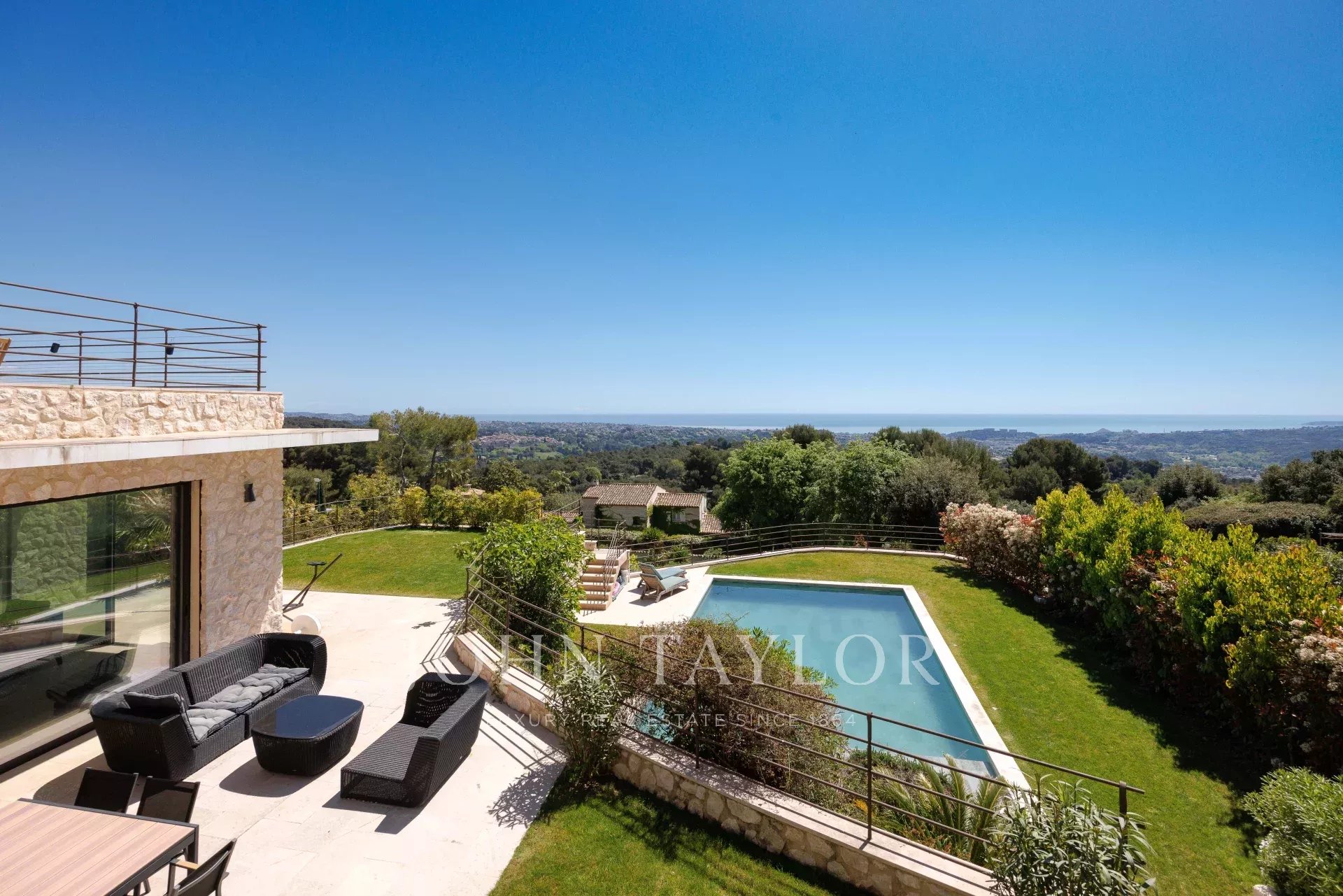 Villa aus Stein, panoramischer Meerblick, Saint-Paul de Vence