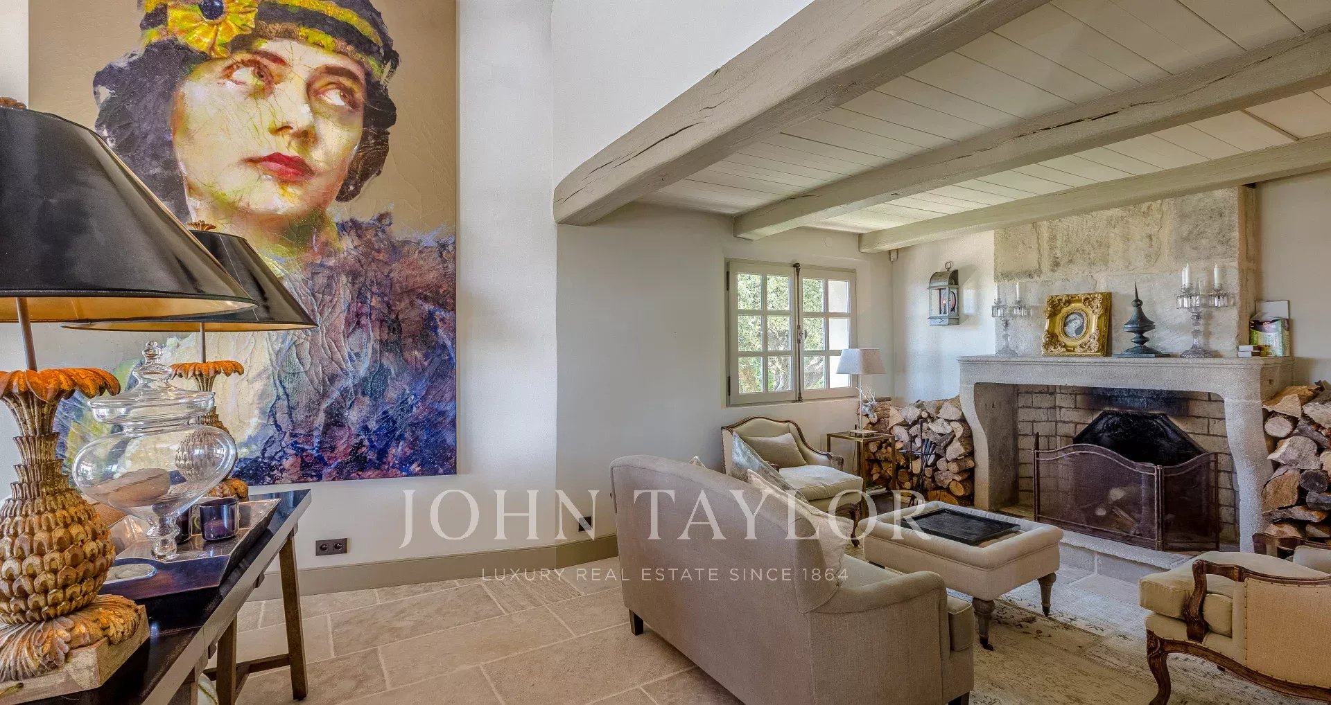 Gemütliches und raffiniertes Wohnzimmer, geschmackvoll eingerichtet, mit einem Kamin, der zum Entspannen in der Leseecke einlädt.