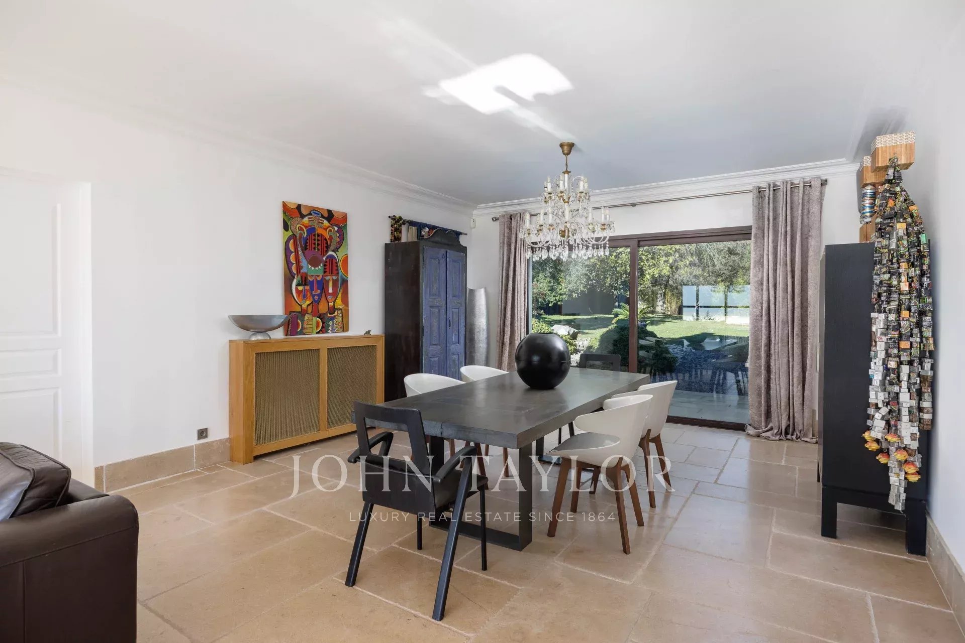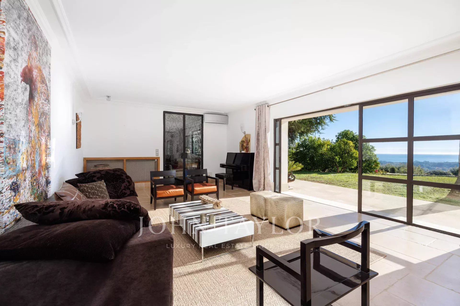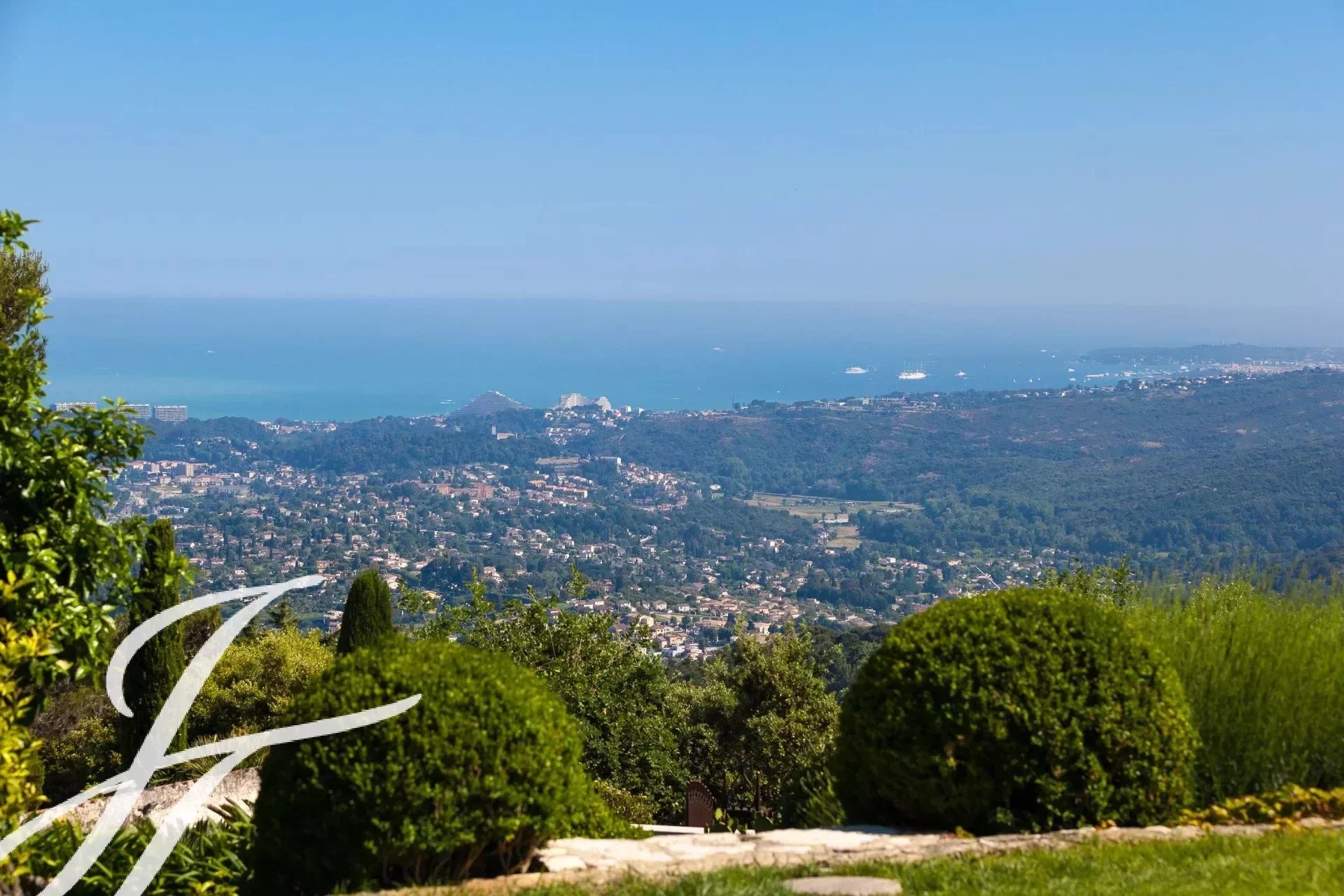 Diese prächtige, moderne Villa befindet sich in dominanter Lage im Herzen des renommierten, gesicherten Anwesens Hauts de Saint-Paul und bietet einen spektakulären Panoramablick auf das Mittelmeer.