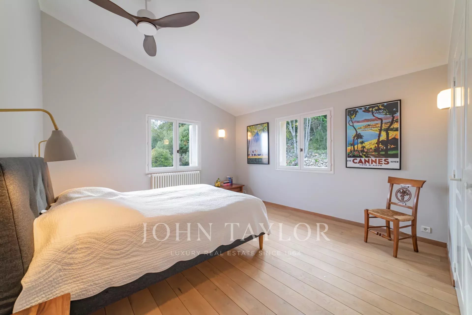 Im Obergeschoss befinden sich vier Schlafzimmer mit Klimaanlage, Deckenventilator und eigenem Bad. Zwei von ihnen haben einen atemberaubenden Blick auf das Meer.