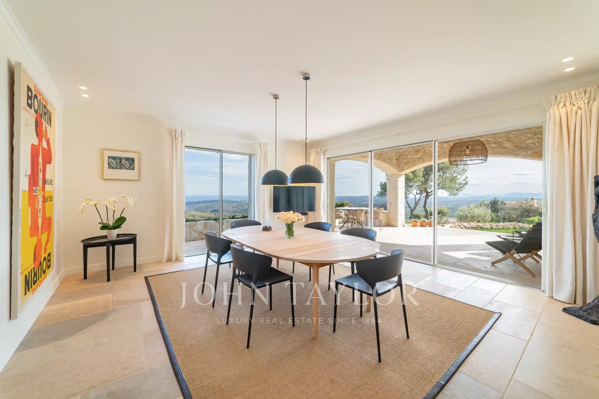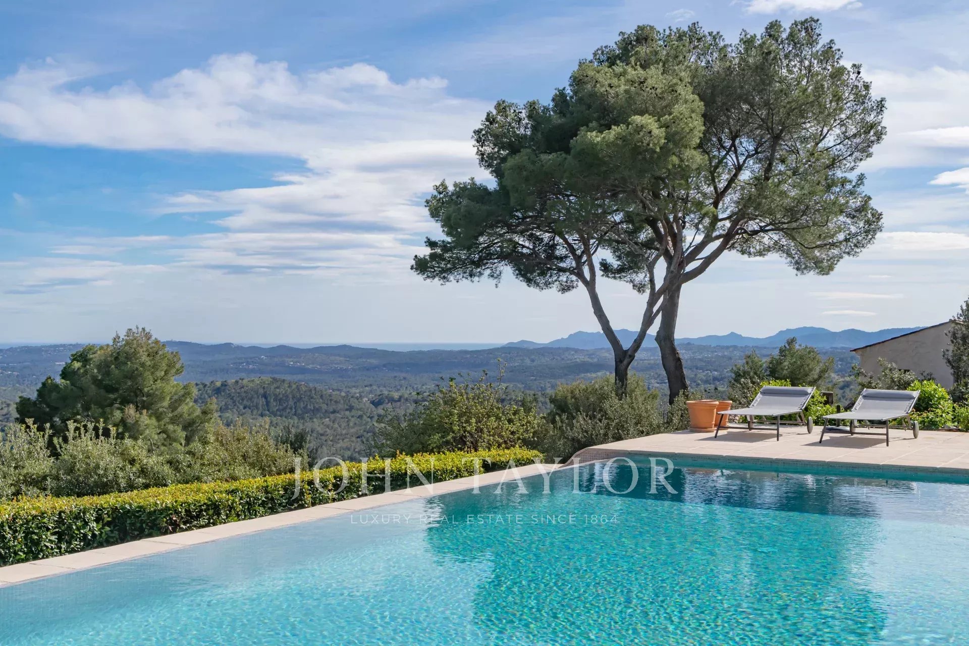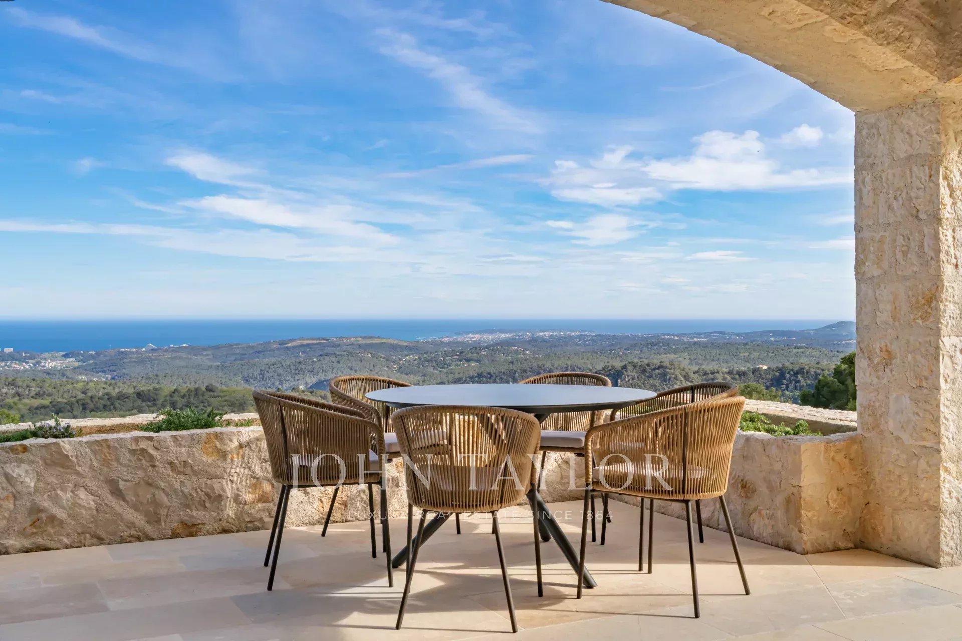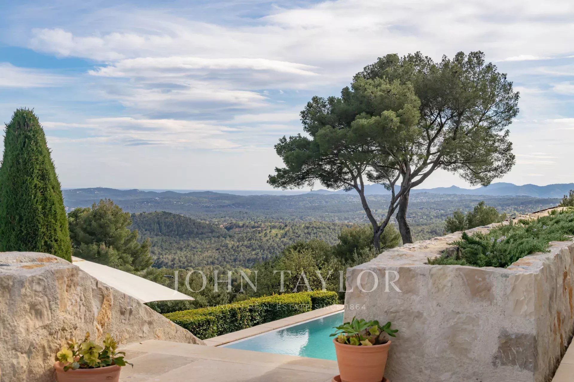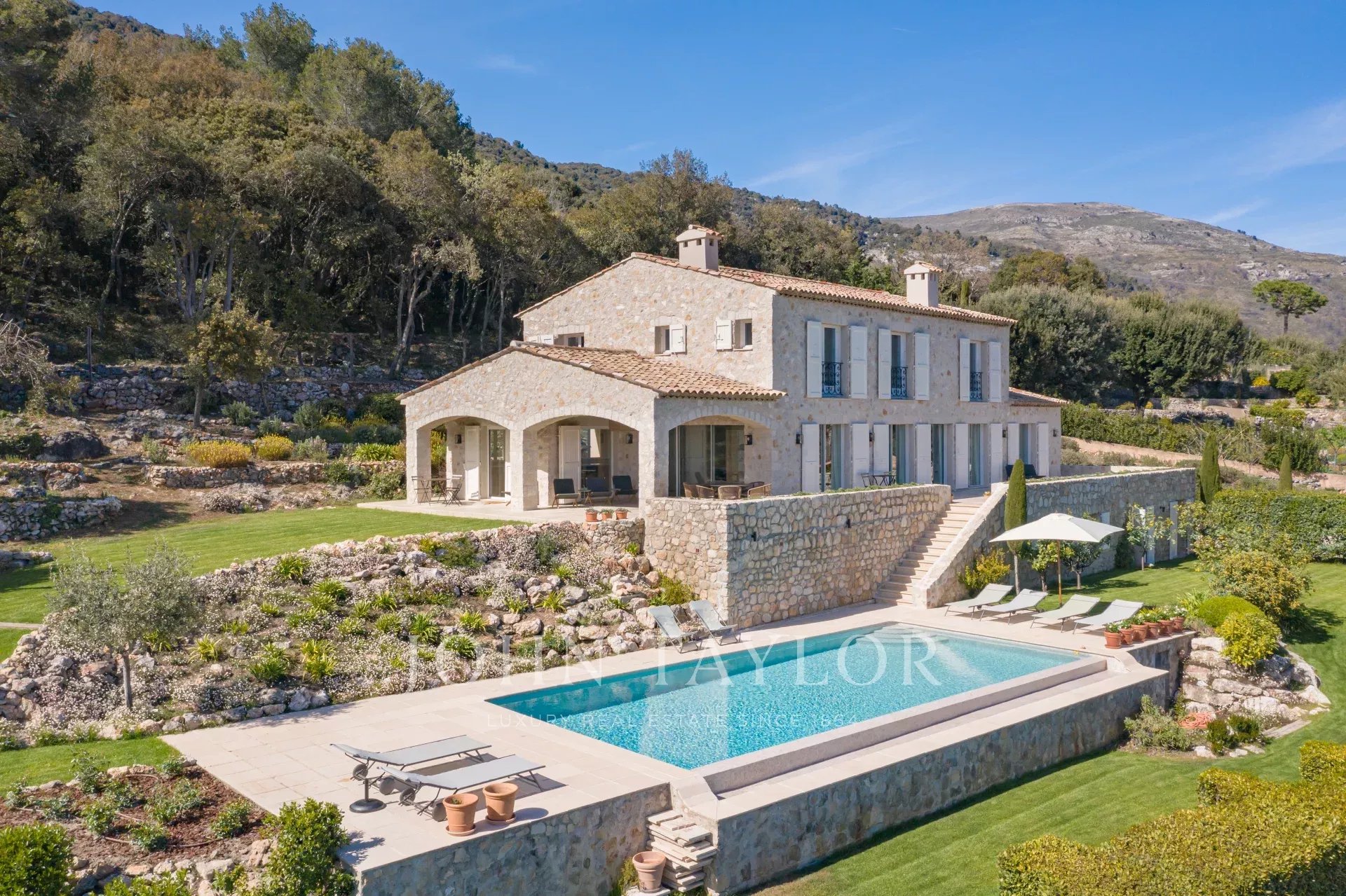 In Tourrettes sur Loup, mit herrlichem Blick auf das Meer und die umliegende Landschaft, befindet sich dieses schöne, neu erbaute Anwesen mit einer Wohnfläche von 320 m² auf einem 4000 m² großen Grundstück mit Infinity-Pool.