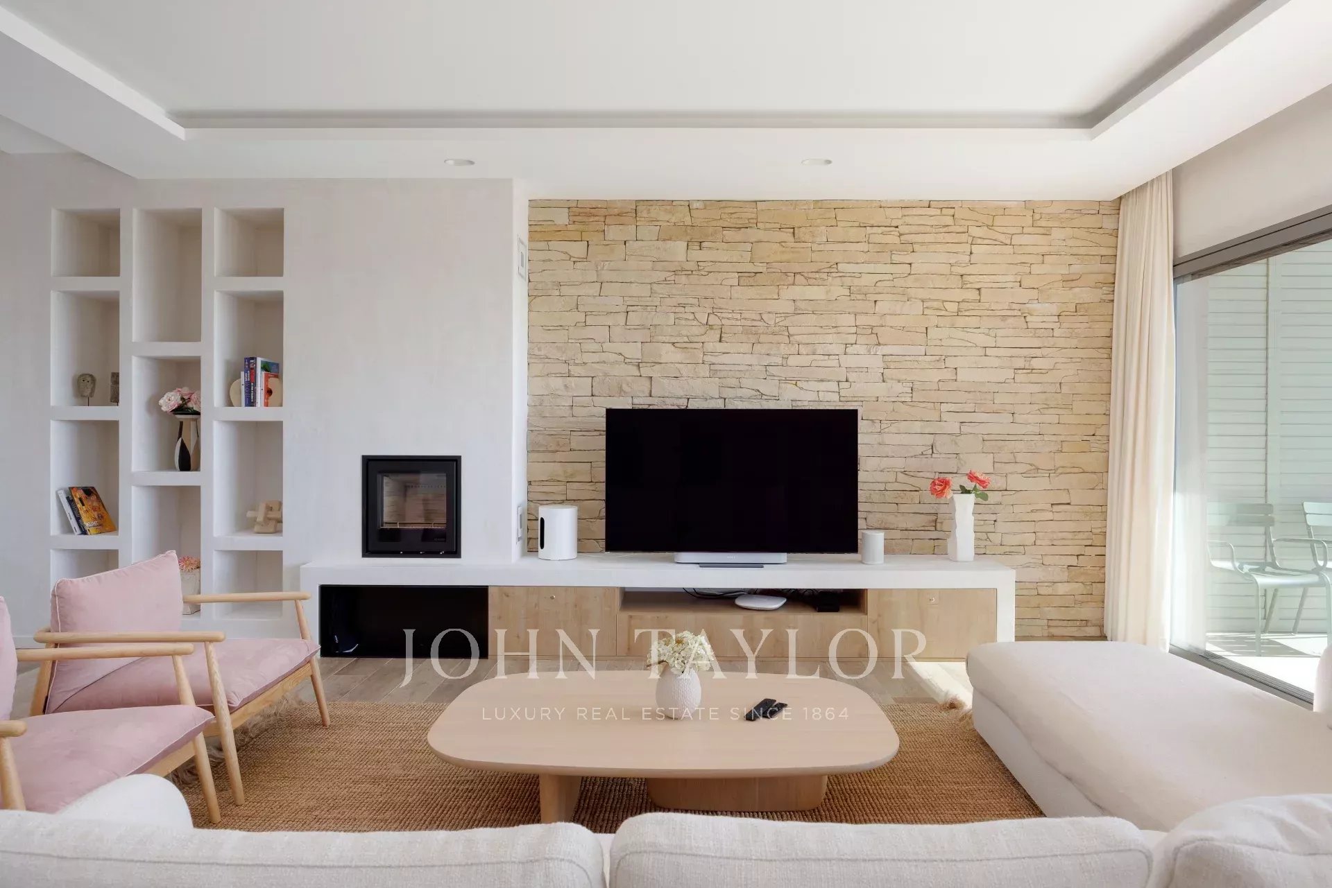Im Außenbereich stehen Ihnen mehrere Terrassen mit Pergola, ein Landschaftsgarten und ein beheizter Pool mit atemberaubender Aussicht für entspannende Momente zur Verfügung. Von jedem Zimmer der Villa aus können Sie den Panoramablick auf das Meer genießen.
