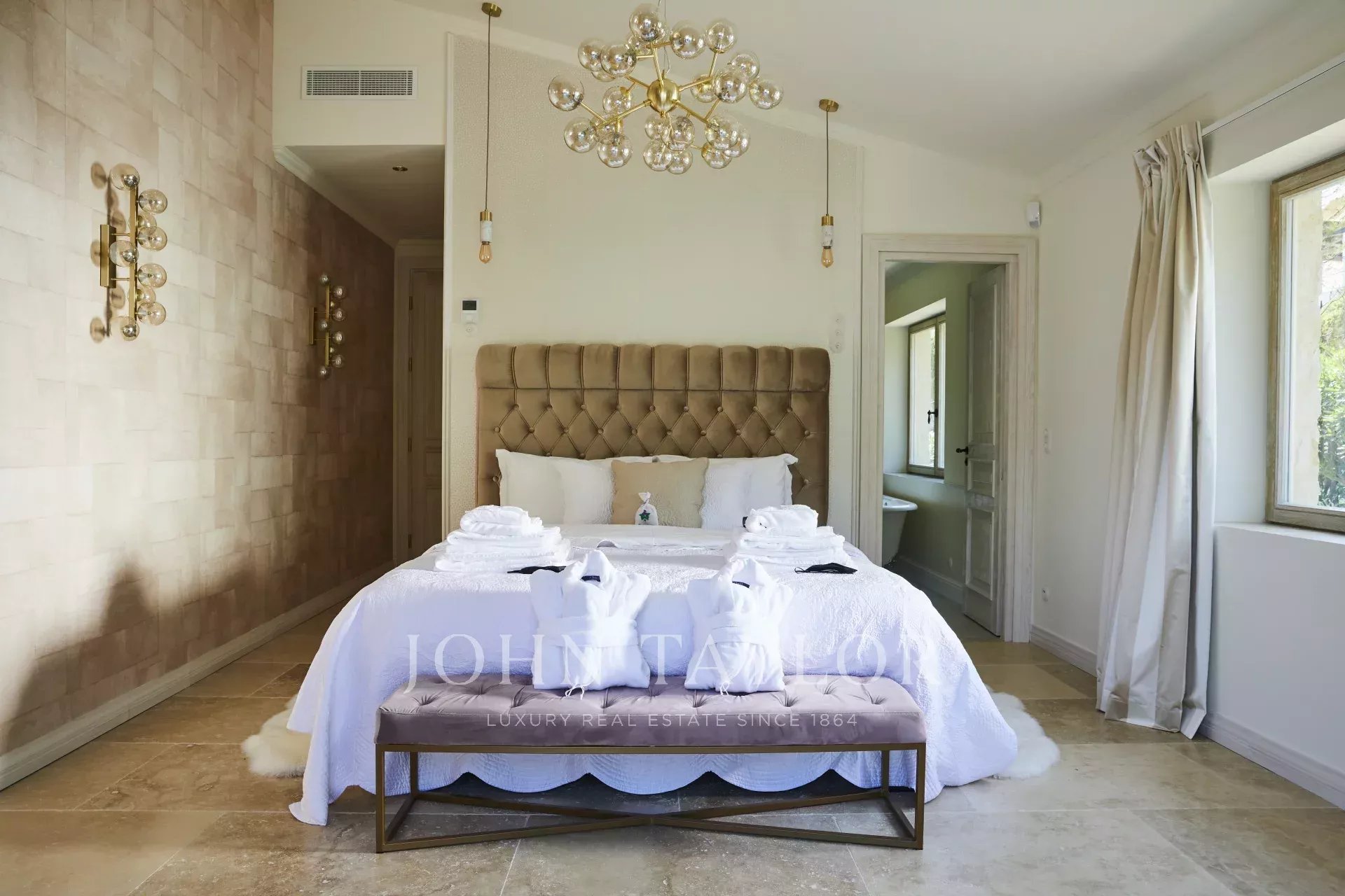 Alle Zimmer verfügen über eine Dusche/Bad ensuite und einen begehbaren Kleiderschrank. Die Zimmer sind klimatisiert.