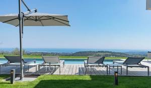 Ein Pool mit Panoramablick auf das Mittelmeer, ein Poolhaus mit Schlafsofa, ein Jacuzzi und ein Bouleplatz vervollständigen diese wunderschöne Ferienvilla.