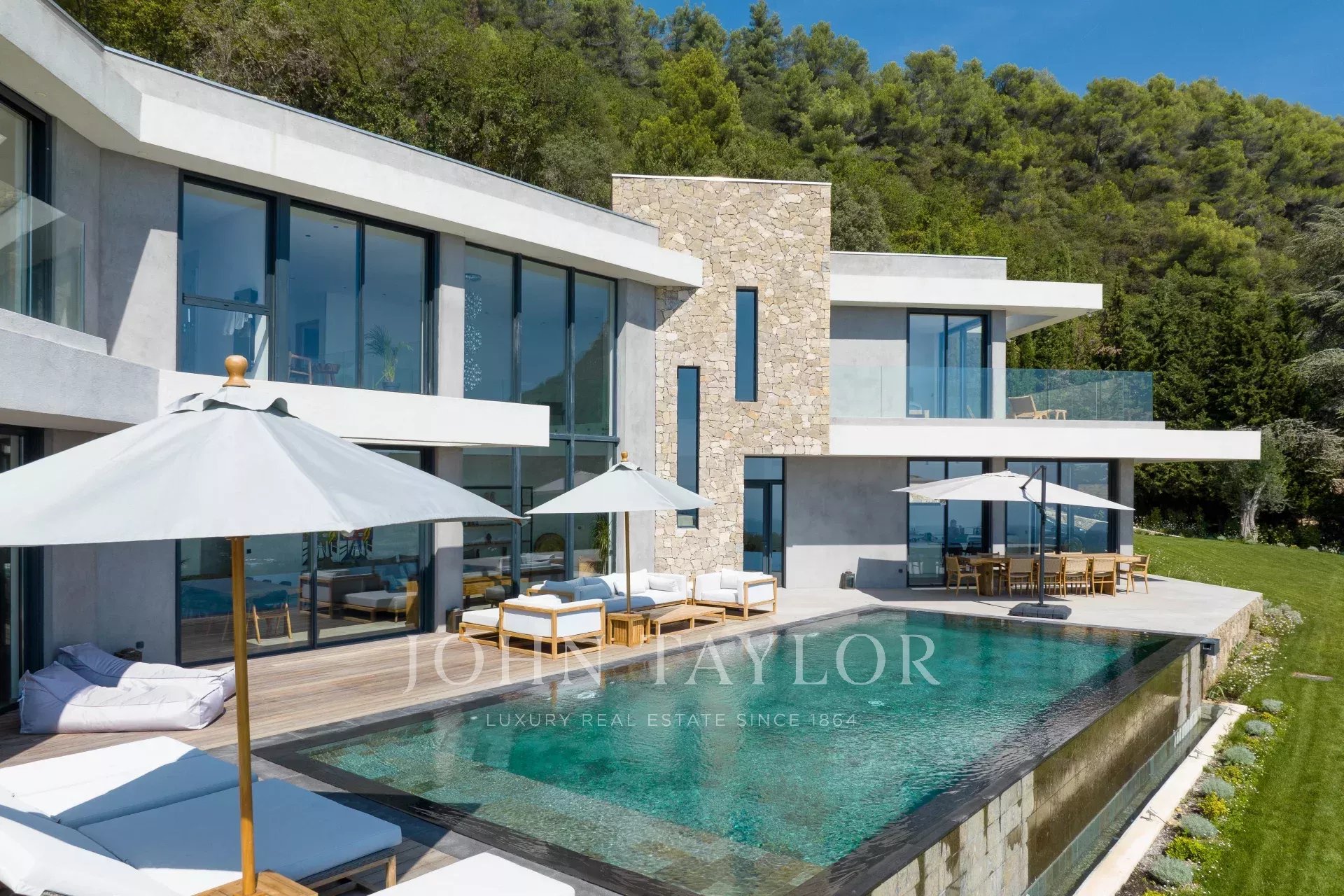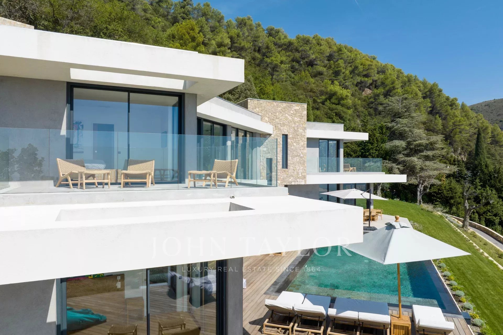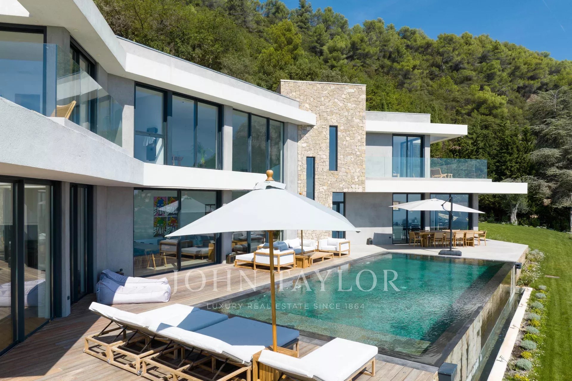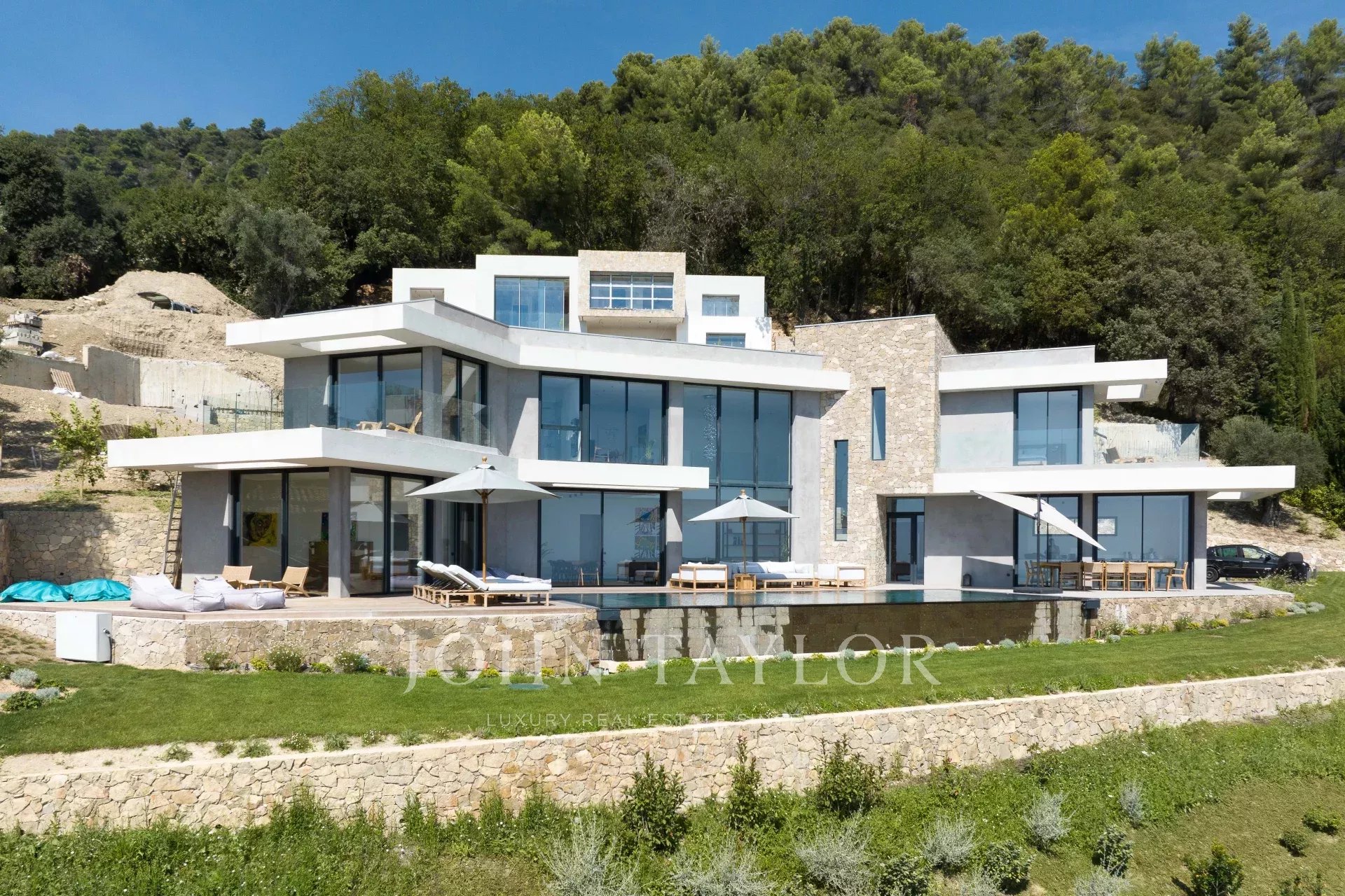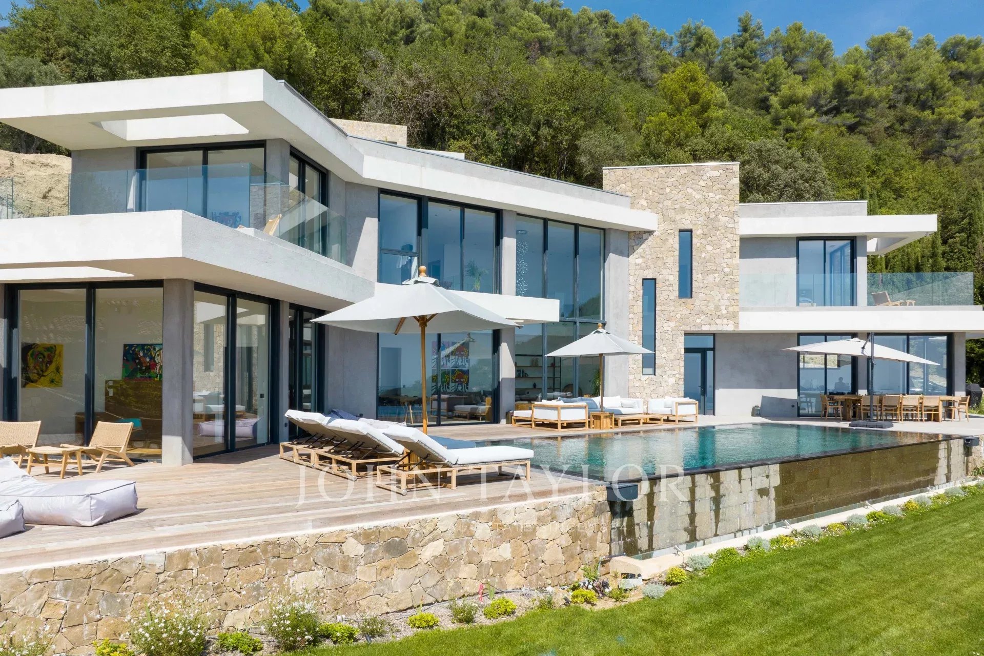 Diese neue Villa in einer ruhigen Umgebung verspricht ein unvergessliches Urlaubserlebnis an der Côte d'Azur mit Panoramablick.