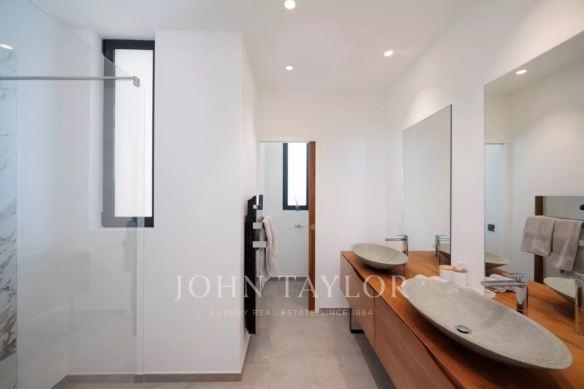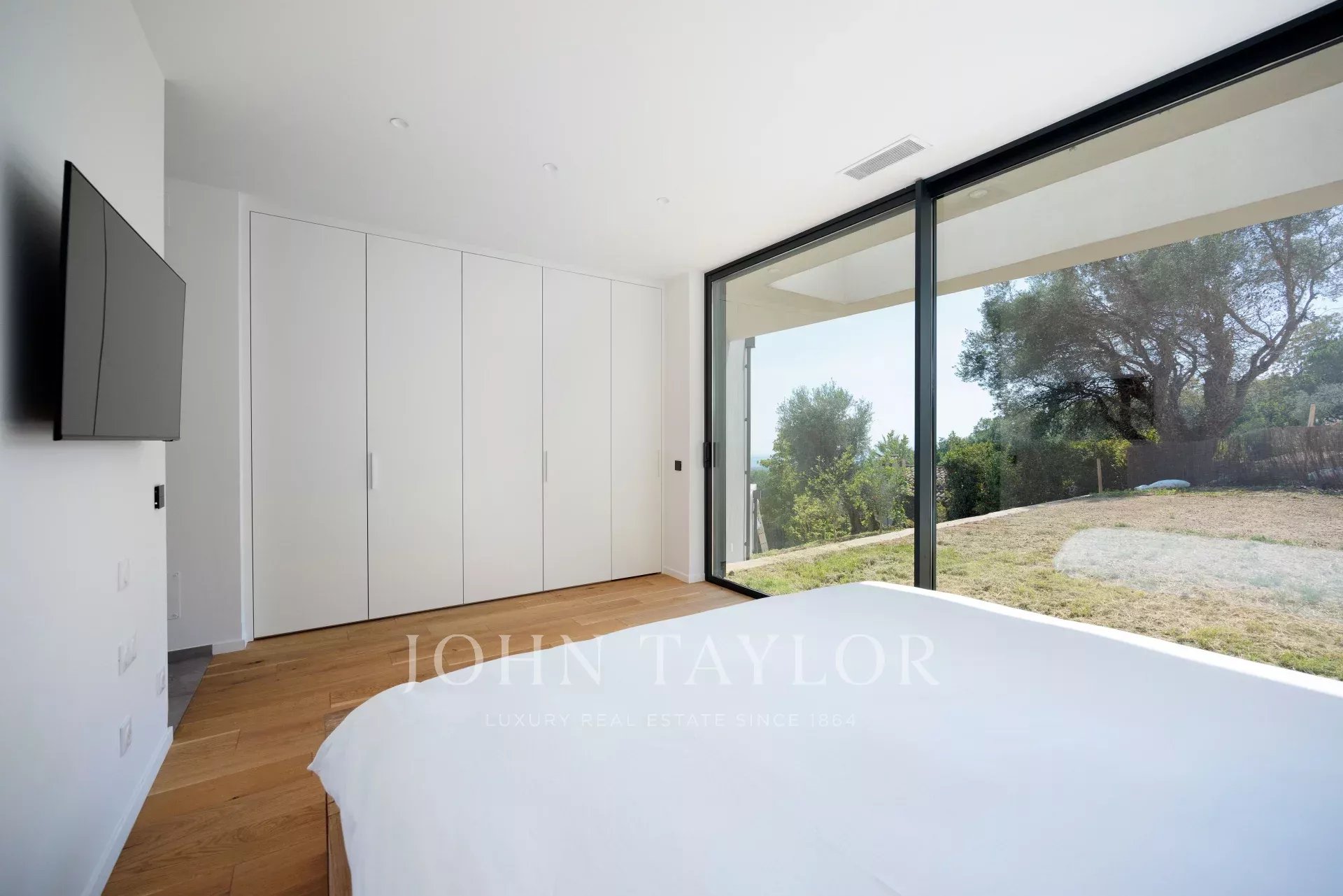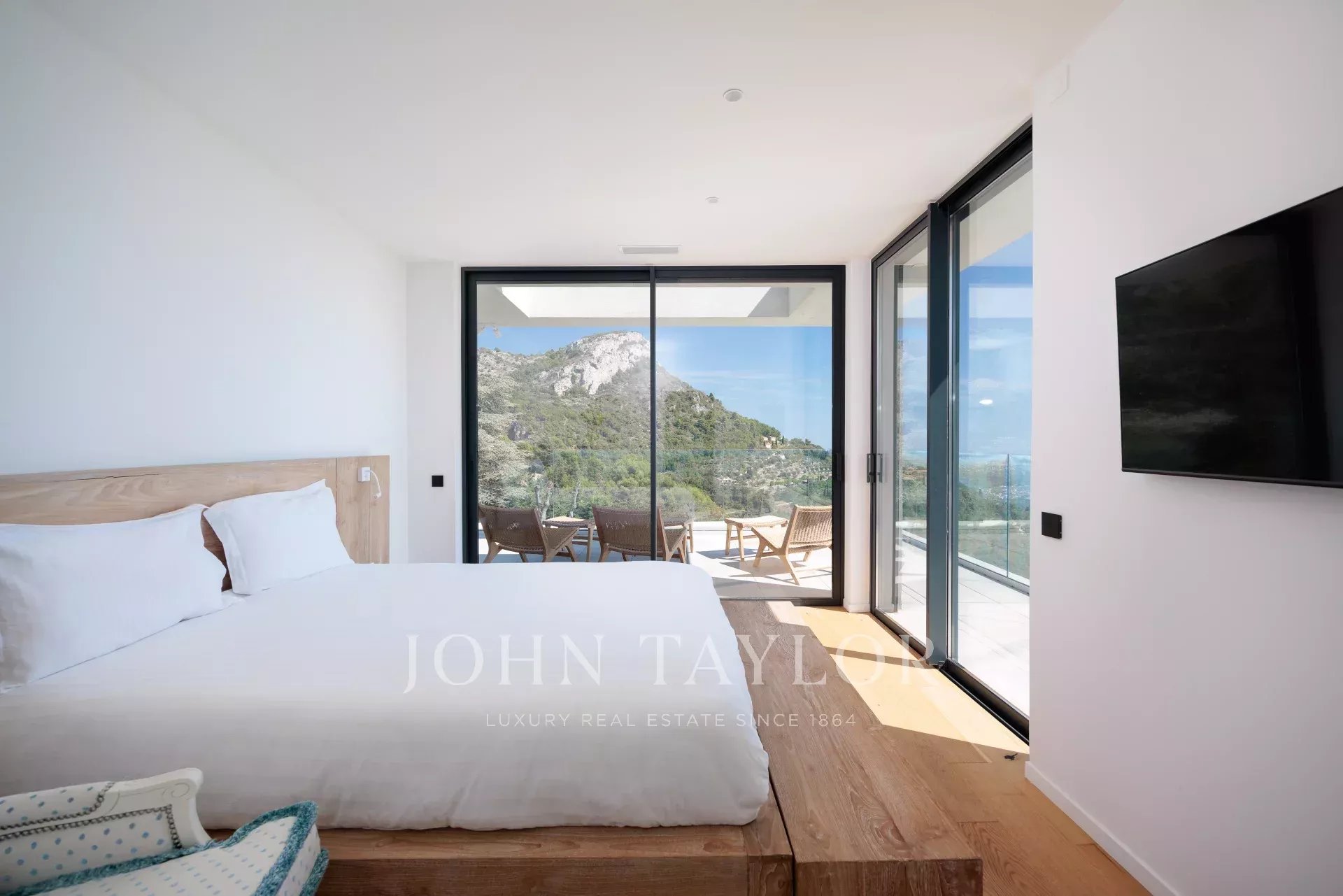 - Ein großer begehbarer Kleiderschrank und direkter Zugang zur Terrasse mit Blick auf den gespiegelten Infinity-Pool (Salzwasser und beheizt),