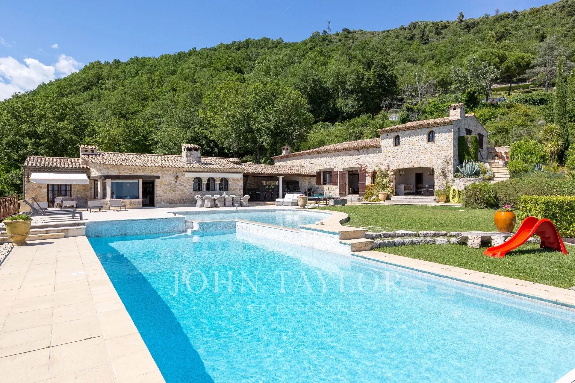 Man kann nicht anders, als sich in dieses wunderschöne Anwesen aus Stein zu verlieben, das dank seiner dominanten Lage in den Höhen von Vence einen außergewöhnlichen Blick auf die gesamte Côte d'Azur bietet.