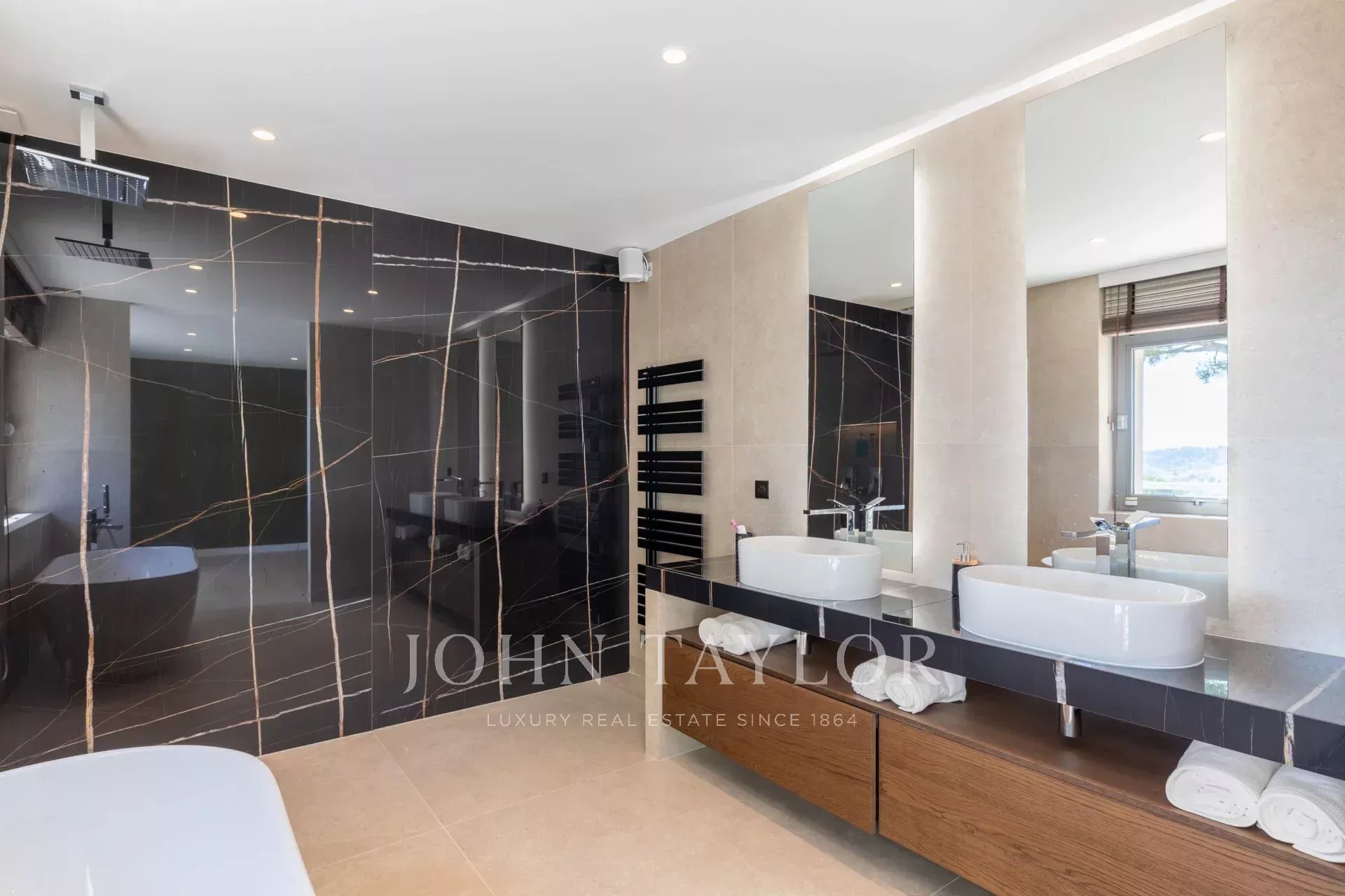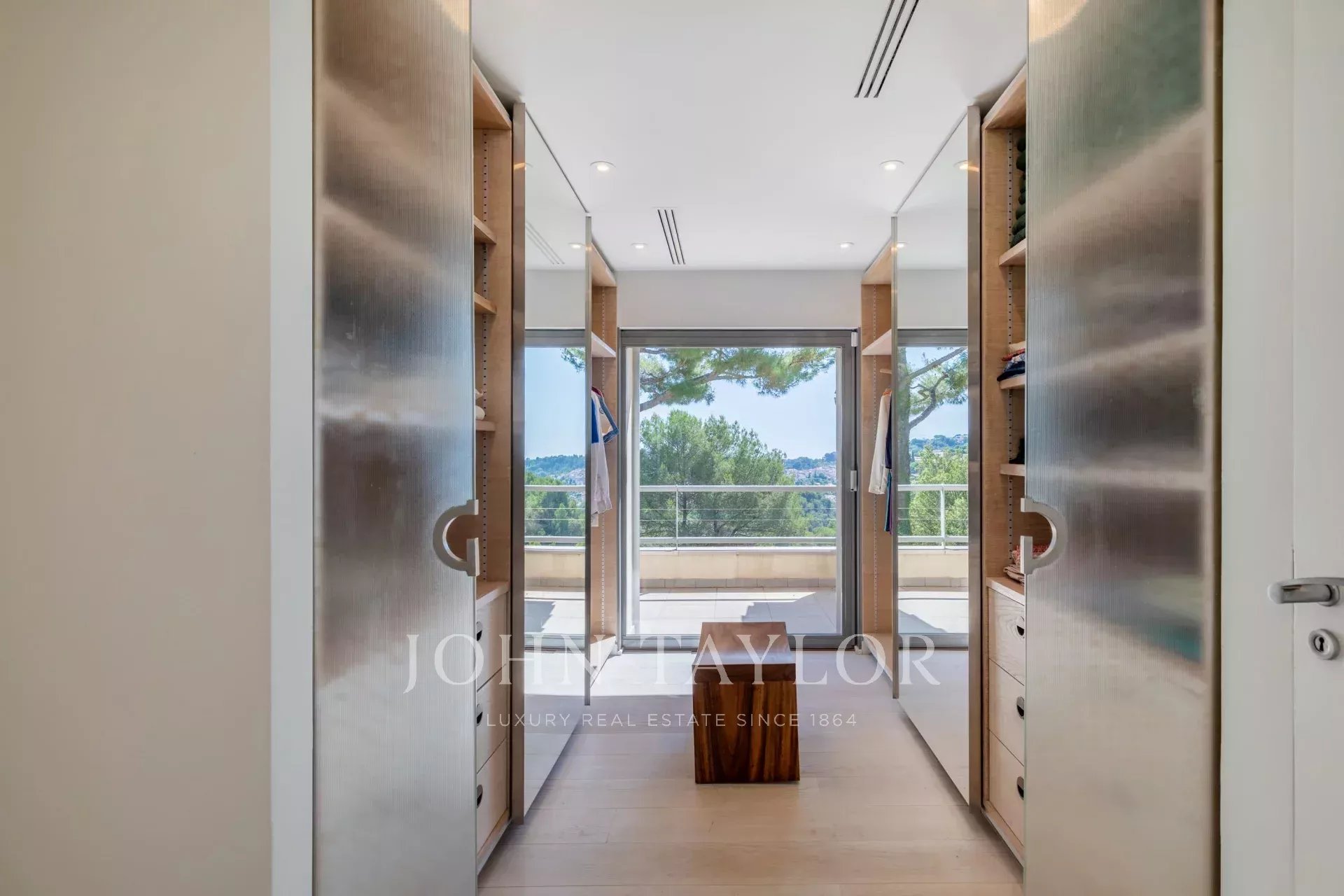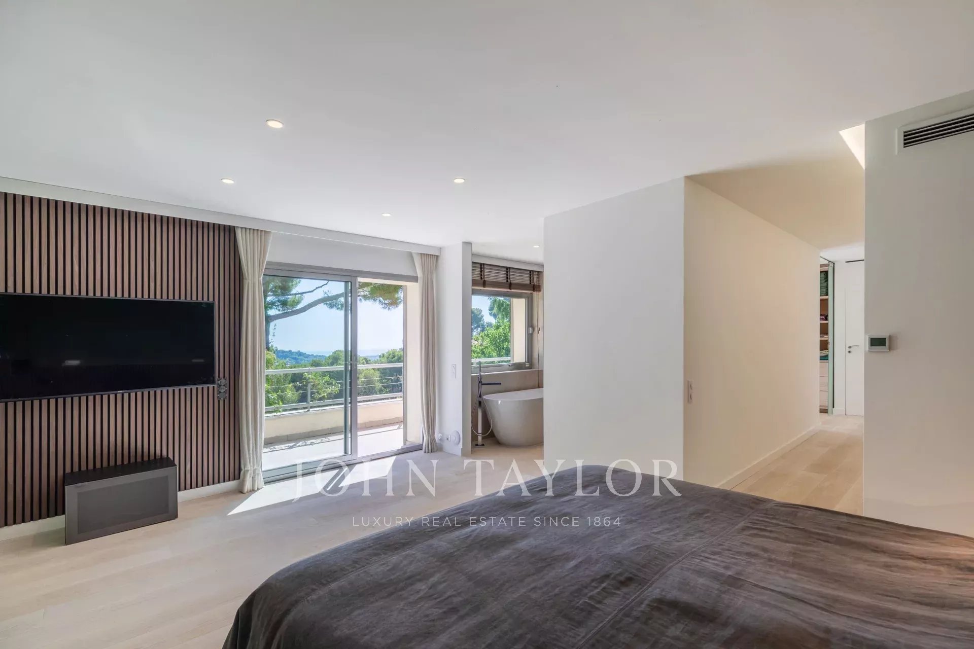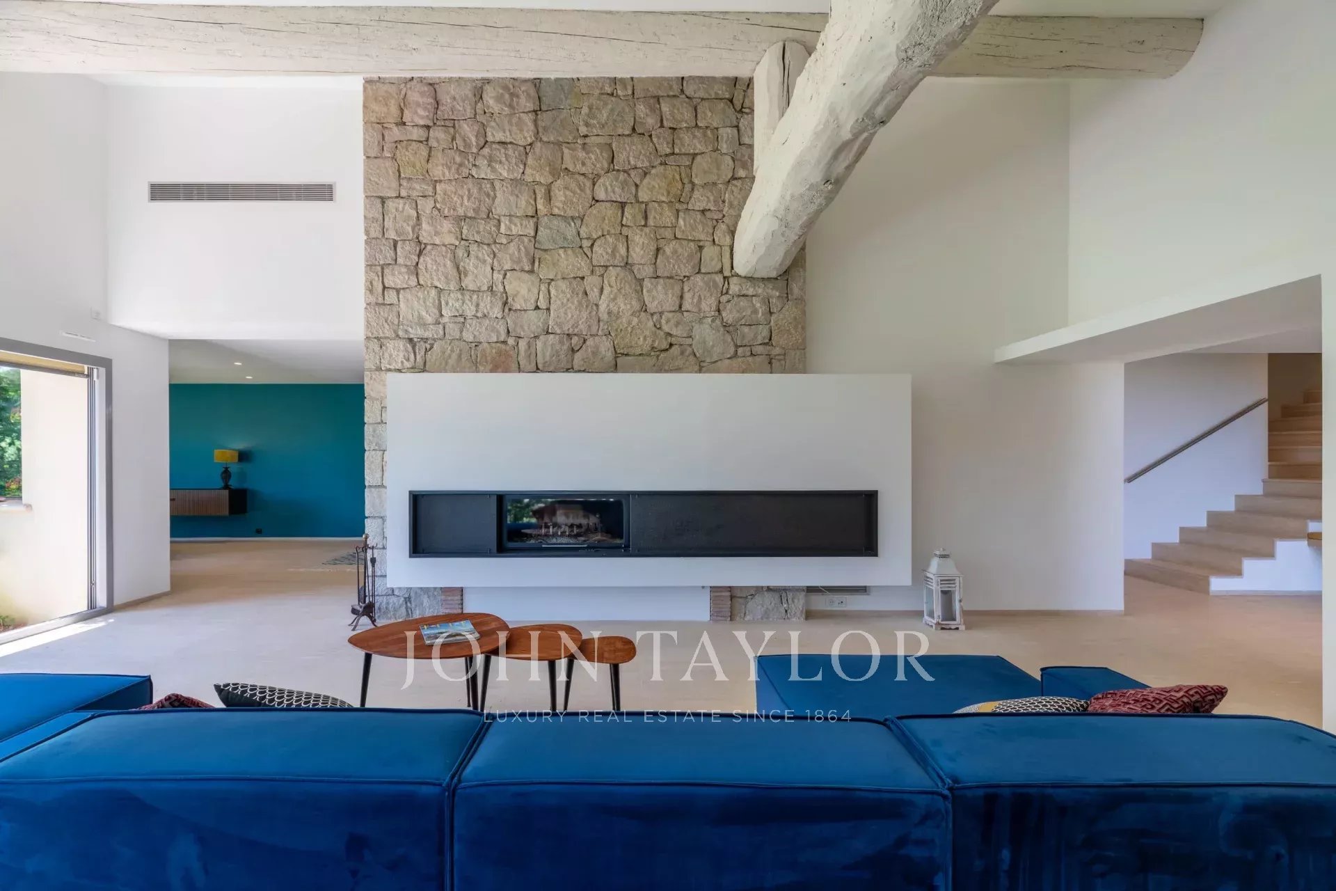 In einem prestigeträchtigen, geschlossenen Wohngebiet mit Panoramablick auf das Dorf Biot und das Meer im Hintergrund liegt dieses wunderschöne, zeitgenössische Anwesen, das vollständig und raffiniert renoviert wurde. Es bietet eine Wohnfläche von ca. 360 m² inmitten eines 2586 m² großen Landschaftsparks mit Pool.