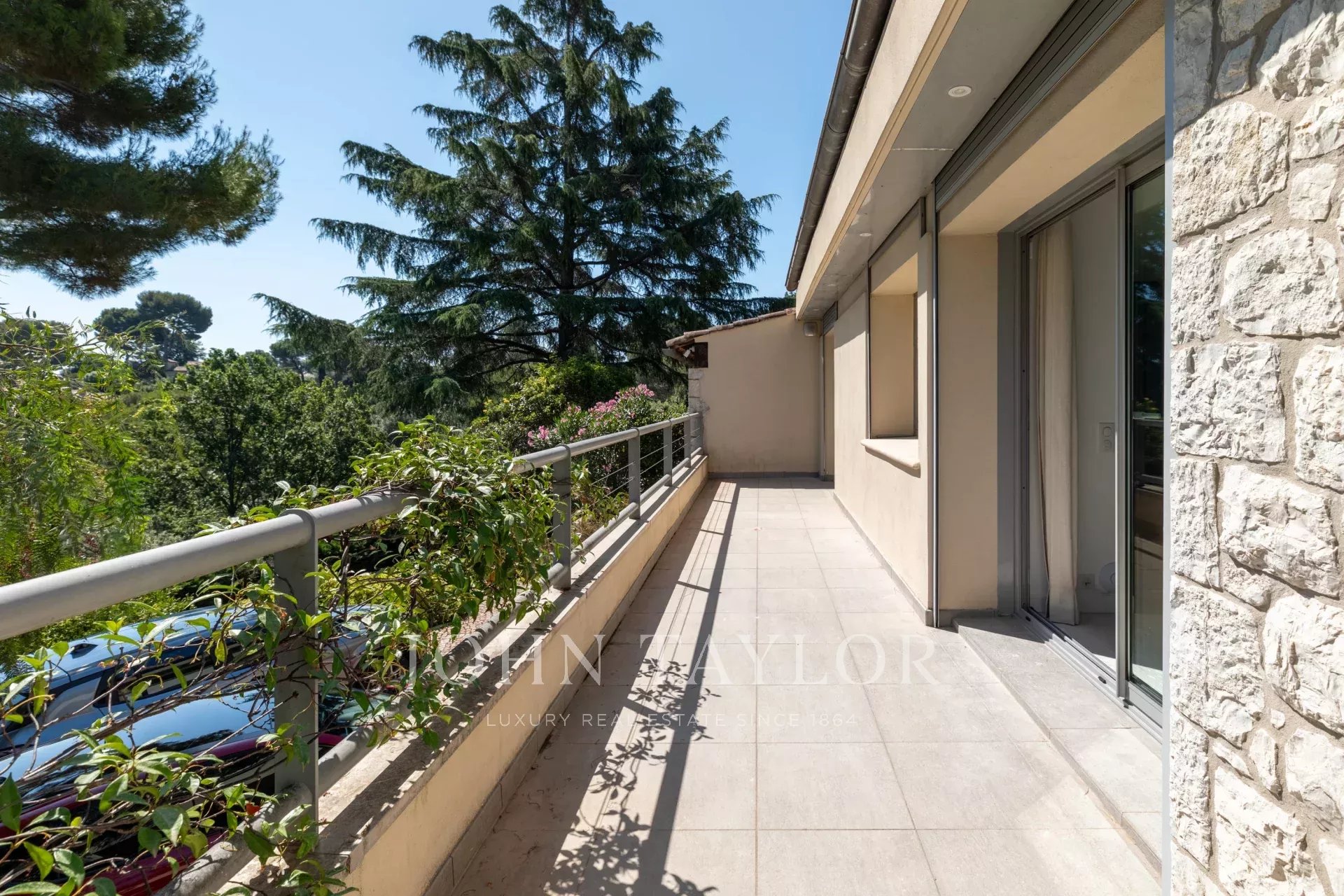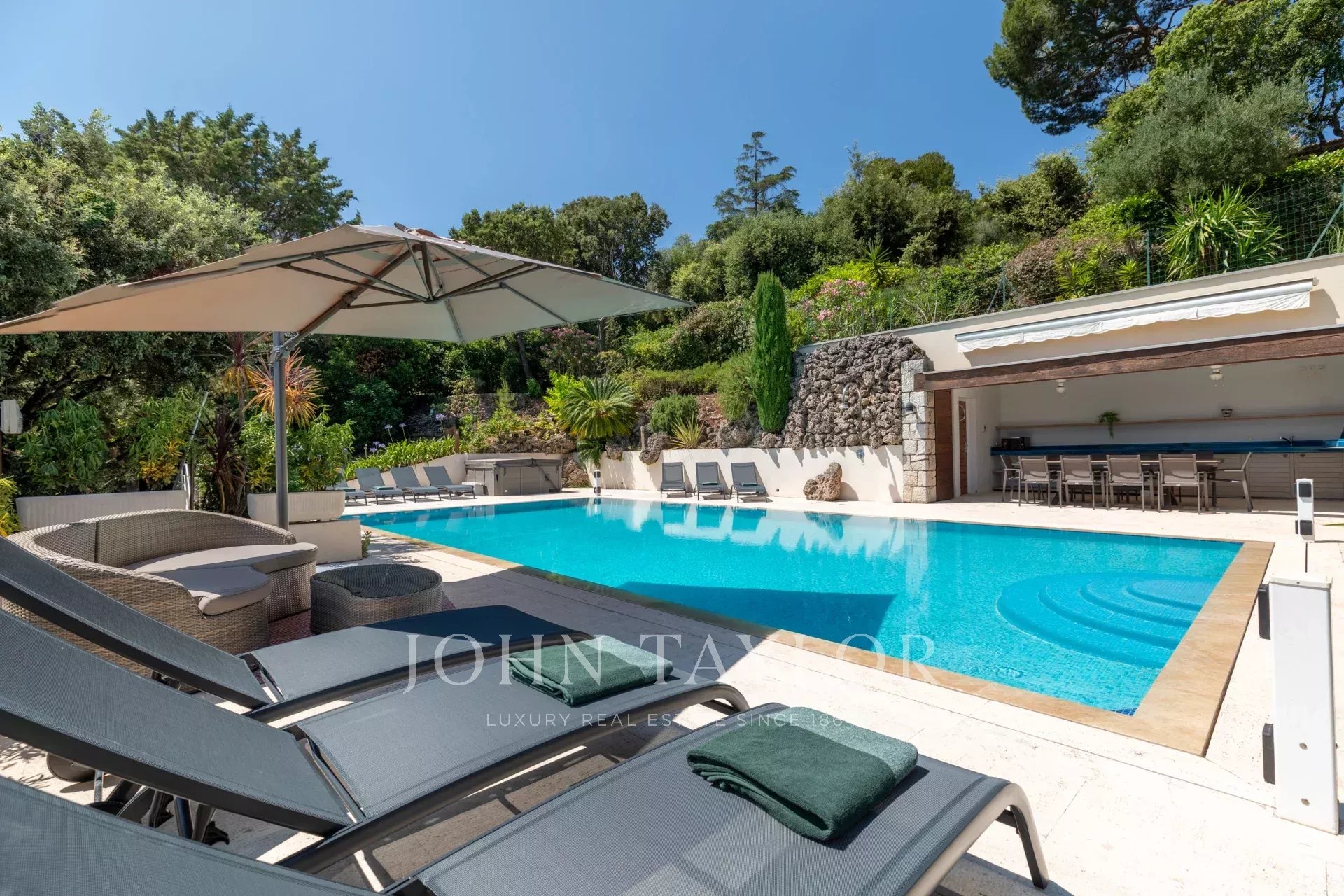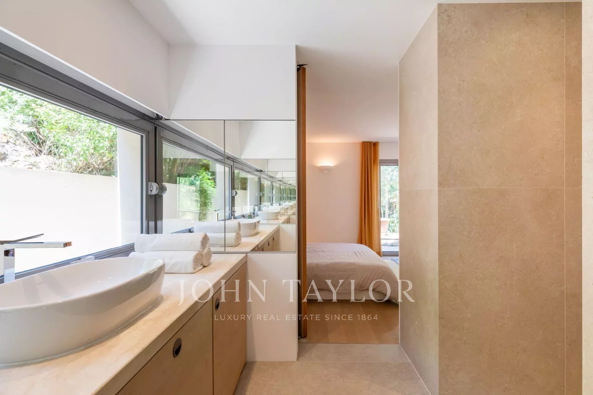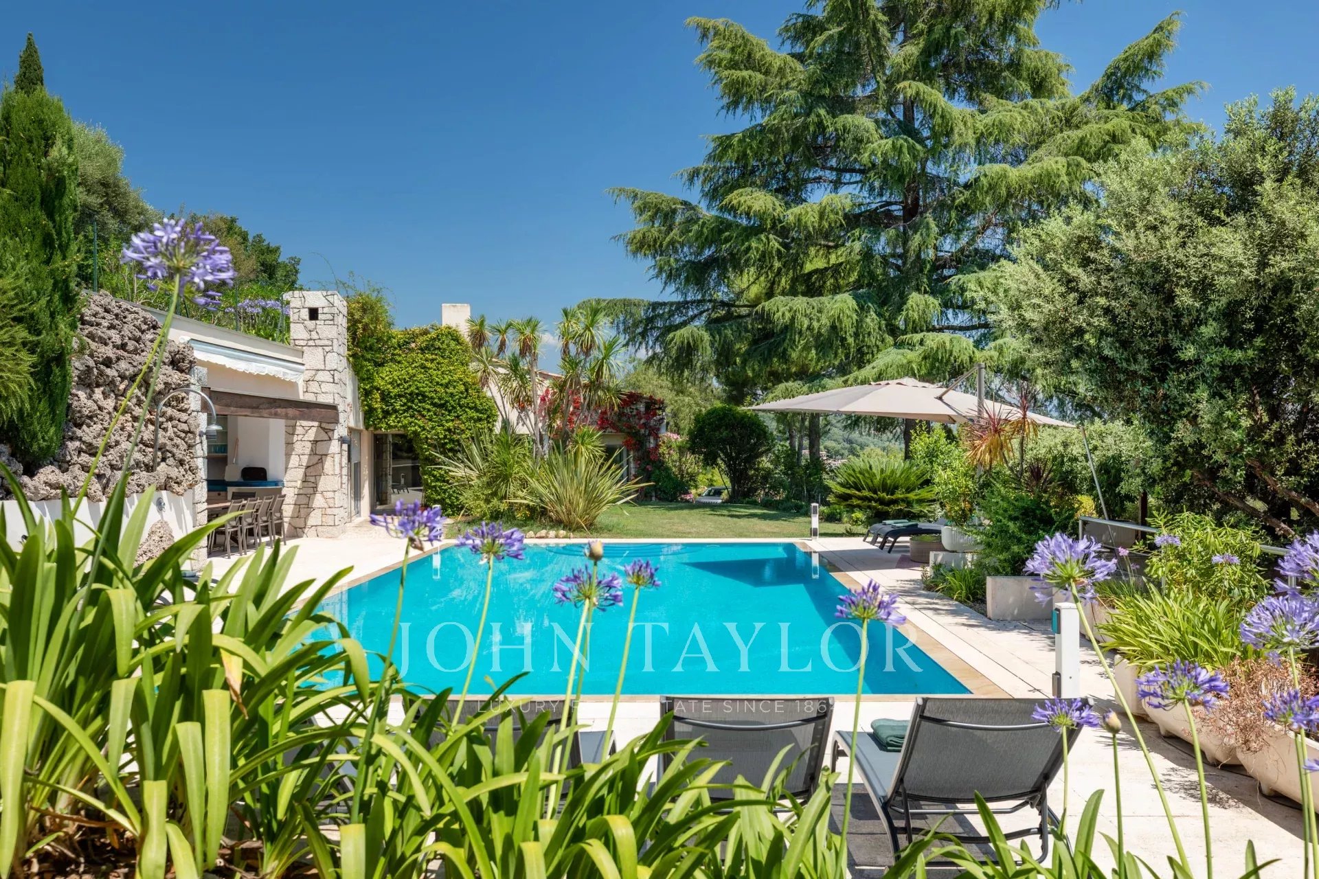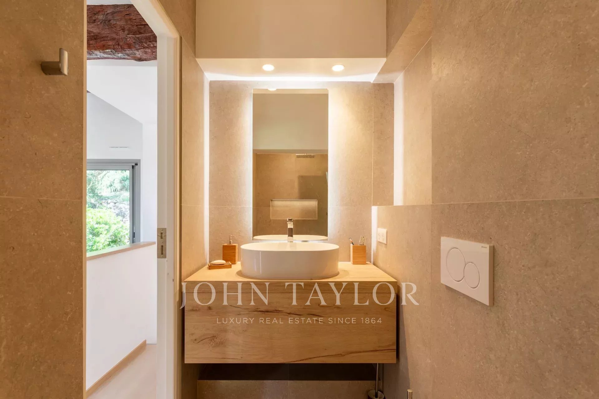 In einem prestigeträchtigen, geschlossenen Wohngebiet mit Panoramablick auf das Dorf Biot und das Meer im Hintergrund liegt dieses wunderschöne, zeitgenössische Anwesen, das vollständig und raffiniert renoviert wurde. Es bietet eine Wohnfläche von ca. 360 m² inmitten eines 2586 m² großen Landschaftsparks mit Pool.