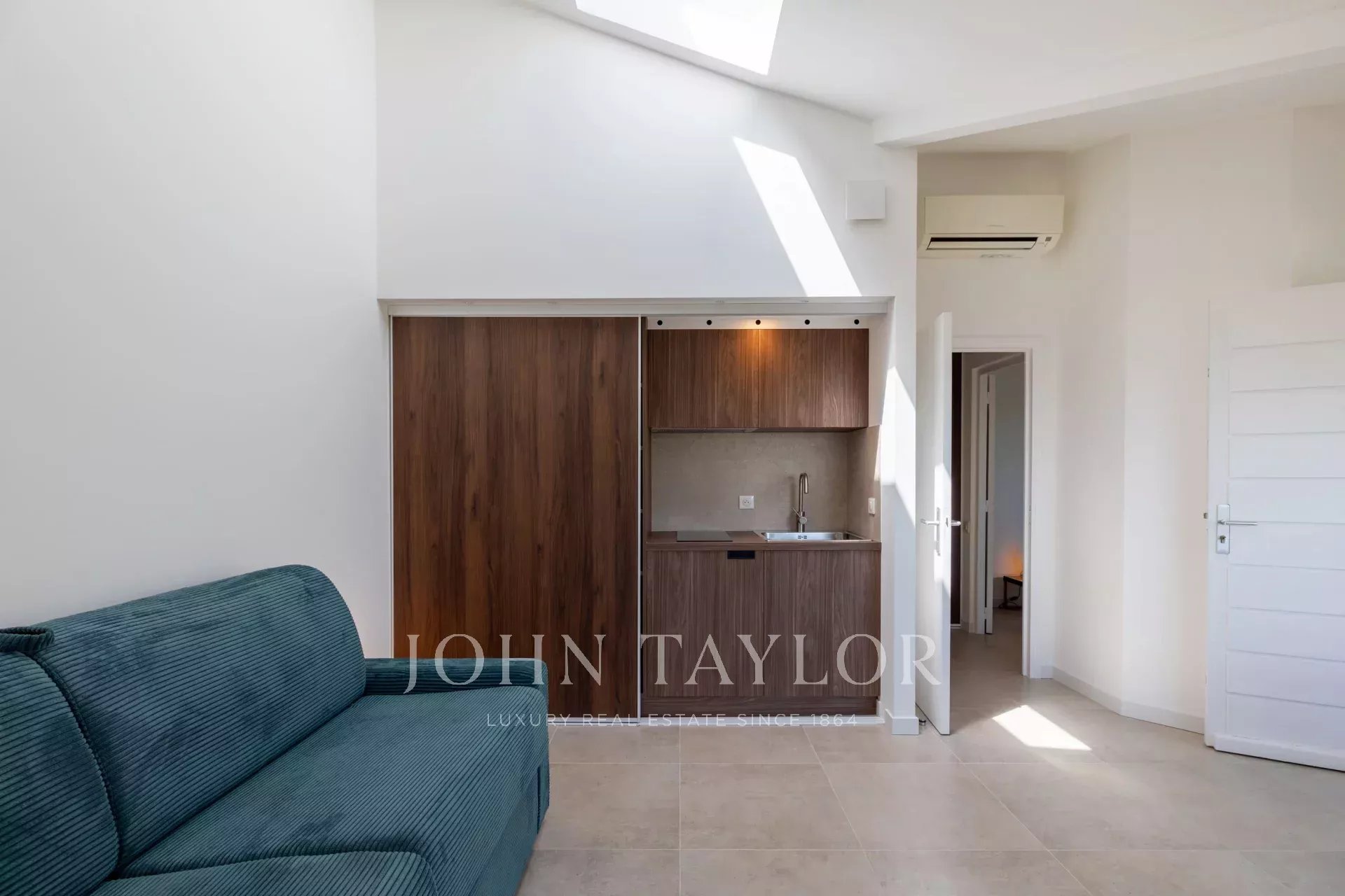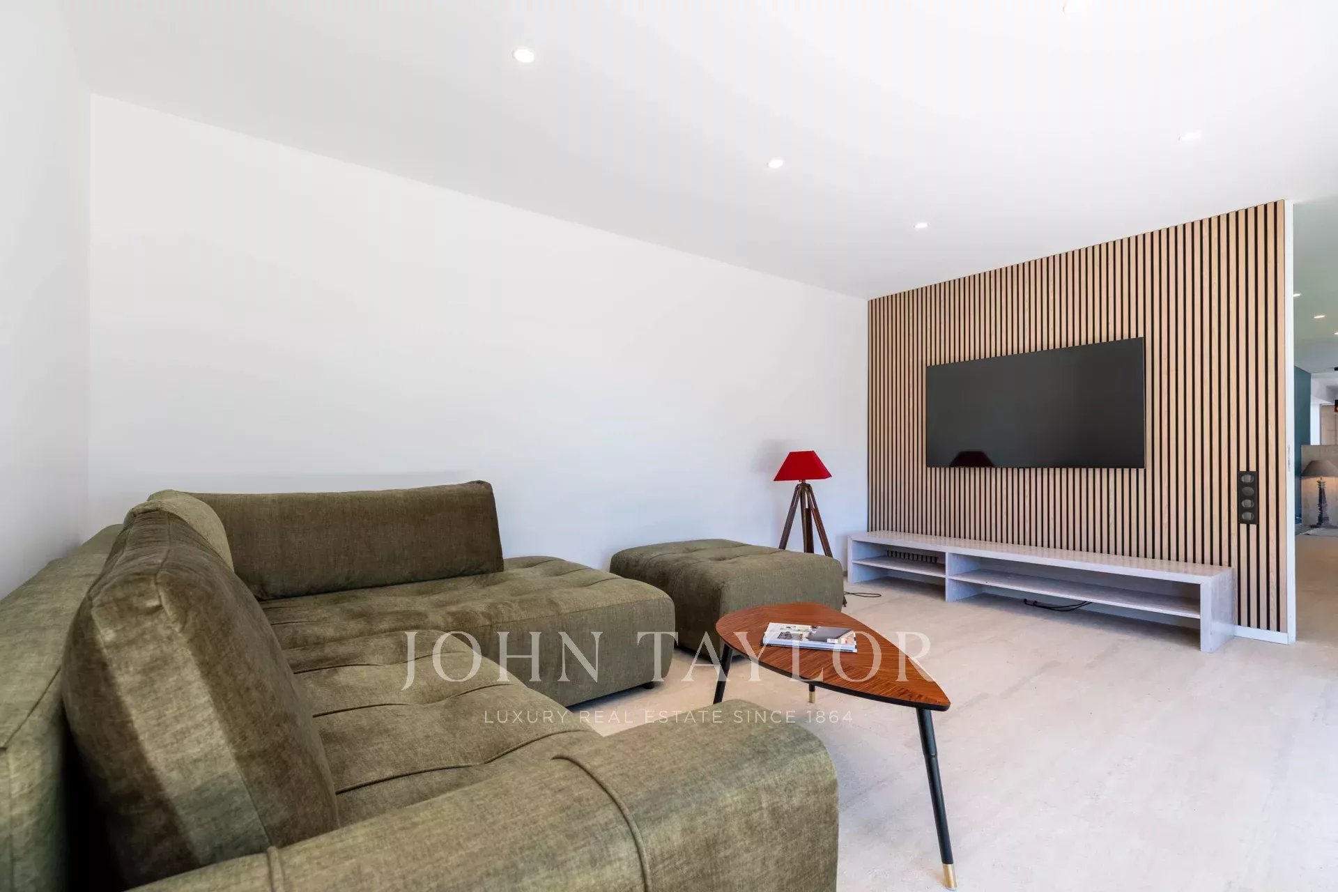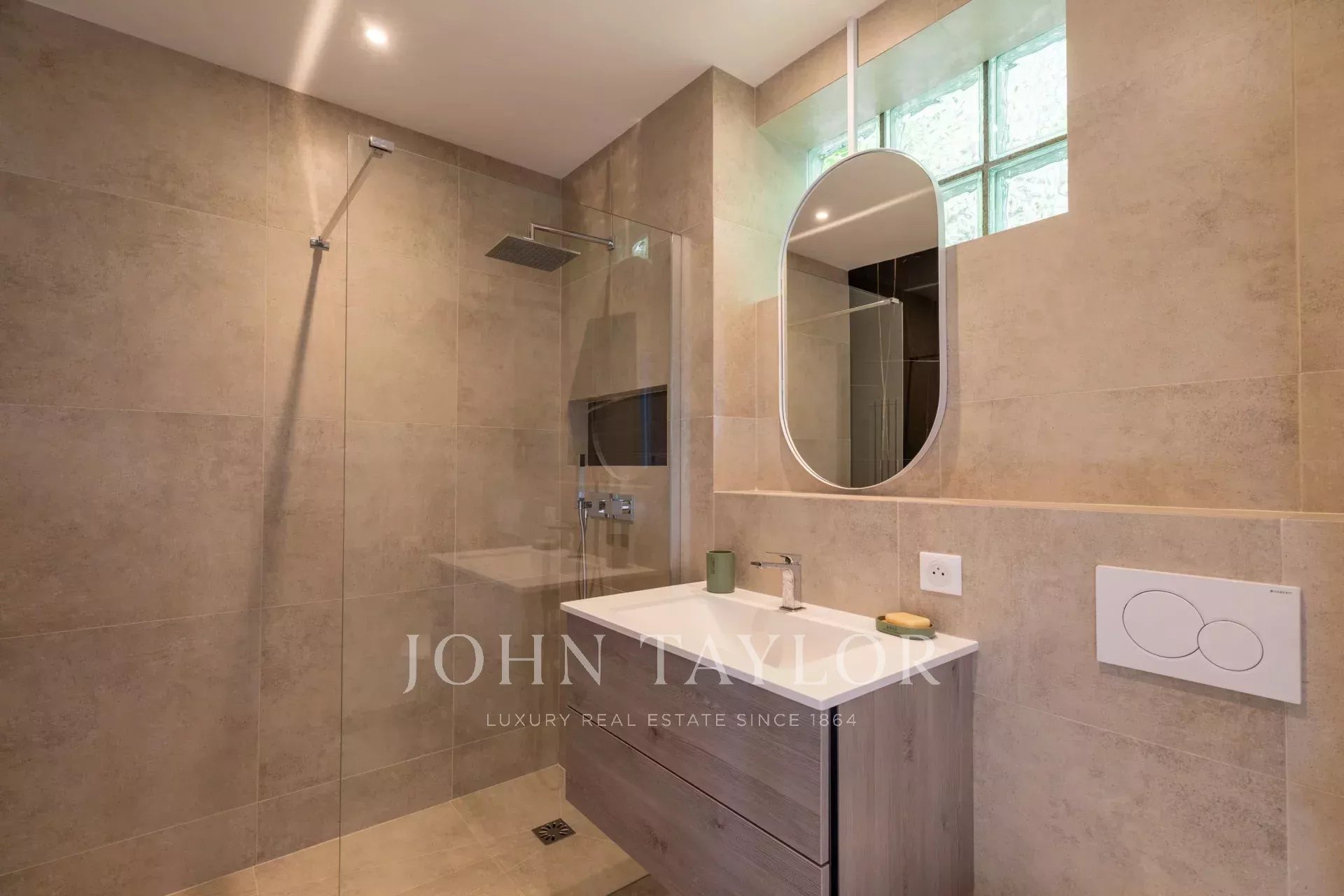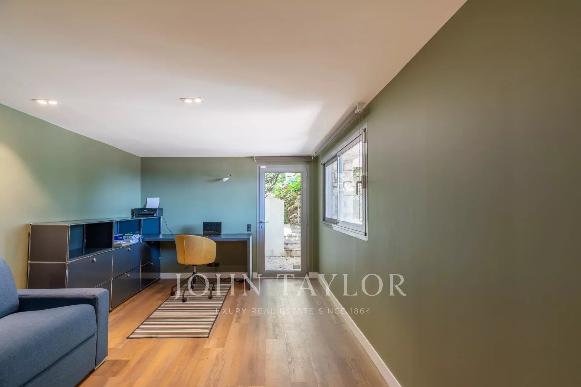 In einem prestigeträchtigen, geschlossenen Wohngebiet mit Panoramablick auf das Dorf Biot und das Meer im Hintergrund liegt dieses wunderschöne, zeitgenössische Anwesen, das vollständig und raffiniert renoviert wurde. Es bietet eine Wohnfläche von ca. 360 m² inmitten eines 2586 m² großen Landschaftsparks mit Pool.