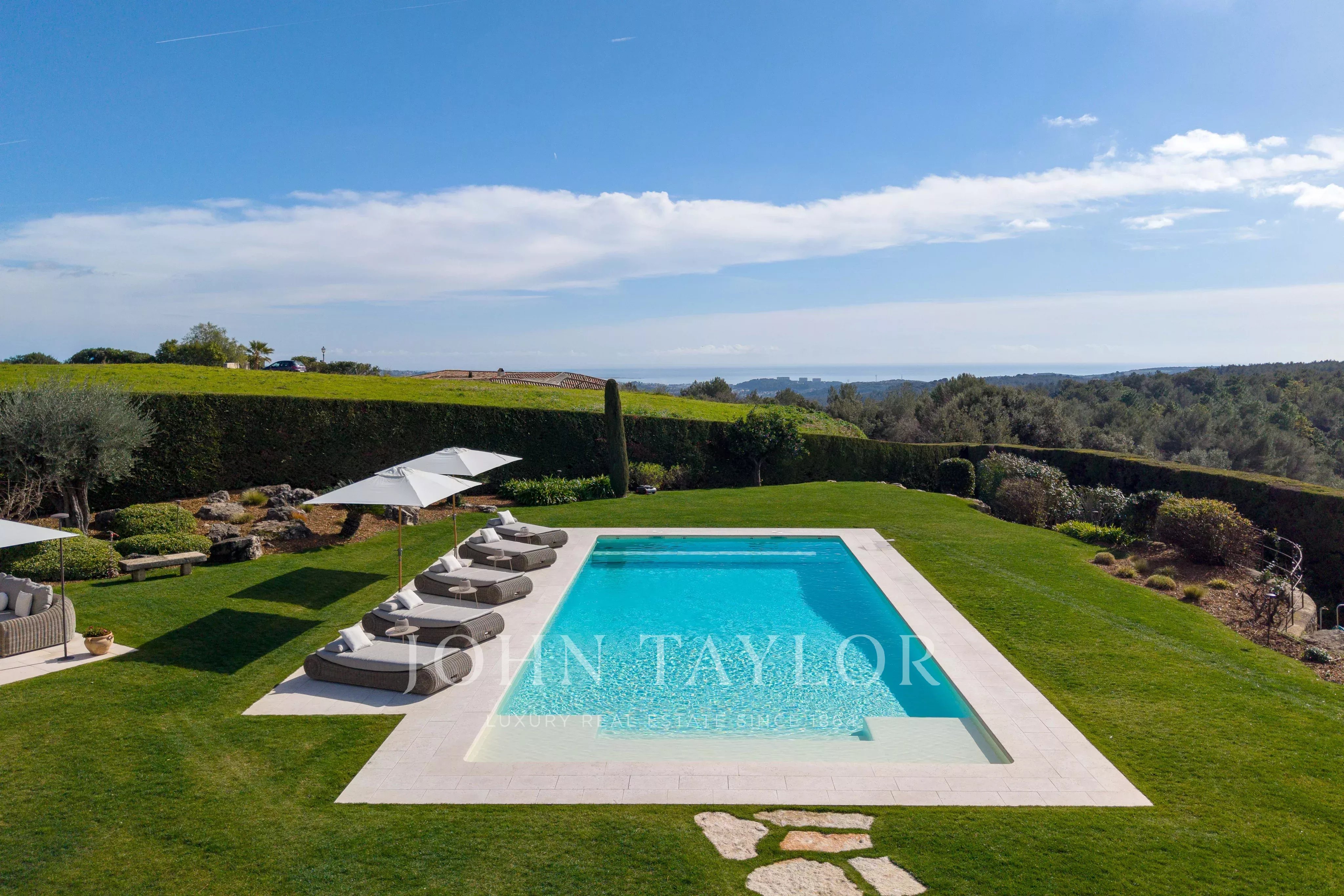 Mit einer Wohnfläche von 402 m² auf einem 3.080 m² großen Grundstück bietet es drei Schlafzimmer und ein Kinderzimmer in einem eleganten und harmonischen Rahmen.