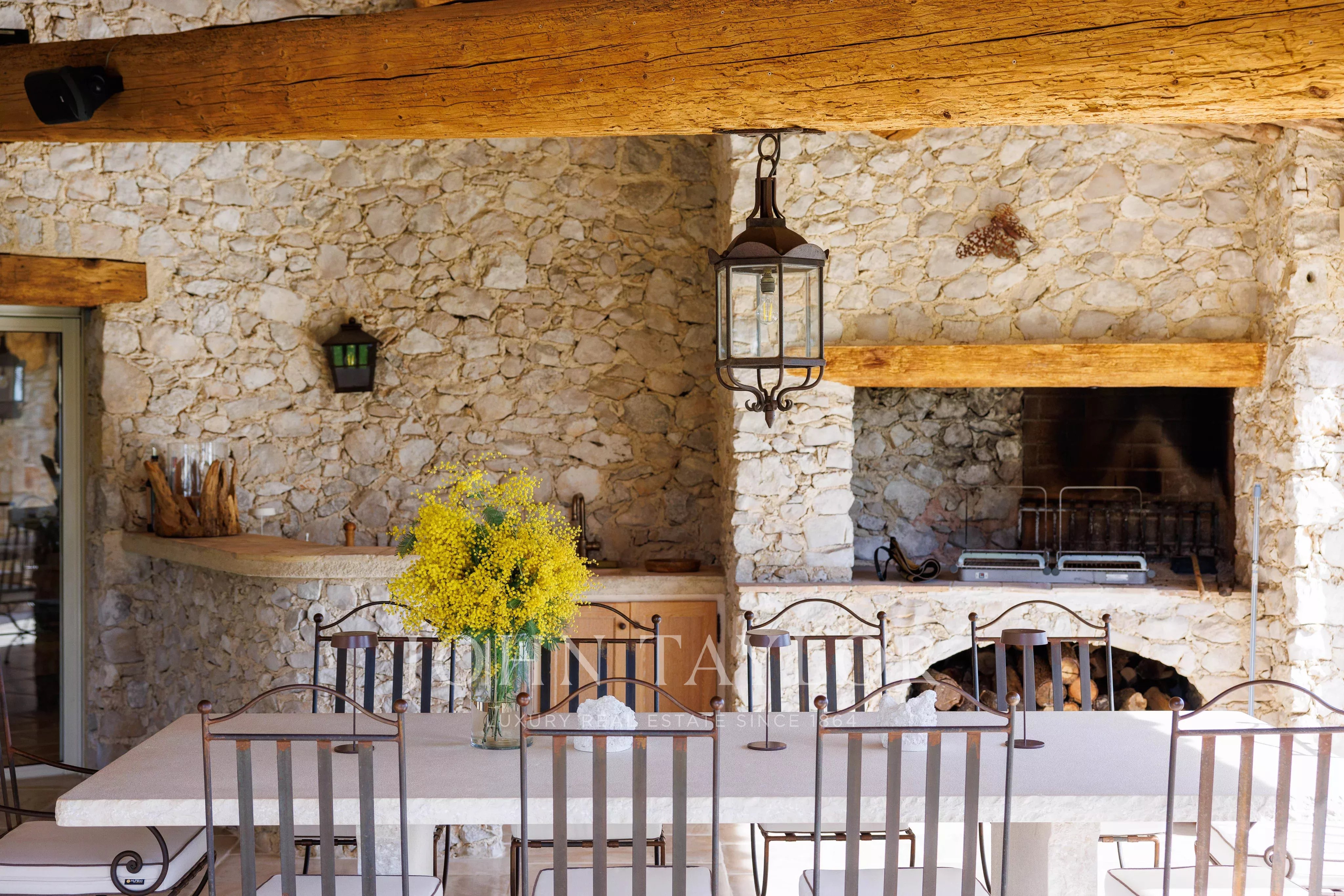 Mit ihren Natursteinfassaden, sichtbaren Holzbalken und edlen Materialien bietet sie eine warme und raffinierte Atmosphäre.