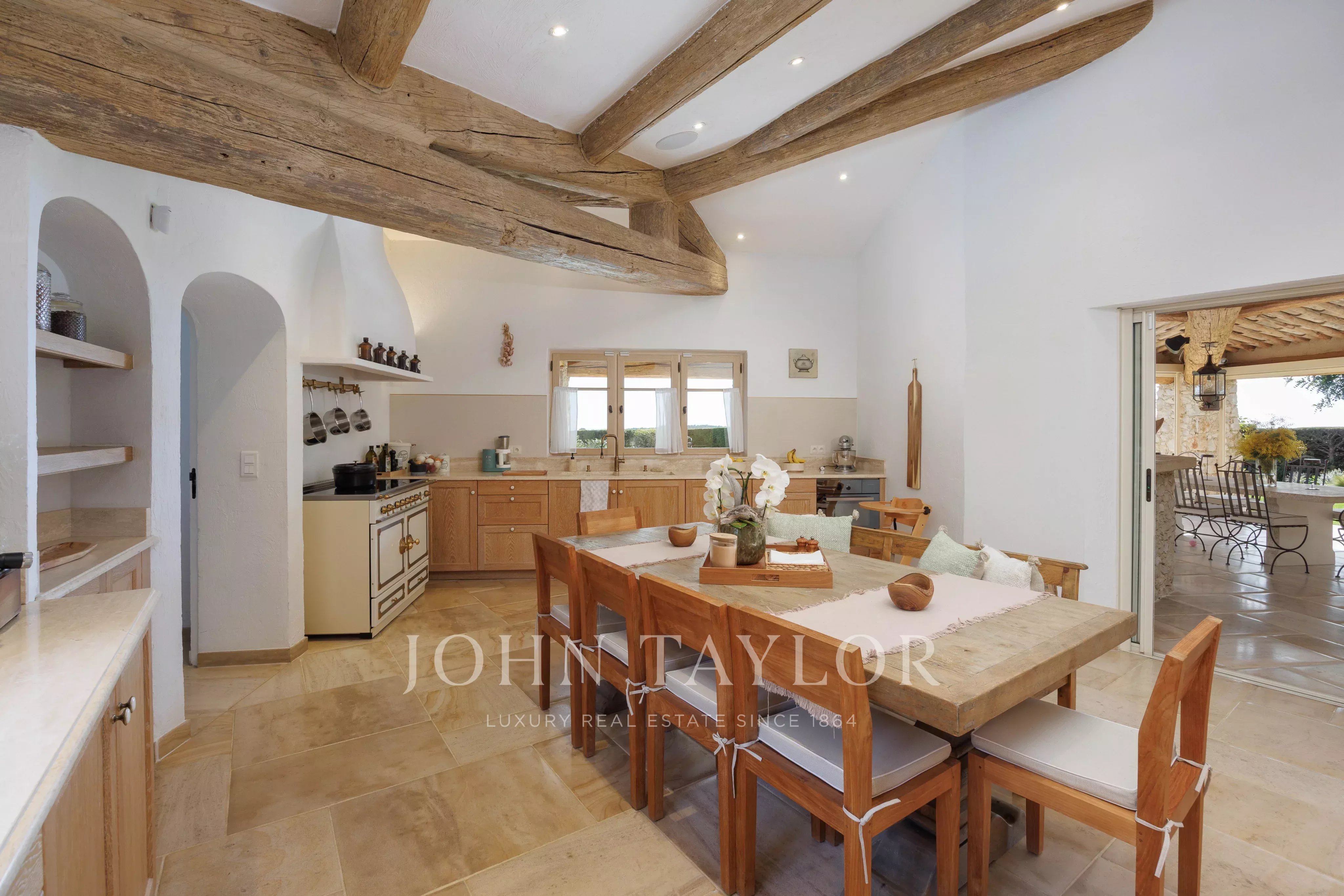 Im Außenbereich befindet sich ein wunderschön angelegter Garten mit einem beheizten Salzwasserpool und einer Sommerküche mit Kohle- und Gasgrill, die zu langen, geselligen Stunden einlädt.