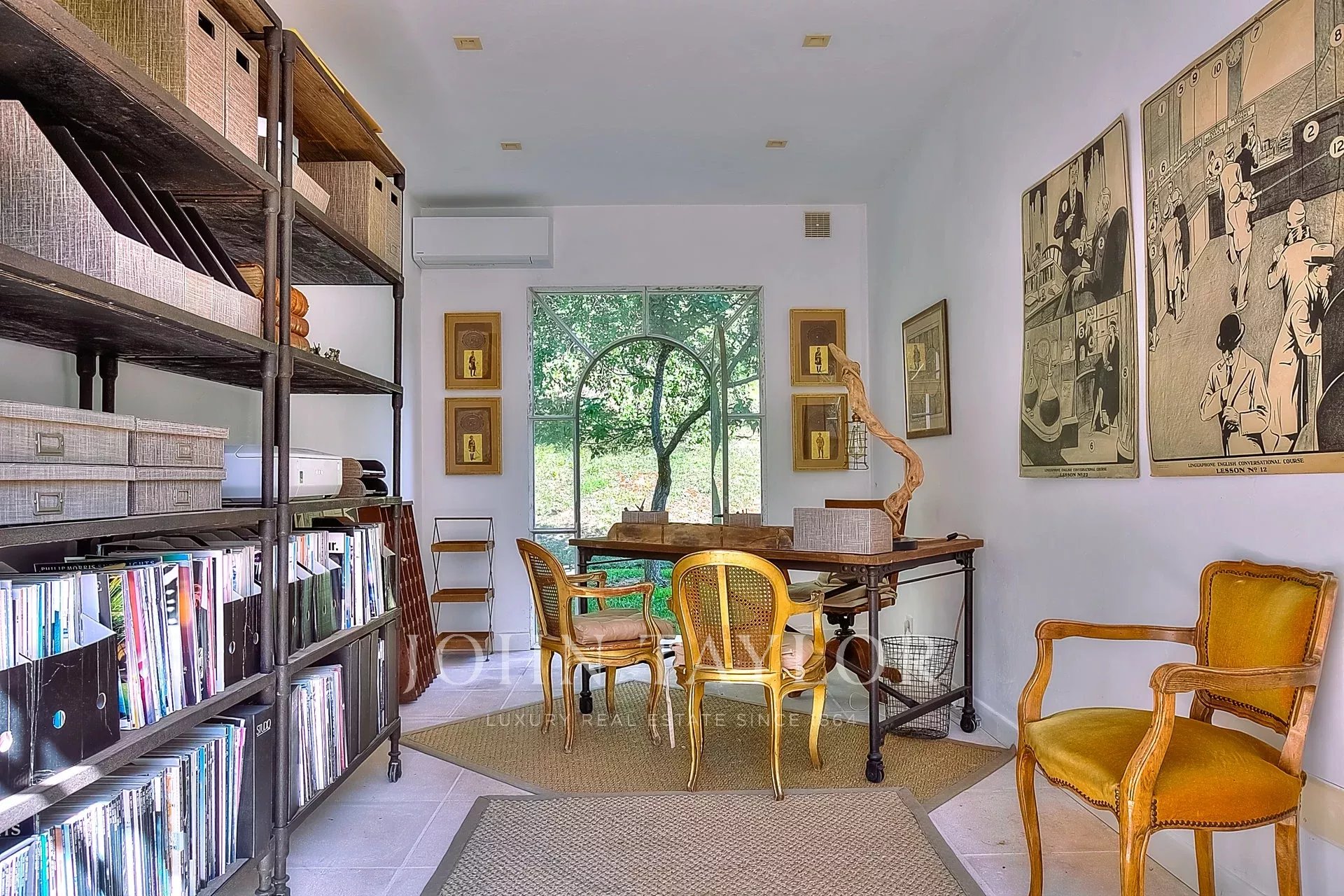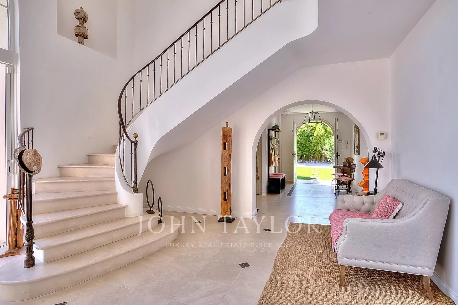 Diese wunderschöne Villa liegt in einer friedlichen und grünen Umgebung, nur 3 Minuten vom Dorf Valbonne entfernt. Sie bietet 400 m² Wohnfläche mit großzügigen Volumen und befindet sich auf einem großen Grundstück von 9000 m² mit mediterranen Bäumen und einem Waldgebiet.