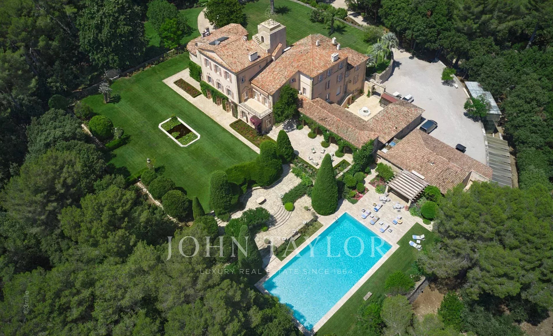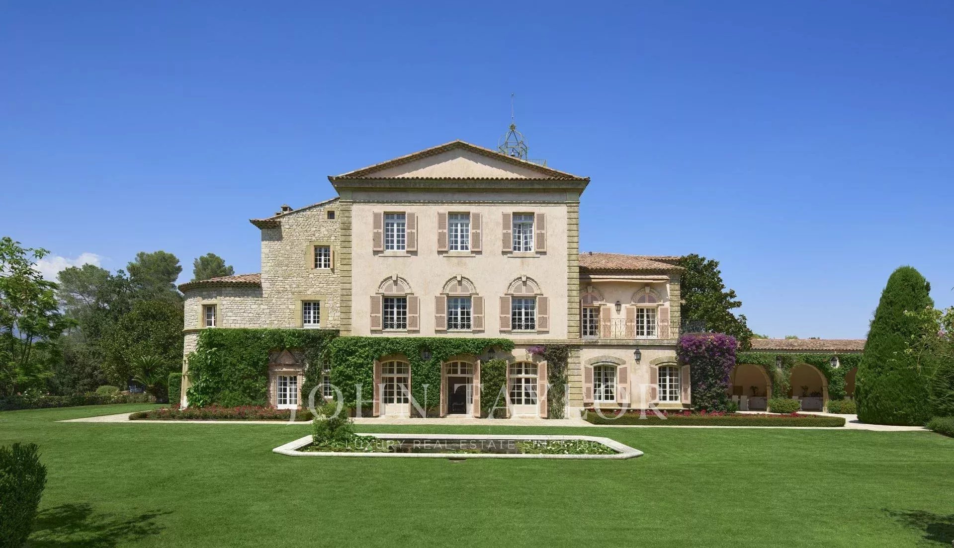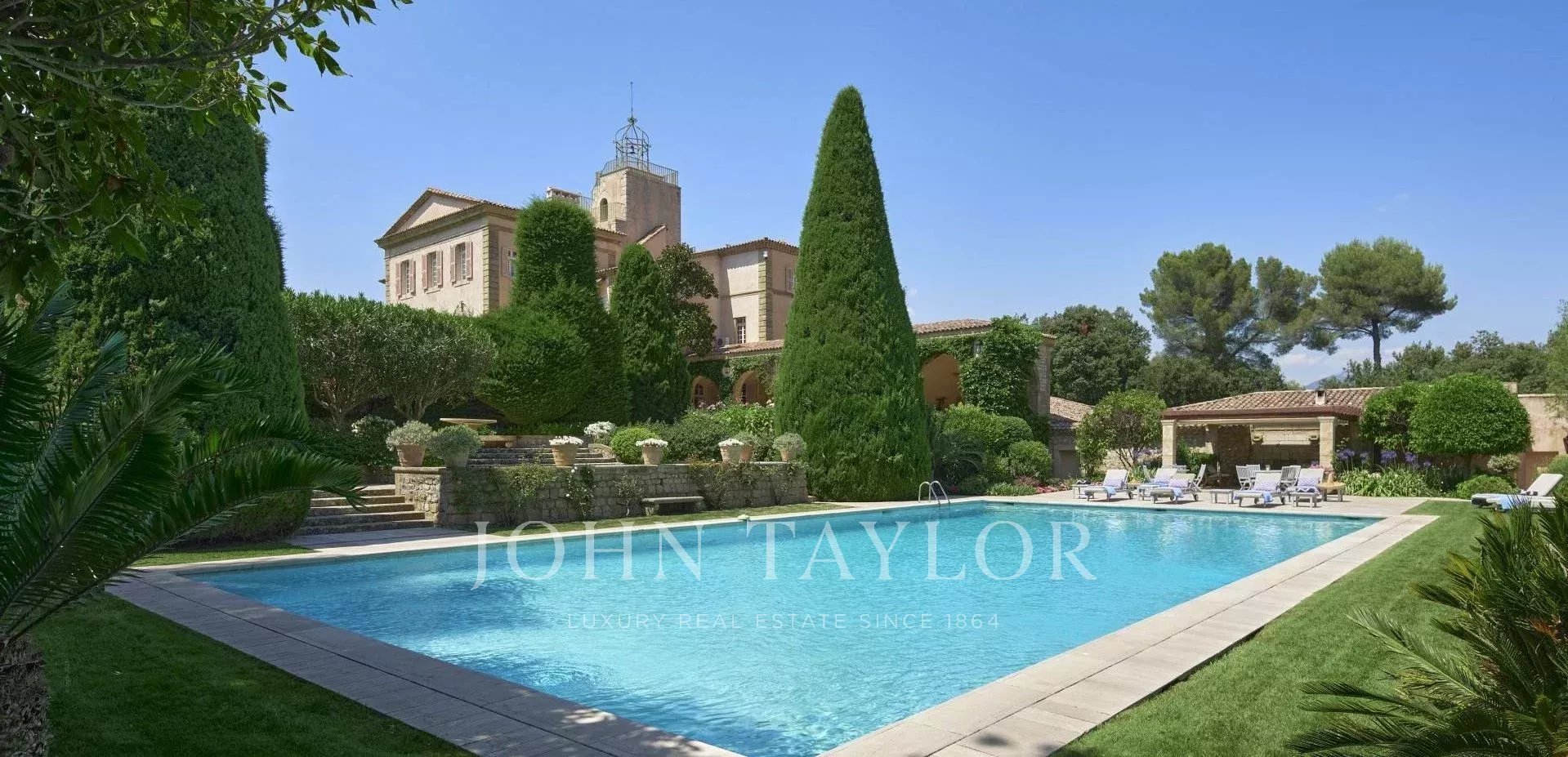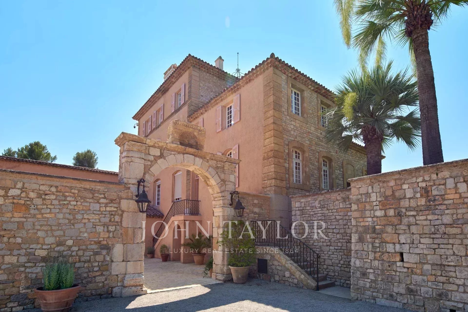 Auf einem privaten Hügel mit freiem Blick auf das Meer liegt dieses prächtige, 1920 aus Quadersteinen erbaute Schloss, in dem JFK als Kind seine Sommerferien verbrachte, als sein Vater Joseph Kennedy zwischen 1938 und 1940 als britischer Botschafter in London amtierte. Ideal gelegen zwischen den Dörfern Valbonne und Mougins, 20 Minuten von Cannes und seinen Stränden entfernt. Das Anwesen profitiert von einem etwa achtzehn Hektar großen Park.