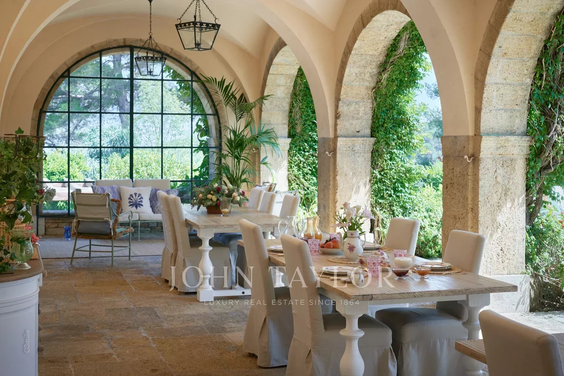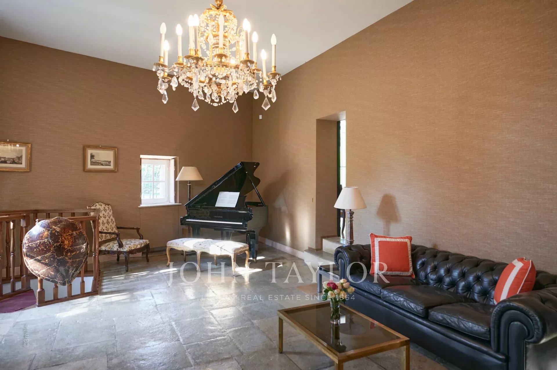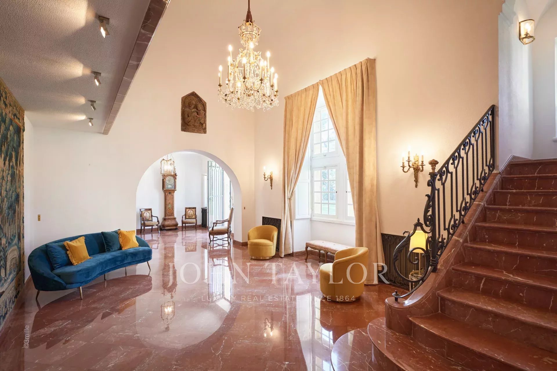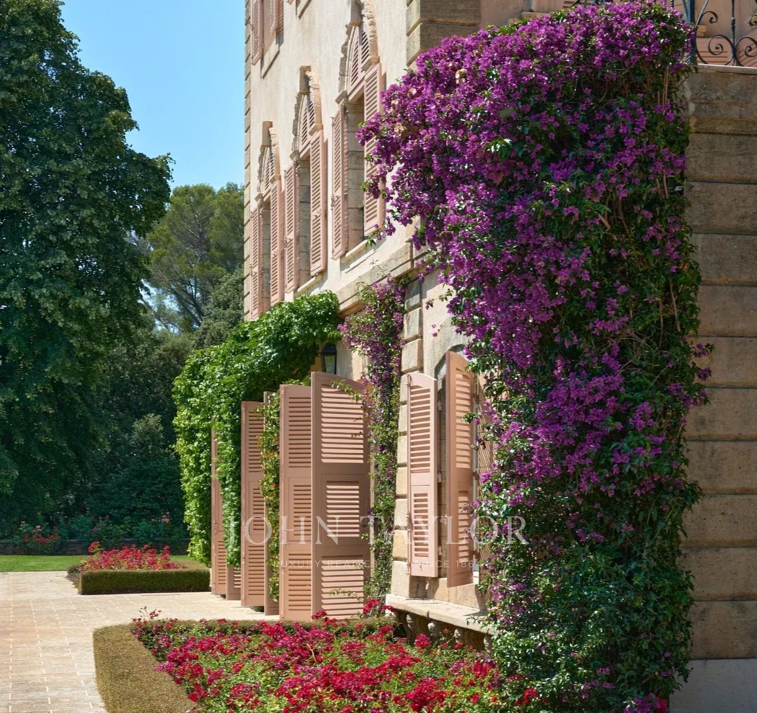 Auf einem privaten Hügel mit freiem Blick auf das Meer liegt dieses prächtige, 1920 aus Quadersteinen erbaute Schloss, in dem JFK als Kind seine Sommerferien verbrachte, als sein Vater Joseph Kennedy zwischen 1938 und 1940 als britischer Botschafter in London amtierte. Ideal gelegen zwischen den Dörfern Valbonne und Mougins, 20 Minuten von Cannes und seinen Stränden entfernt. Das Anwesen profitiert von einem etwa achtzehn Hektar großen Park.