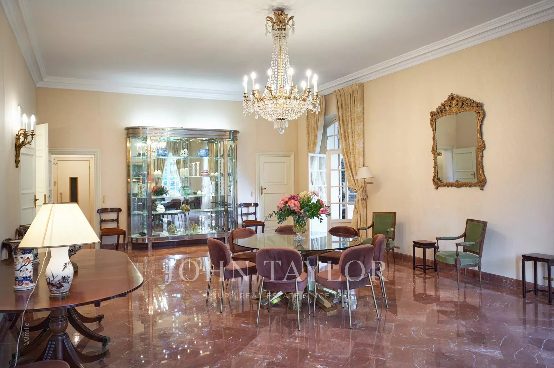 - Großes Wohnzimmer, das mit einem geräumigen Esszimmer verdoppelt wird,