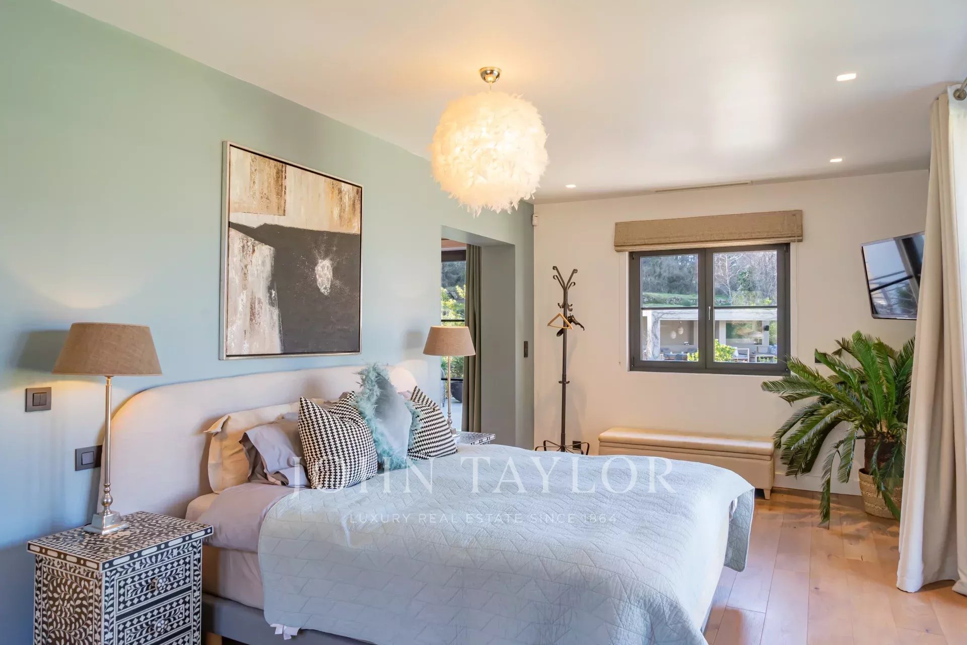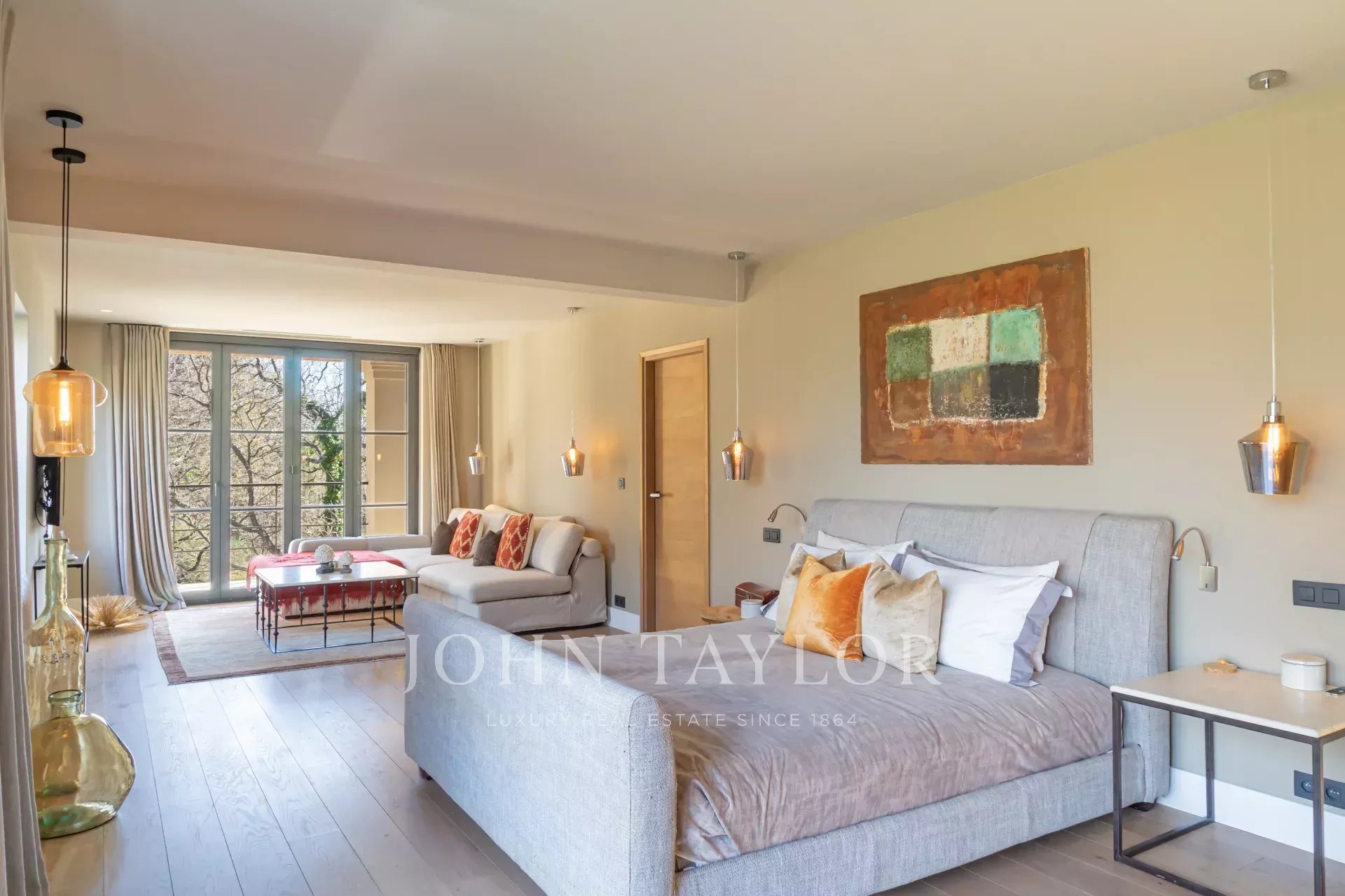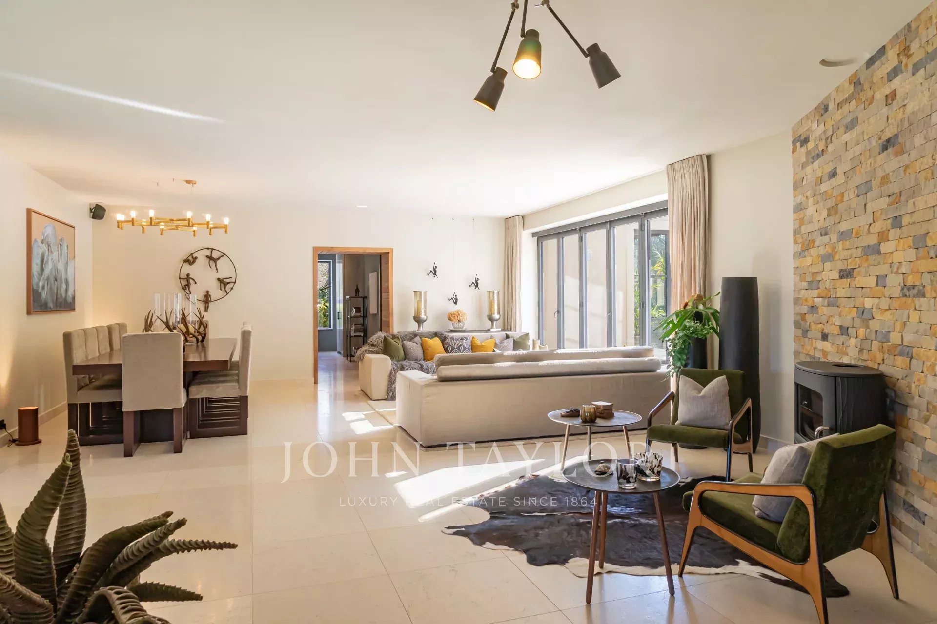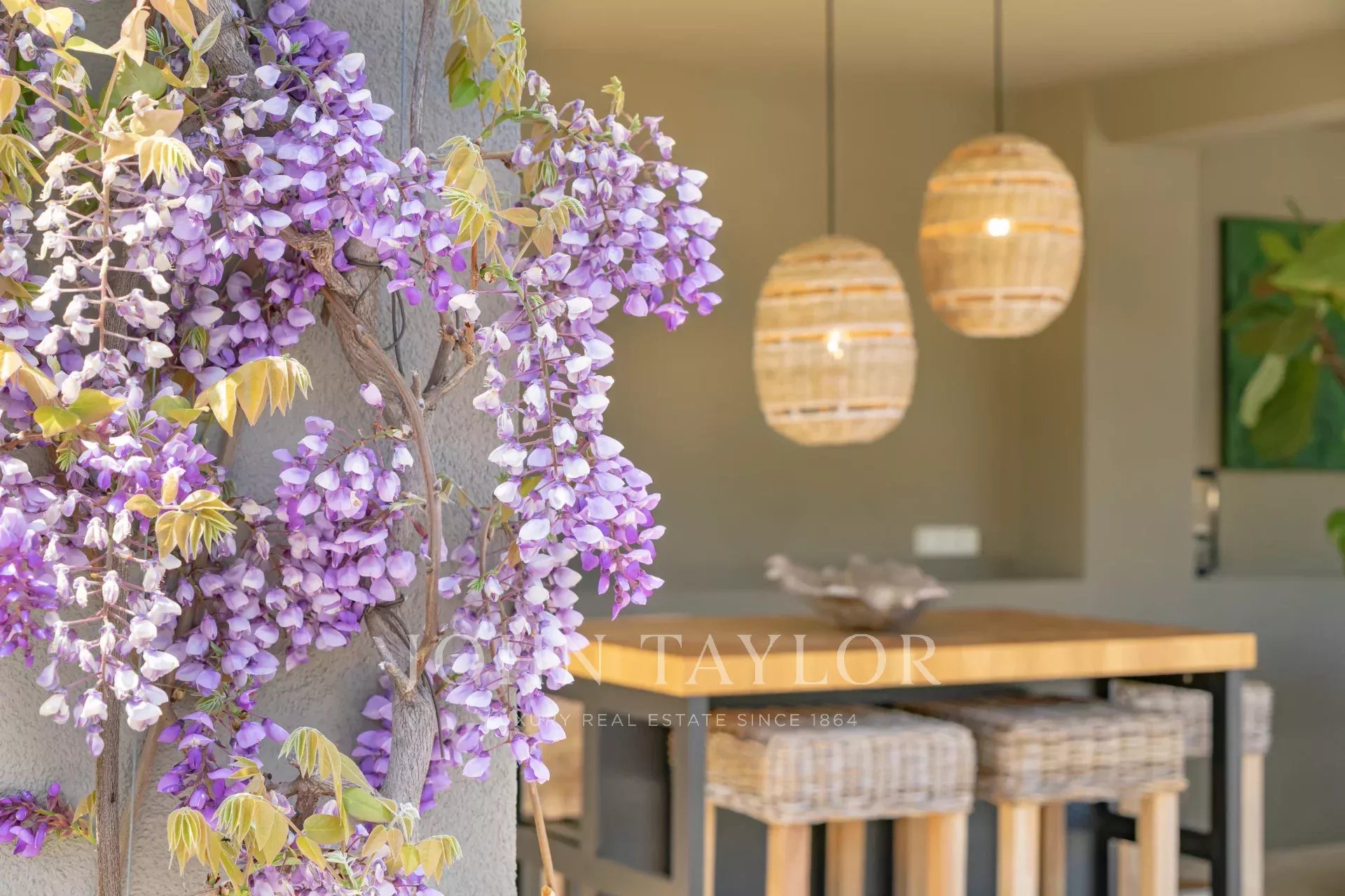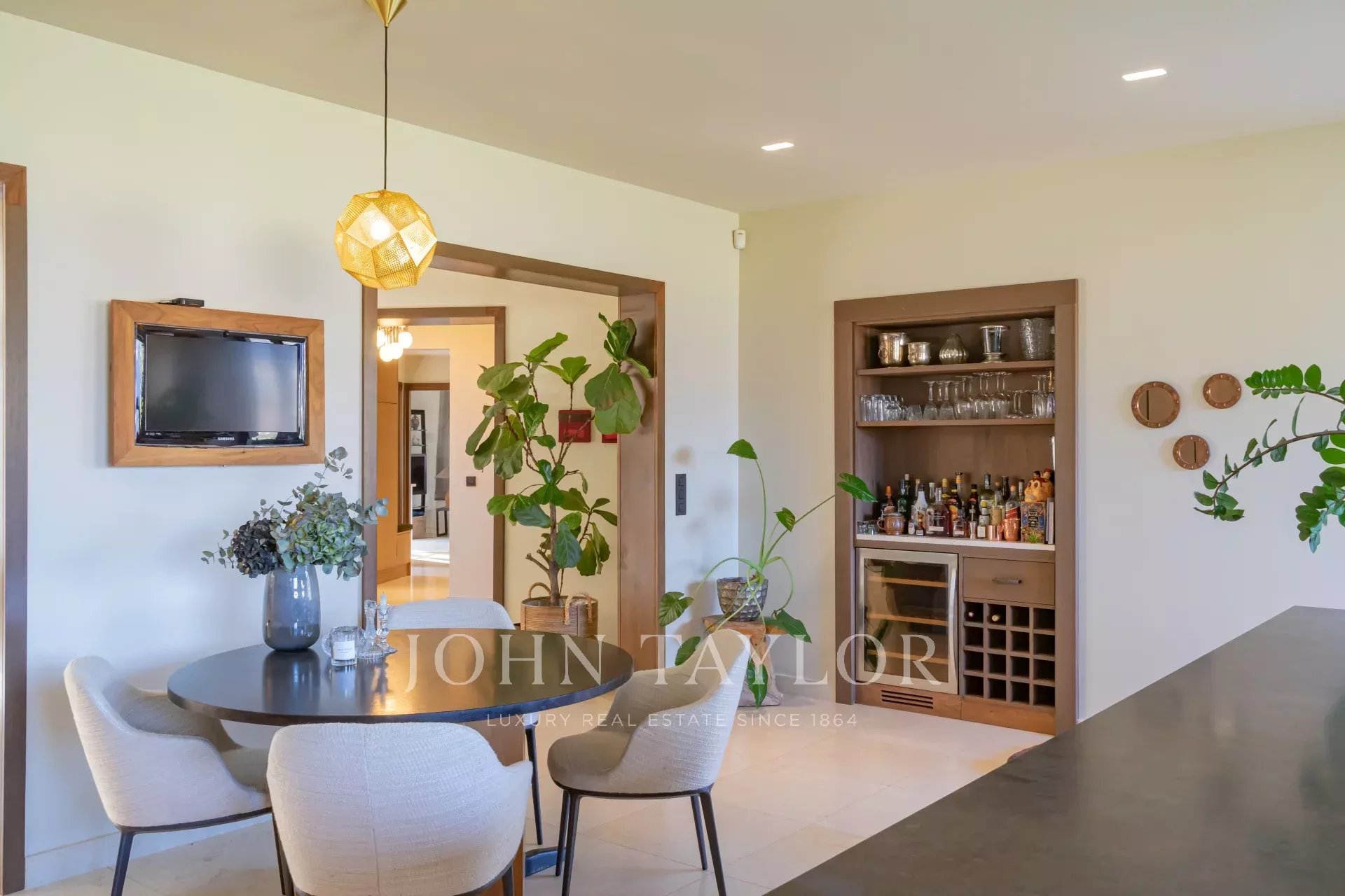 Die Villa wurde mit hochwertigen Materialien und erlesenem Geschmack renoviert und besteht aus einer modernen, ausgestatteten Küche mit Essbereich, die sich zum Garten und zum Wohnbereich im Freien hin öffnet, einem großen Wohn-/Esszimmer, einem Heimkino und einem hellen Büro. Im Erdgeschoss befindet sich ein separates Schlafzimmer/Studio, das sich ideal für Freunde oder Personal eignet.