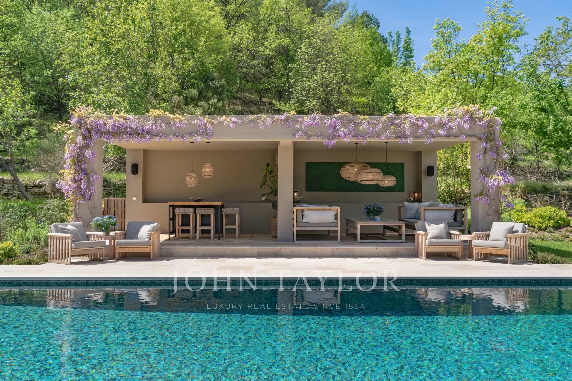 Poolhaus, das zur Entspannung und für Empfänge eingerichtet wurde.