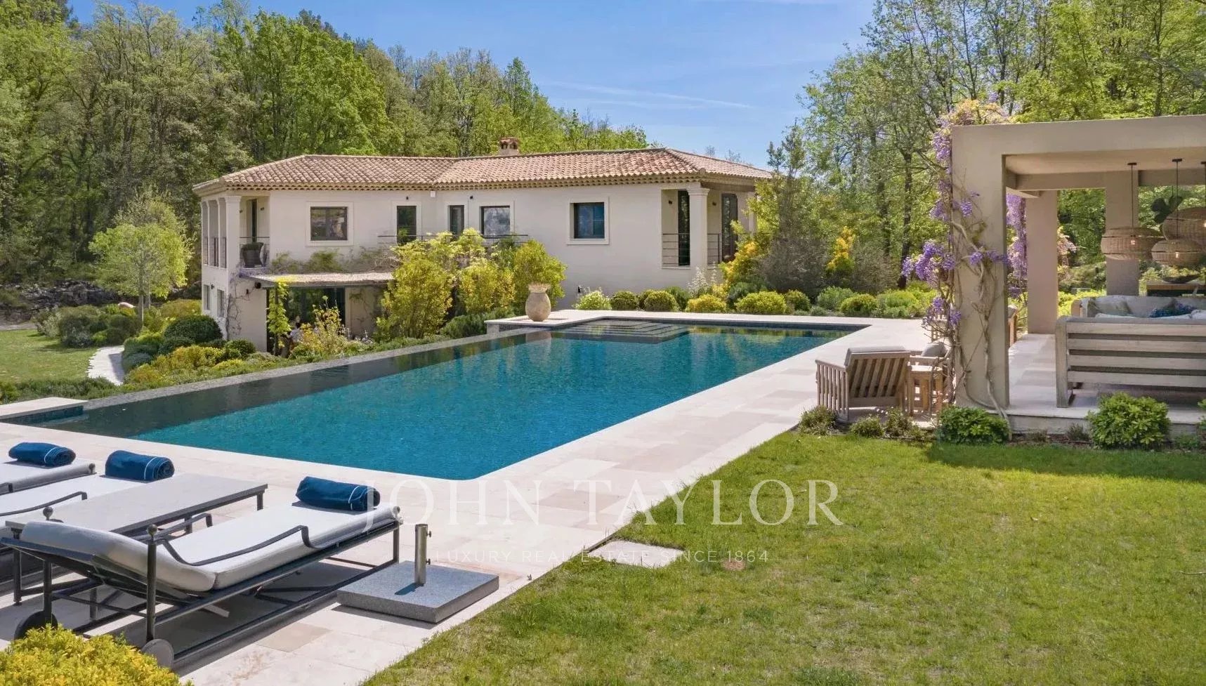 Wunderschöne Villa zu vermieten - Panoramablick, 5 Schlafzimmer, Infinity-Pool, Nähe Valbonne