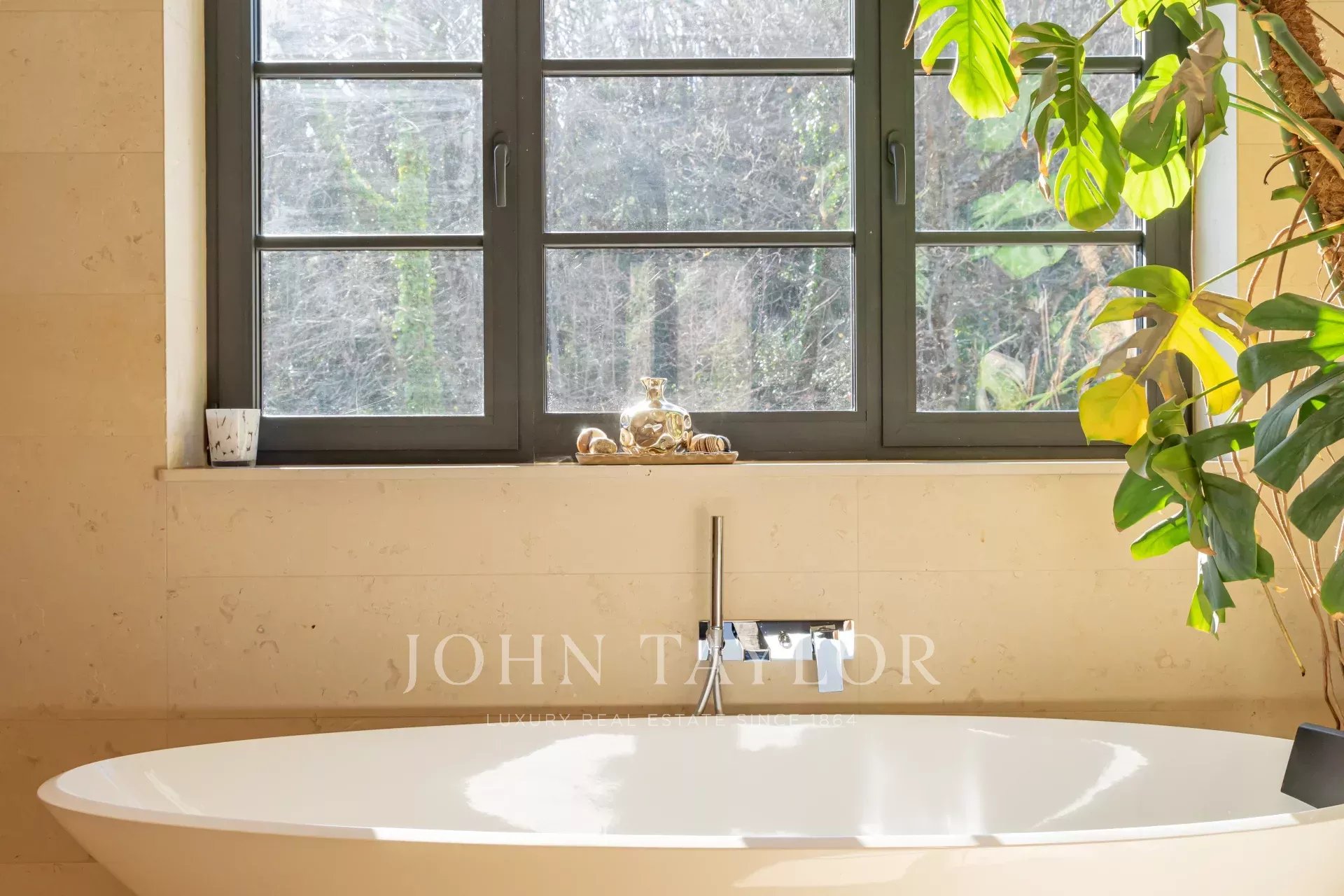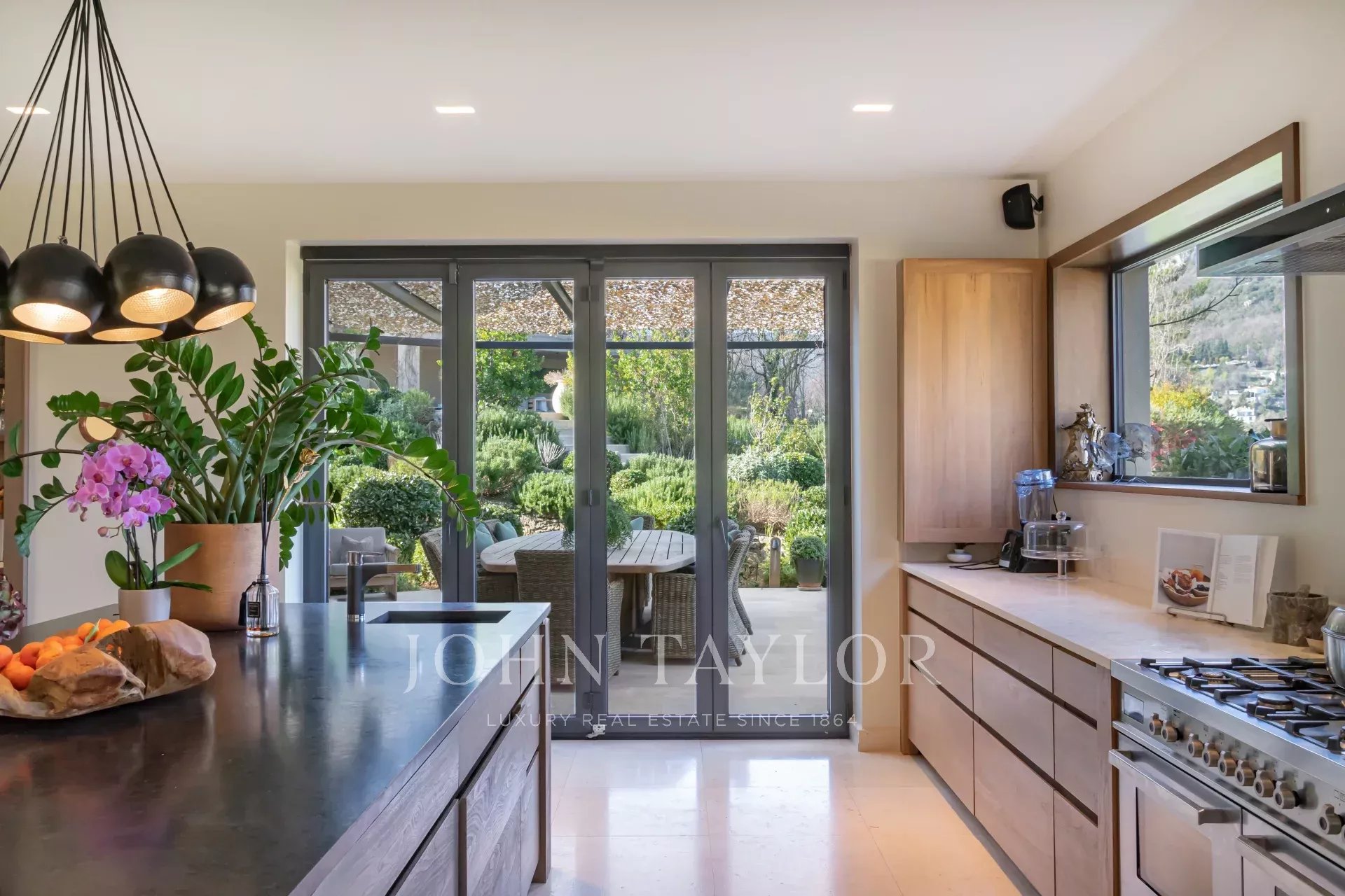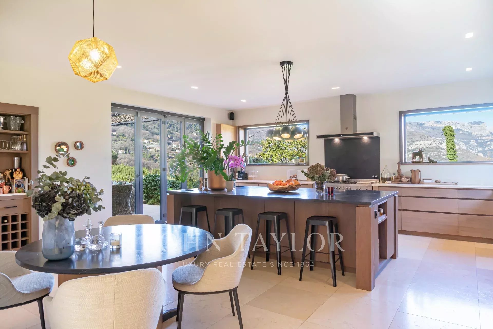 Die Villa wurde mit hochwertigen Materialien und erlesenem Geschmack renoviert und besteht aus einer modernen, ausgestatteten Küche mit Essbereich, die sich zum Garten und zum Wohnbereich im Freien hin öffnet, einem großen Wohn-/Esszimmer, einem Heimkino und einem separaten Schlafzimmer/Studio im Erdgeschoss, das sich ideal für die Unterbringung von Freunden oder Personal eignet.