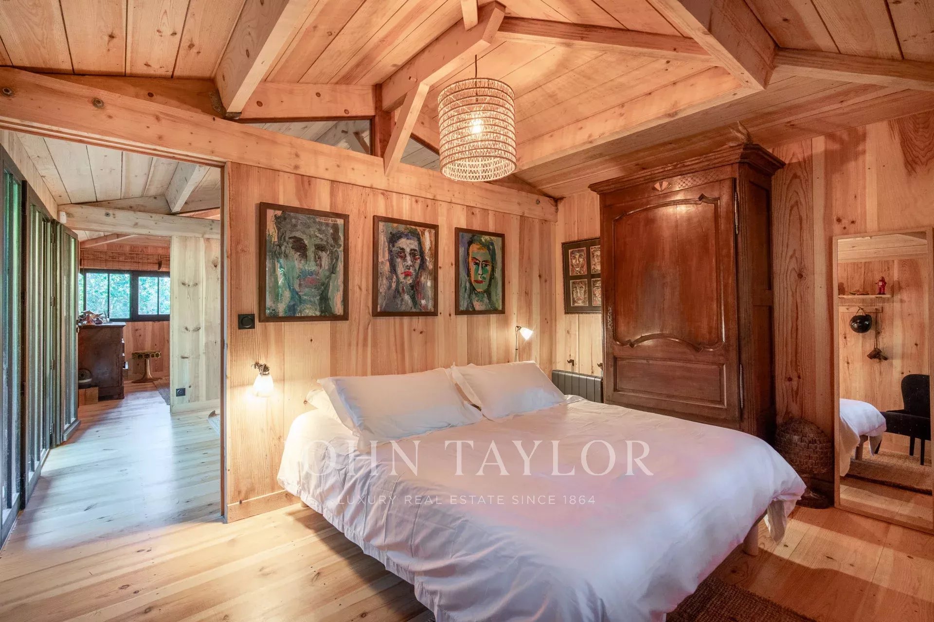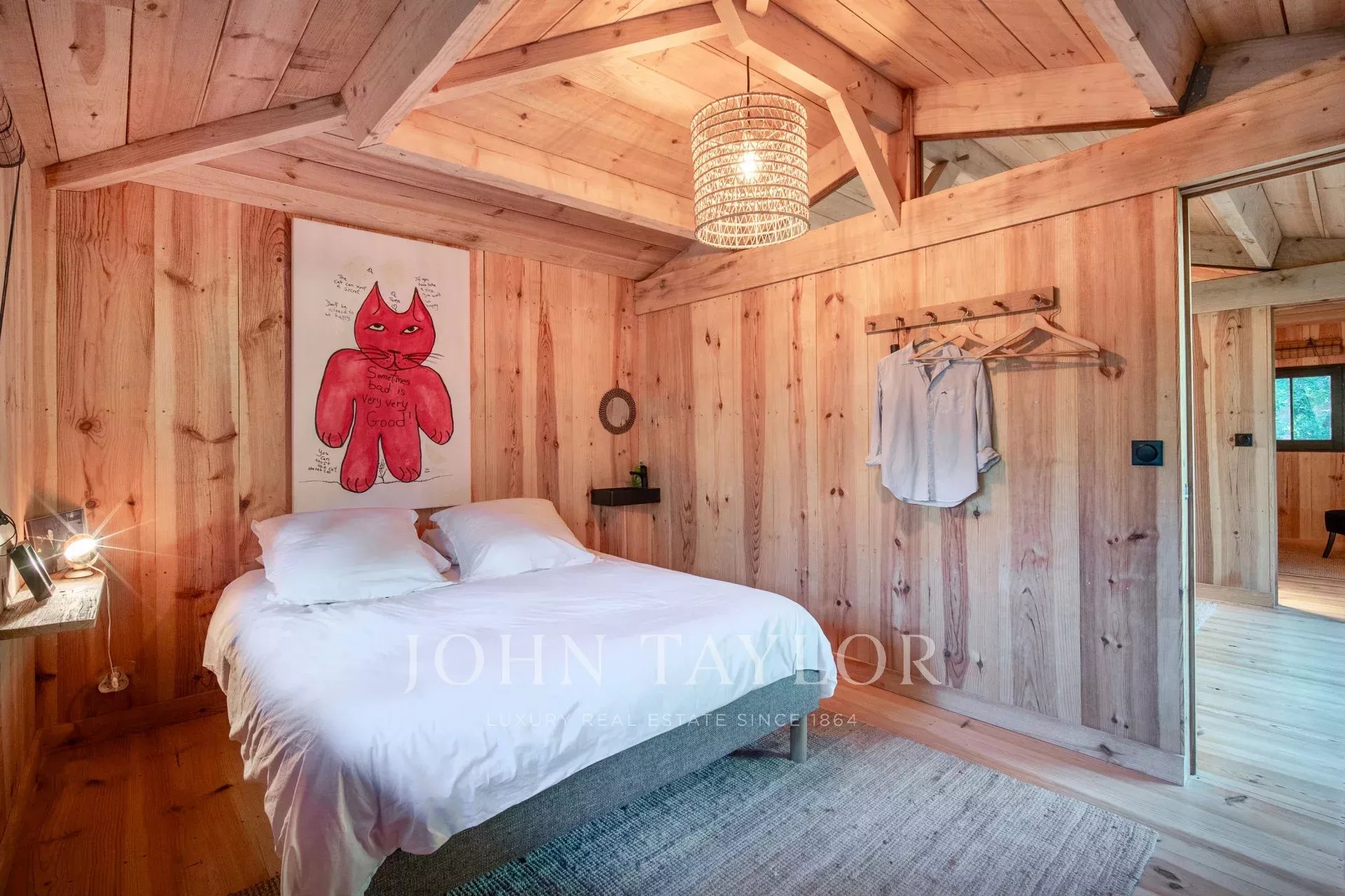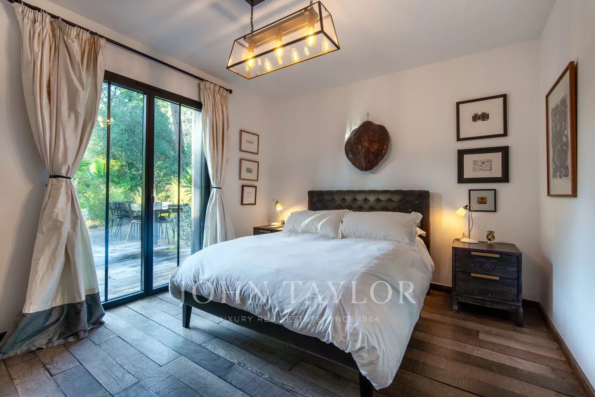 Das Haupthaus ist mit einer anspruchsvollen Dekoration ausgestattet und bietet zwei Schlafzimmer, jeweils mit eigenem Badezimmer. Eine zusätzliche Suite mit eigenem Zugang sowie ein Anbau mit zwei Schlafzimmern und einem Badezimmer ergänzen das Ensemble.