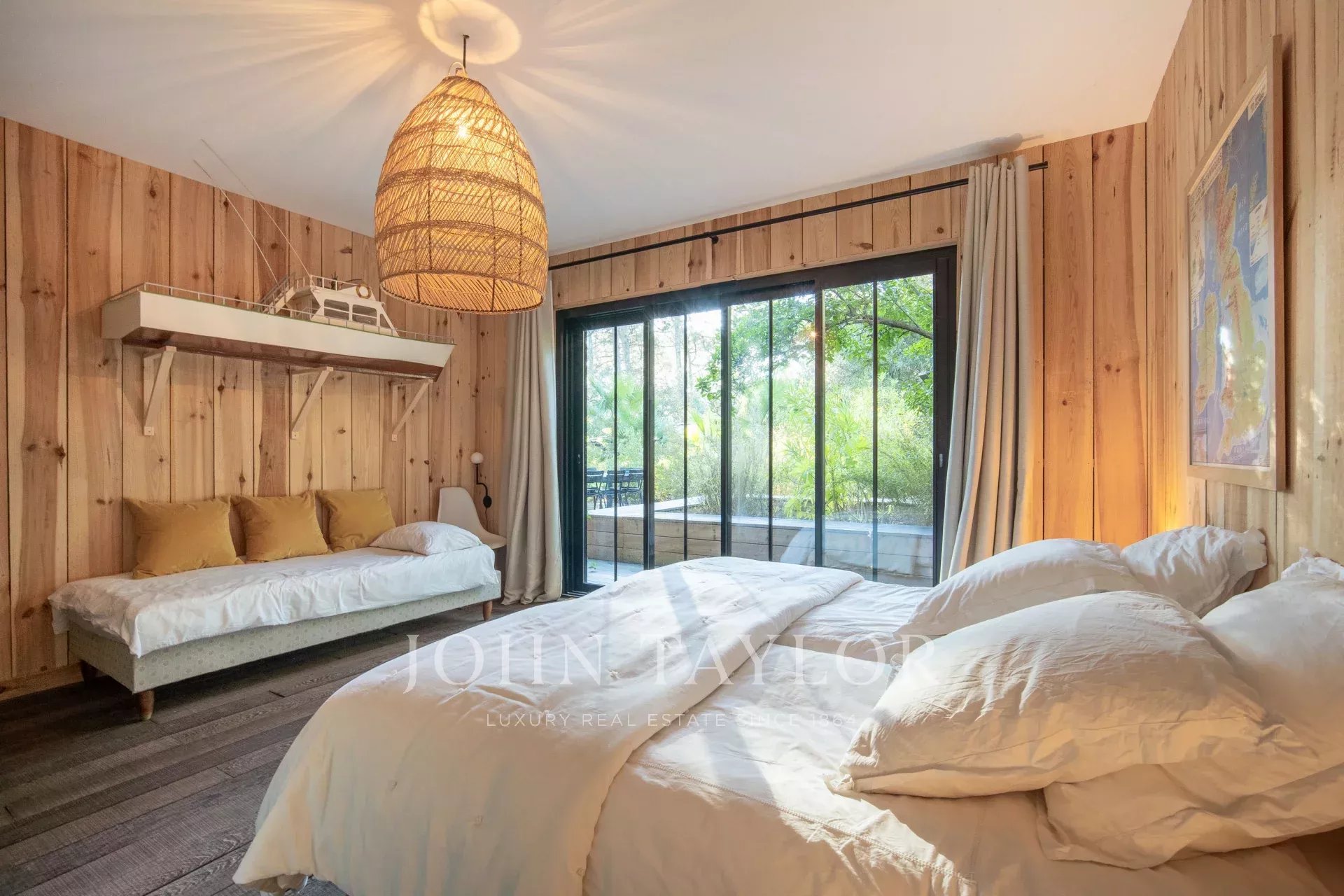 Die Außenbereiche bilden das pulsierende Herz der Villa. Die Sommerküche mit Plancha und Grill bietet die Wahl, während der Pool zu einer erfrischenden Pause einlädt. Ein wirklich einladender Lebensraum für Momente mit Familie oder Freunden.