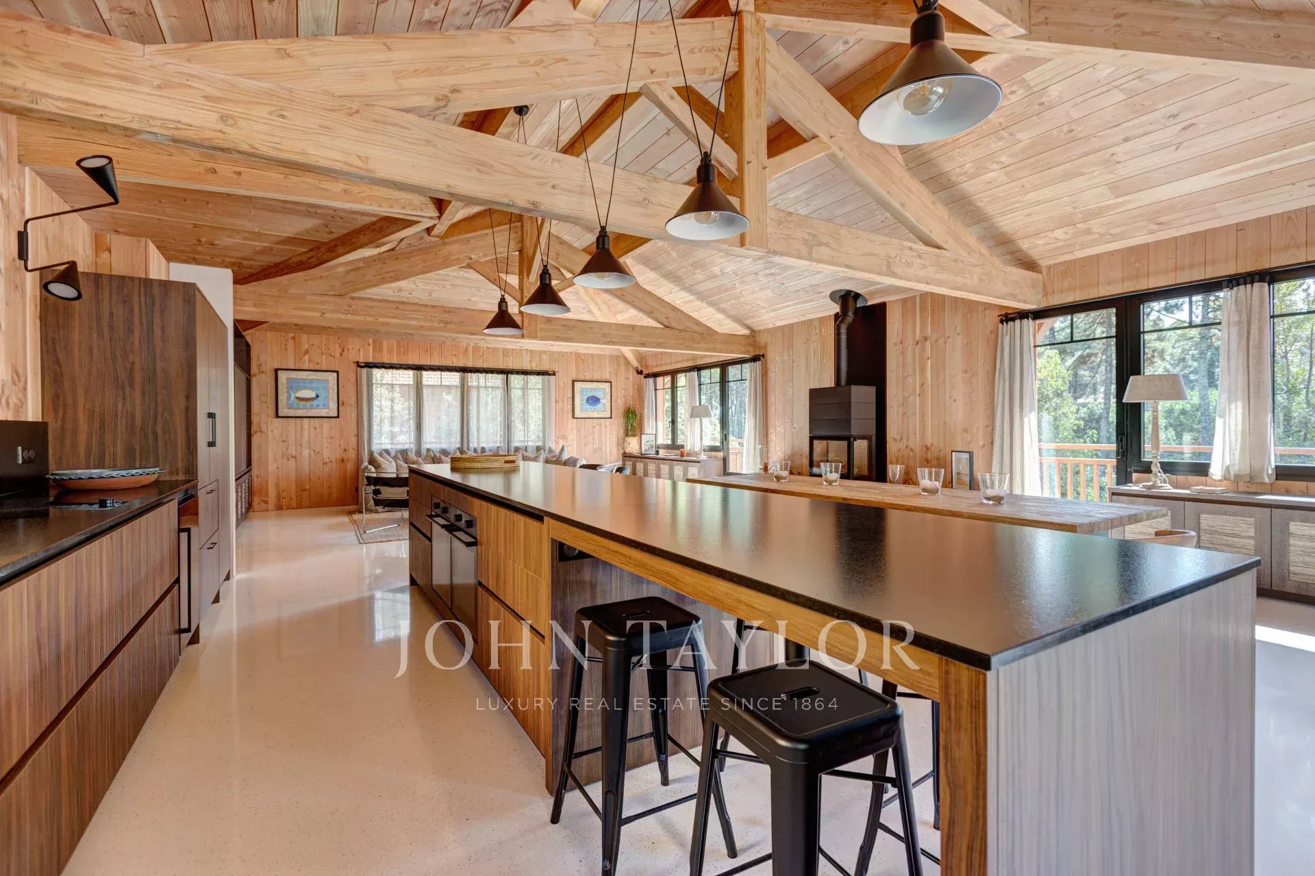 Willkommen in der Villa Mori, einem beeindruckenden Holzhaus, das hoch über den Hügeln von Ferret im charmanten und lebhaften Dorf Canon thront. Diese Unterkunft vereint Design, Qualität und Komfort mit akribischer Liebe zum Detail, um auch die anspruchsvollsten Gäste zufriedenzustellen.