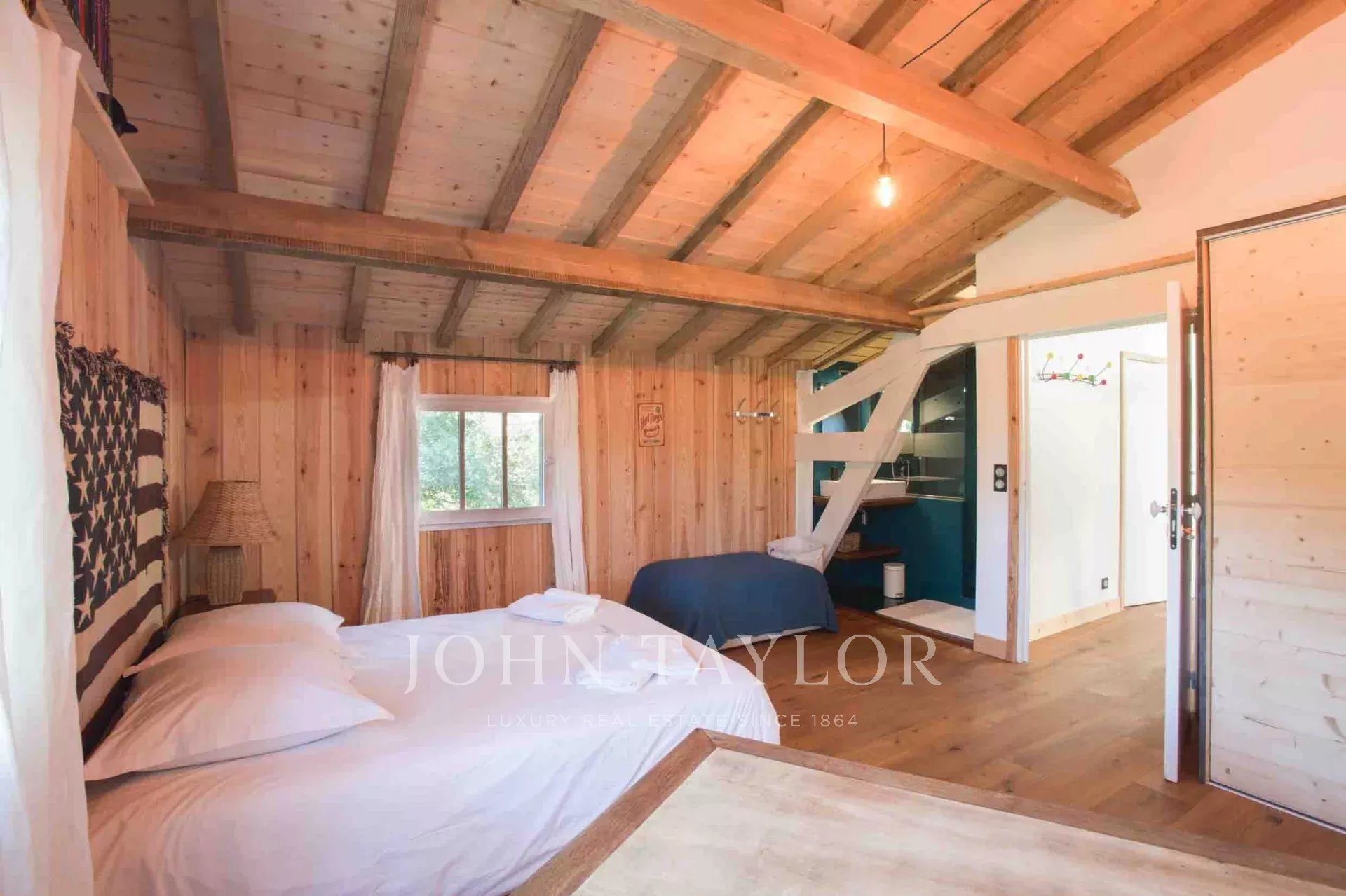 Das Haupthaus verfügt über fünf Schlafzimmer, jedes mit eigenem Bad, um absoluten Komfort für alle Gäste zu gewährleisten. Ein unabhängiges Studio mit zwei zusätzlichen Schlafplätzen und eigener Küche ergänzt das Ensemble und bietet wertvolle Flexibilität für müheloses Empfangen.