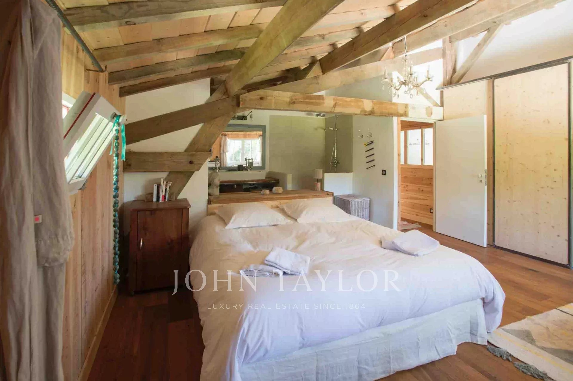 Der Außenbereich, ein wahrer Ruhepol, lädt ein, die Kunst des Lebens zu genießen. Der beheizte Pool, eingebettet in einen üppigen Garten, verspricht unvergessliche Entspannungsmomente in völliger Abgeschiedenheit. Bei Einbruch der Dunkelheit wird die Feuerstelle zum bevorzugten Treffpunkt für warme, unvergessliche Abende, während der Bouleplatz einen Hauch von lokalem Charme hinzufügt. Kinder werden sich über ein Spielzimmer freuen, das speziell darauf ausgelegt ist, ihre Fantasie anzuregen.
