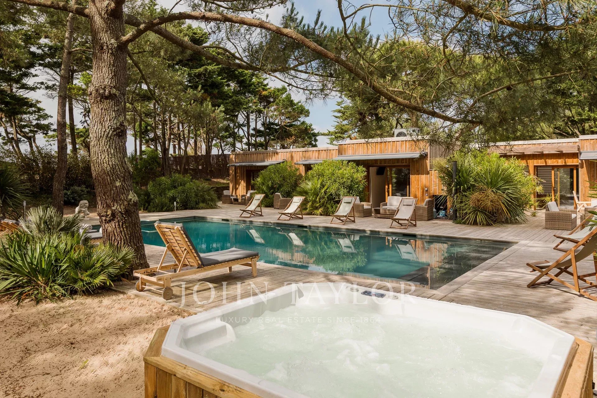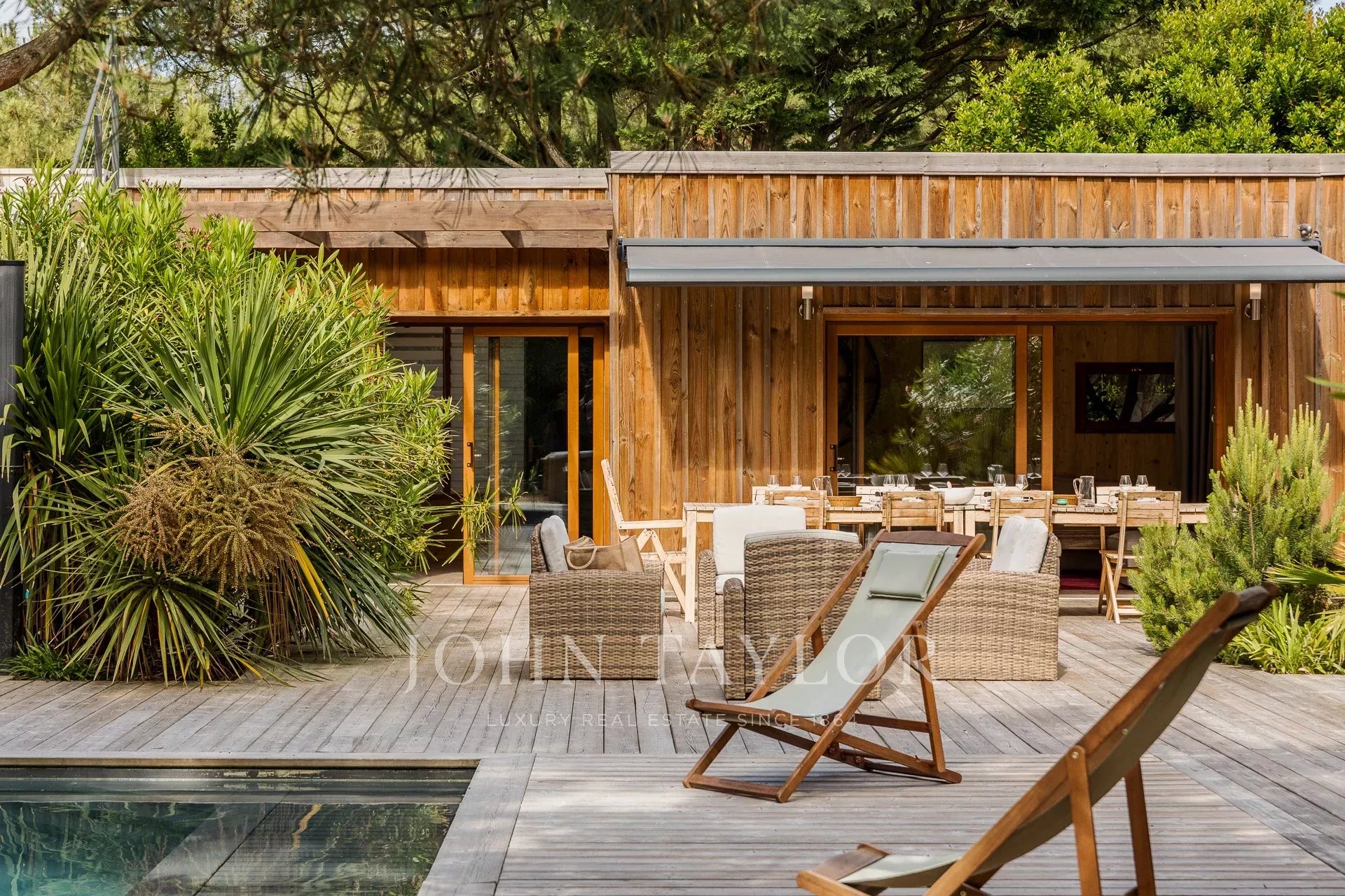 Eine Adresse für Kenner, ein diskretes Juwel des Luxus: Die Villa Opale gehört zu den exklusivsten Anwesen an der Spitze von Cap Ferret. Abgeschirmt von Blicken verkörpert diese seltene Mietvilla den zeitlosen, vertraulichen Geist der Halbinsel. Hier begegnen sich Ruhe und Raffinesse auf höchstem Niveau.