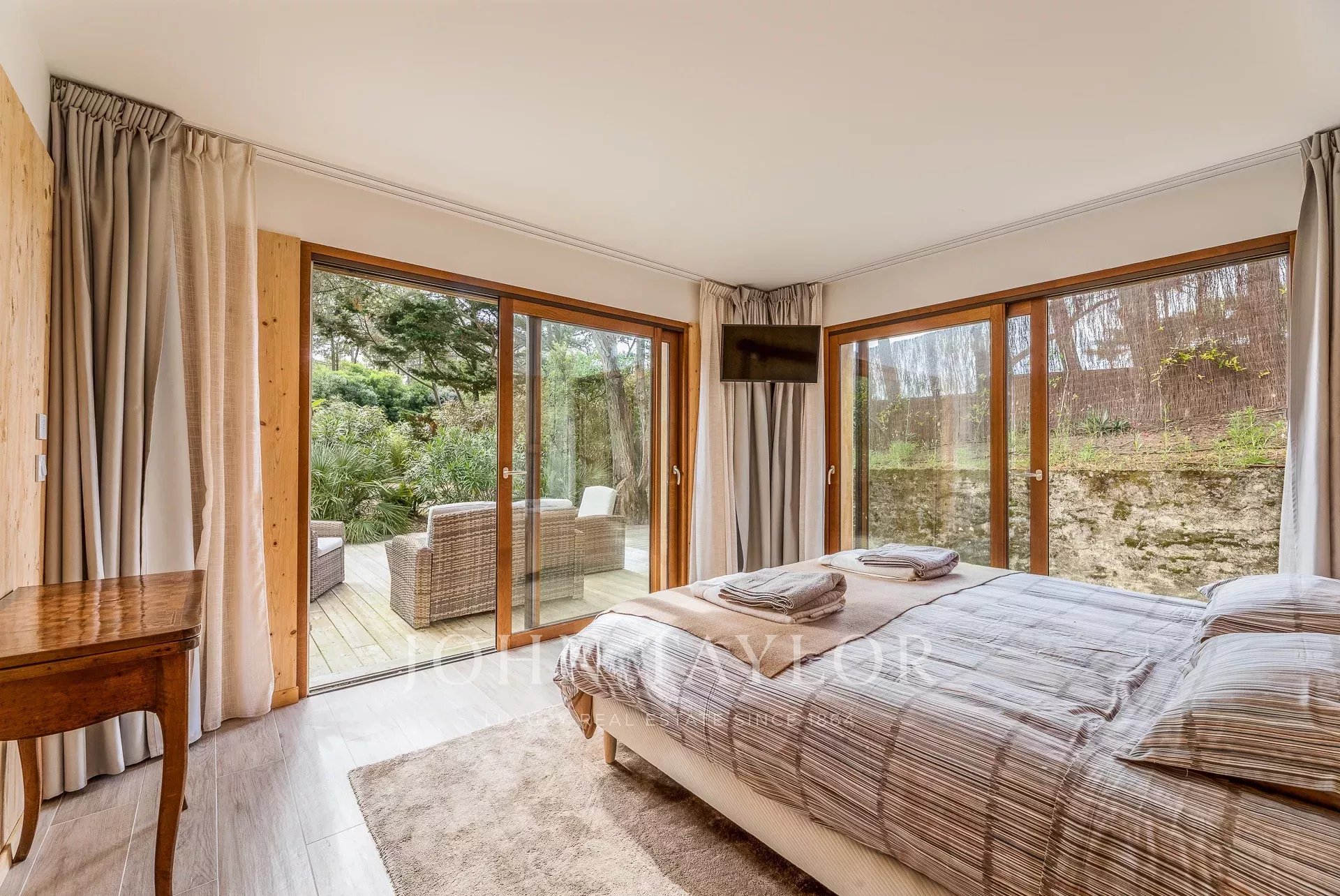 Die Villa Opale verfügt über vier komfortable Suiten mit Kingsize-Betten (200x200 cm) und privaten Badezimmern. Eine separate Familien-Dependance ergänzt das Ensemble – ideal für Kinder oder Teenager mit zwei Etagenbetten als Bonus.