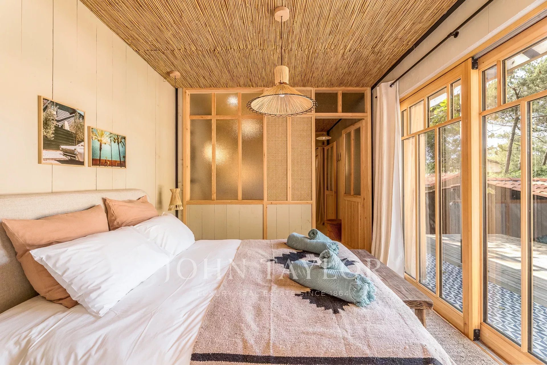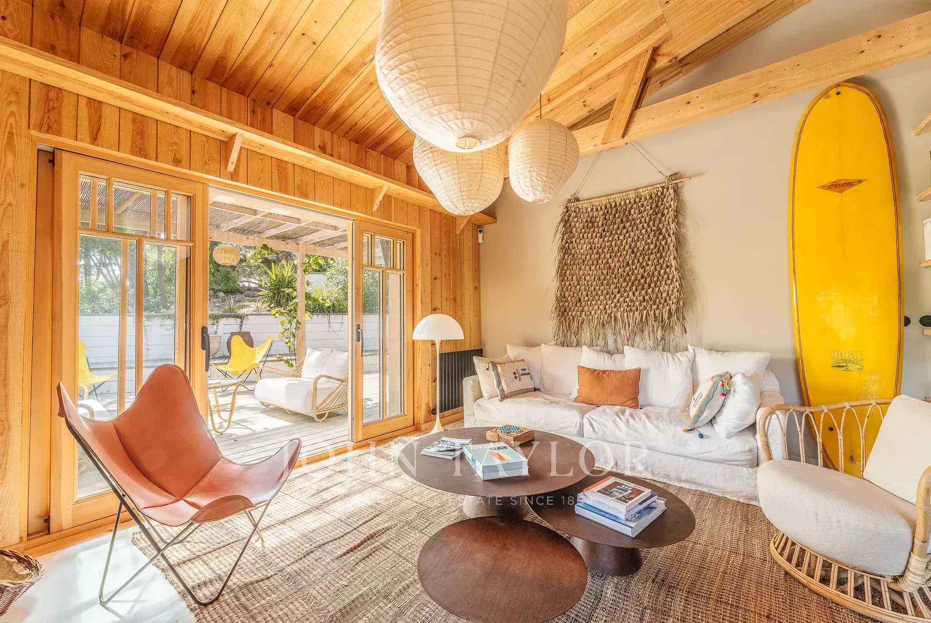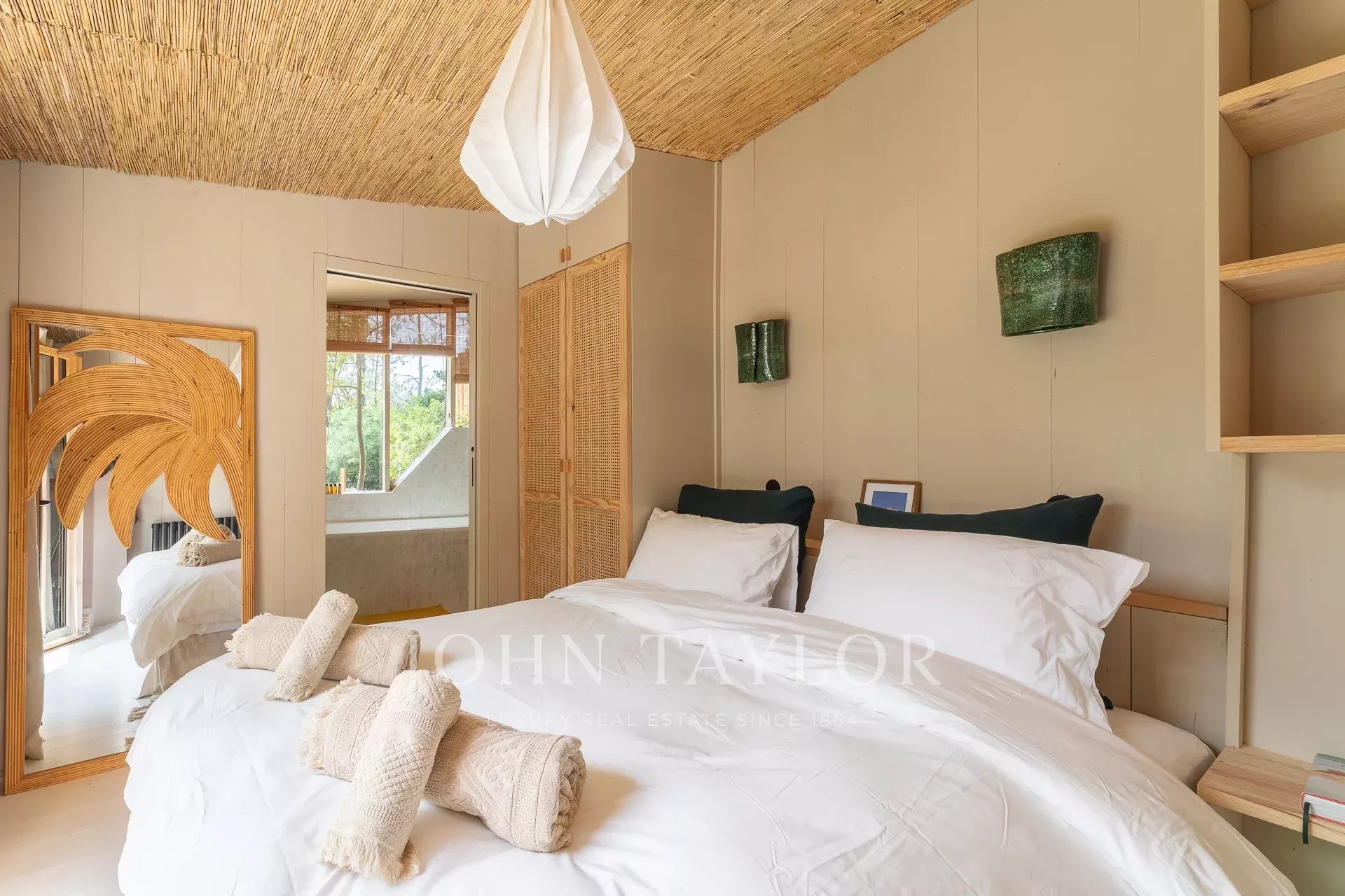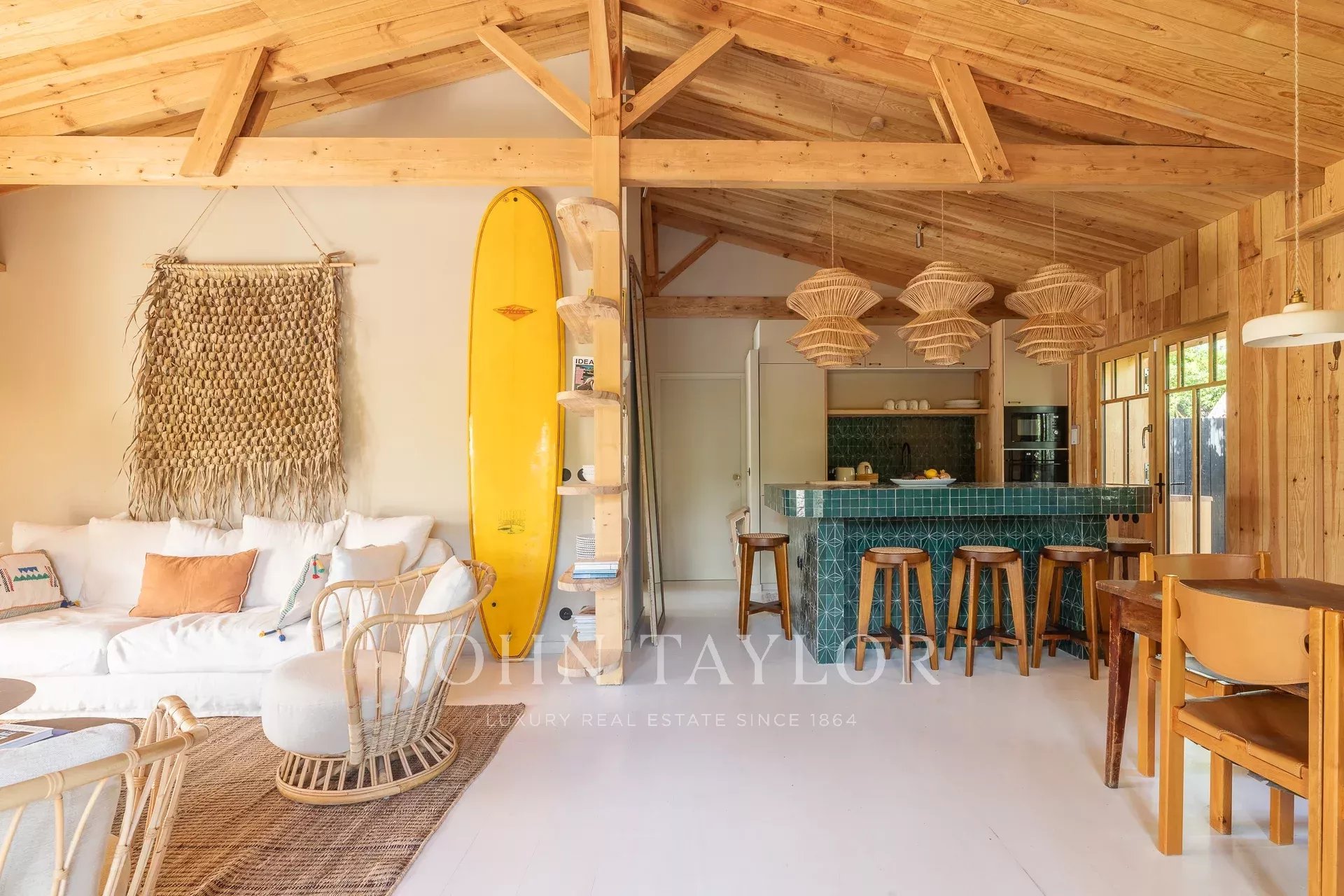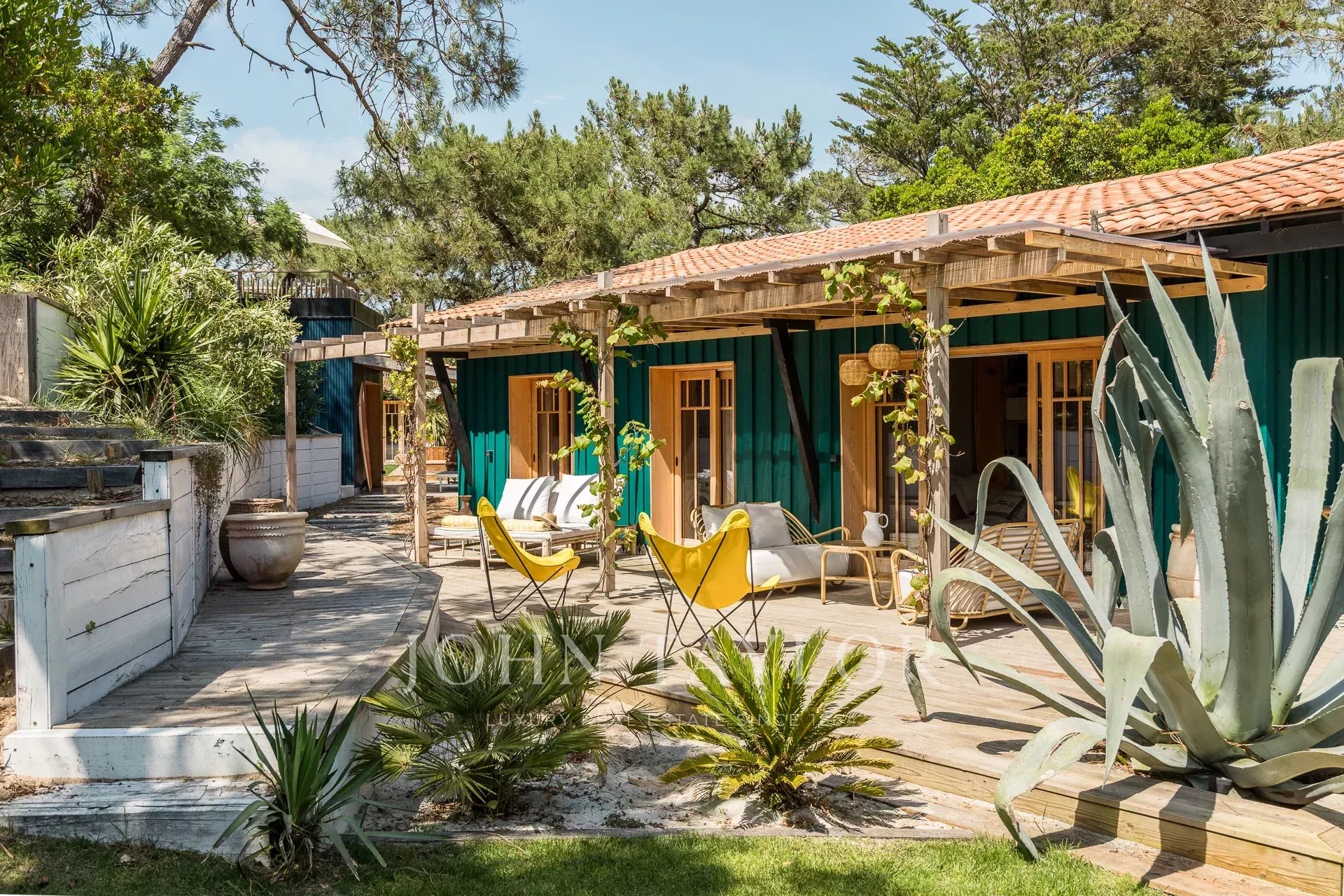 Die Solara Lodge liegt diskret im Herzen von Cap Ferret, nur wenige Schritte vom Ozean und dem Horizon-Strand entfernt. Sie lädt zu einer seltenen Flucht aus dem Alltag ein, zwischen natürlicher Eleganz und einem subtil überarbeiteten Hüttengeist. Dieses vertrauliche Anwesen wurde von einem renommierten Architekten entworfen und verkörpert die raffinierte Ästhetik einer Surf-Lodge der Spitzenklasse, in der ein freier und anspruchsvoller Lebensstil gepflegt wird, mit den Füßen im Sand und dem Blick auf den Ozean.