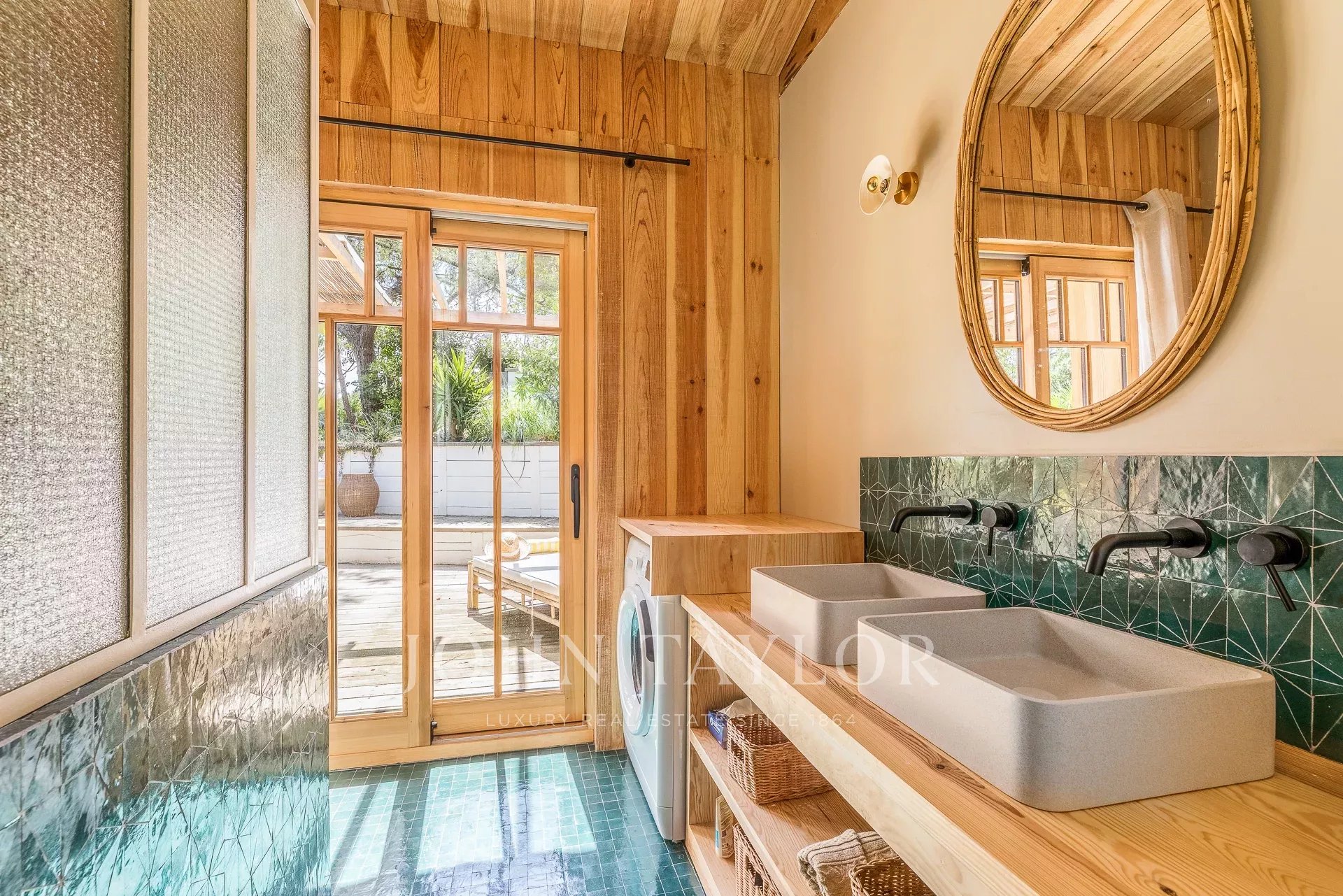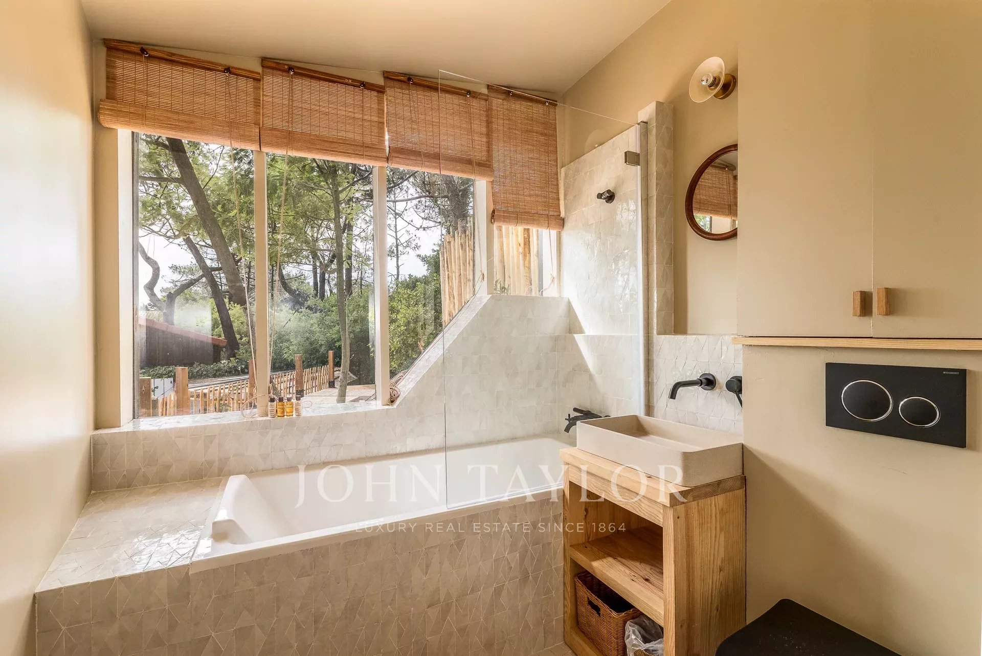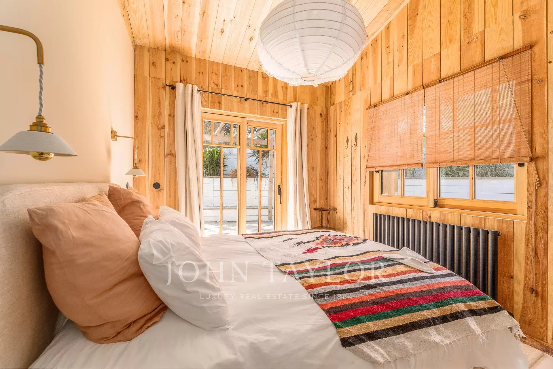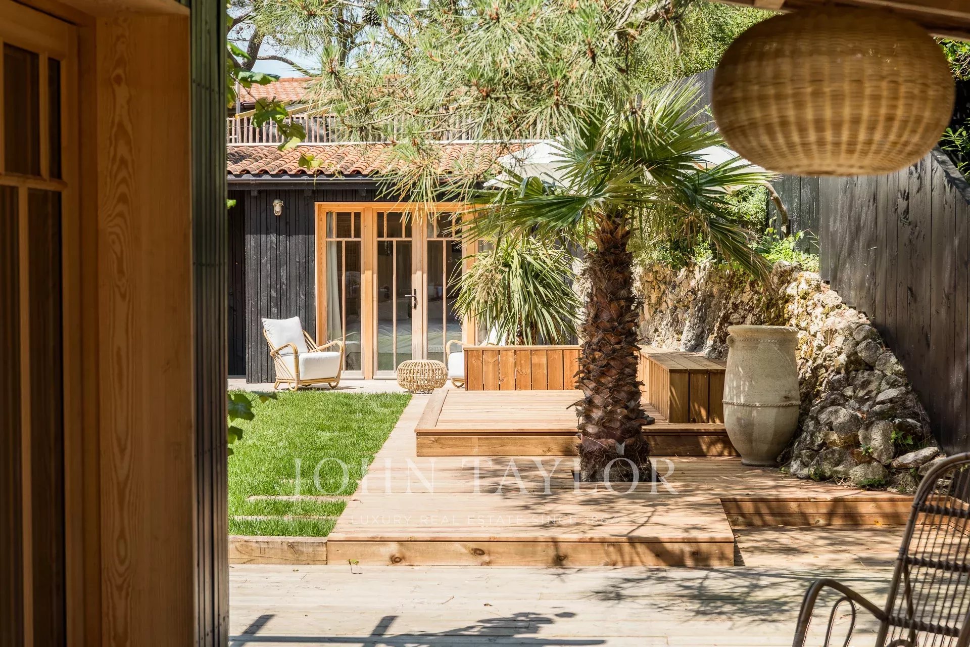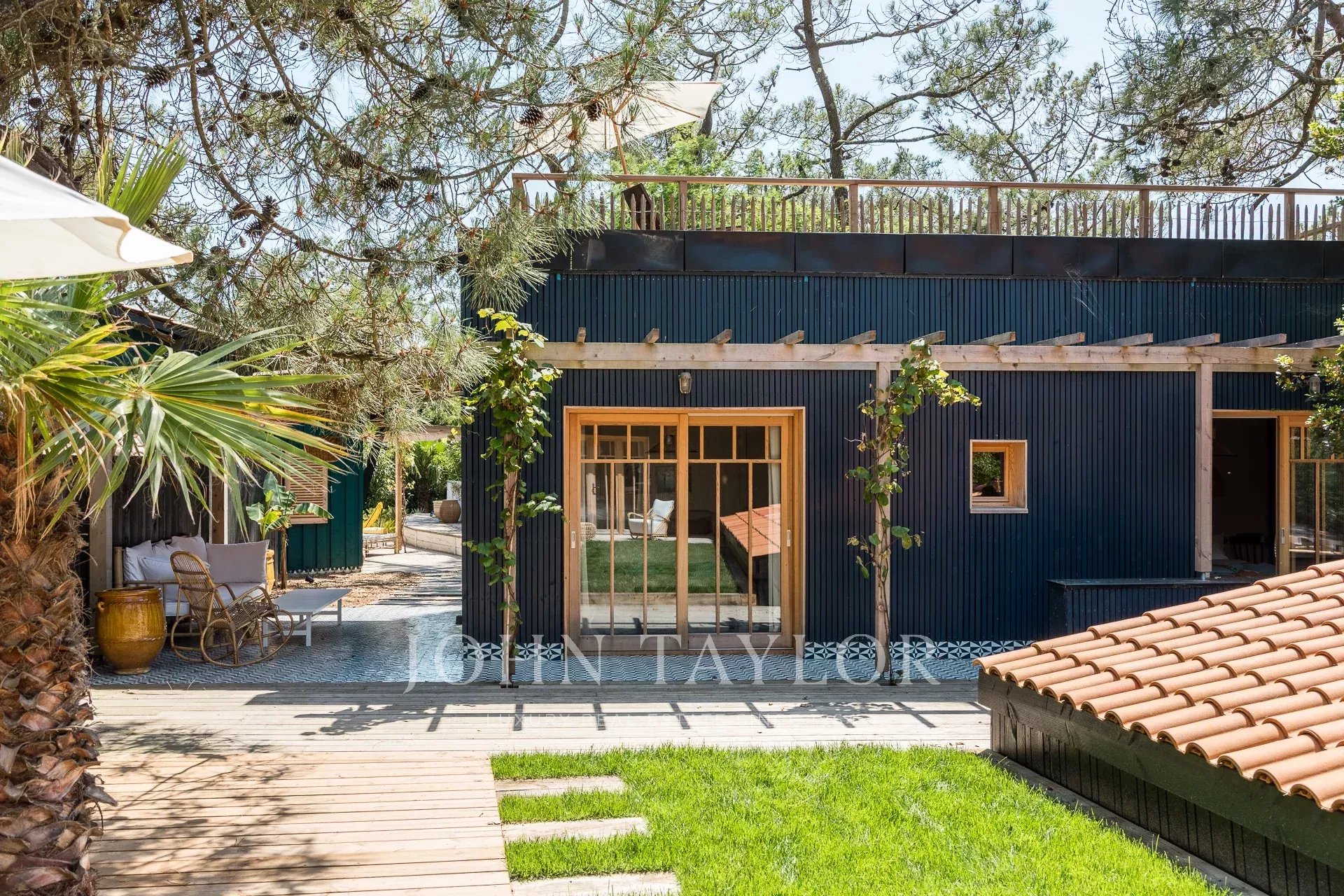 Die Solara Lodge liegt diskret im Herzen von Cap Ferret, nur wenige Schritte vom Ozean und dem Horizon-Strand entfernt. Sie lädt zu einer seltenen Flucht aus dem Alltag ein, zwischen natürlicher Eleganz und einem subtil überarbeiteten Hüttengeist. Dieses vertrauliche Anwesen wurde von einem renommierten Architekten entworfen und verkörpert die raffinierte Ästhetik einer Surf-Lodge der Spitzenklasse, in der ein freier und anspruchsvoller Lebensstil gepflegt wird, mit den Füßen im Sand und dem Blick auf den Ozean.