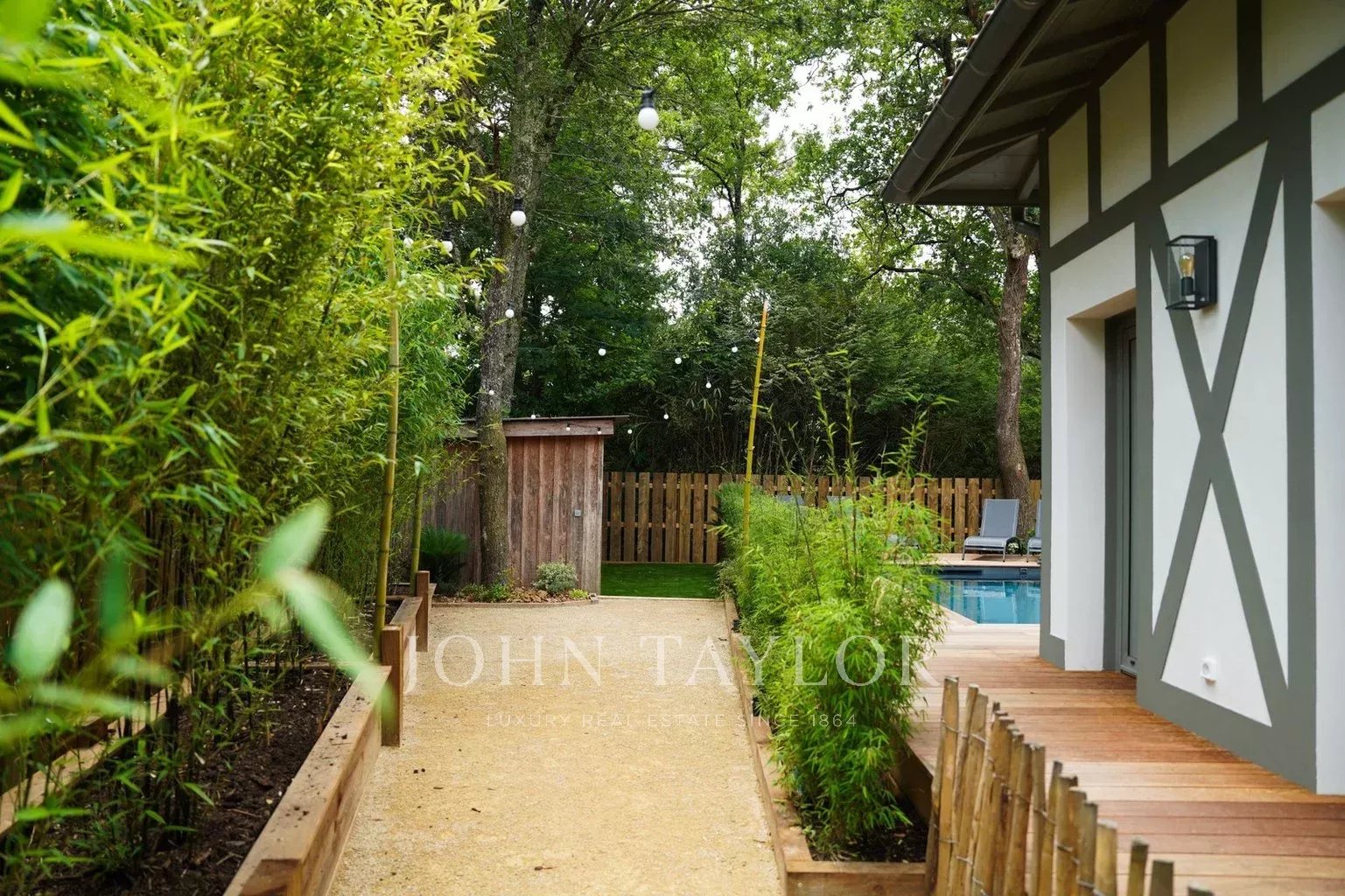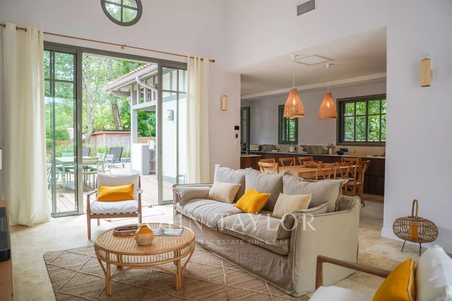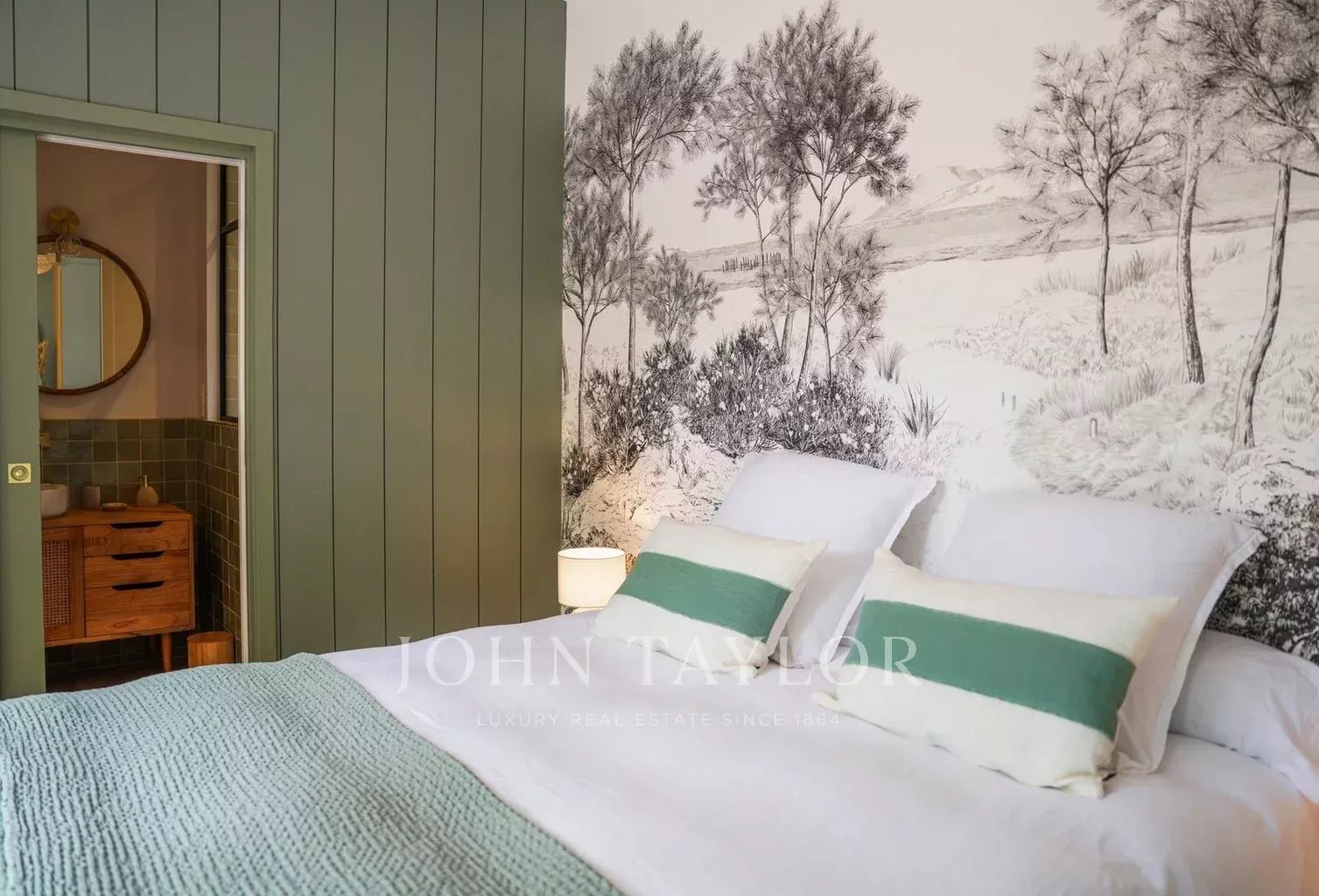 Die Villa La Musicienne liegt in Petit Piquey, nur wenige Minuten von der Pointe aux Chevaux auf der Halbinsel Cap Ferret entfernt. Das neue Anwesen ist von den baskisch-ländischen Häusern des Bassin inspiriert und bietet Platz für bis zu 12 Personen, ideal für einen Urlaub mit der Familie oder mit Freunden.
