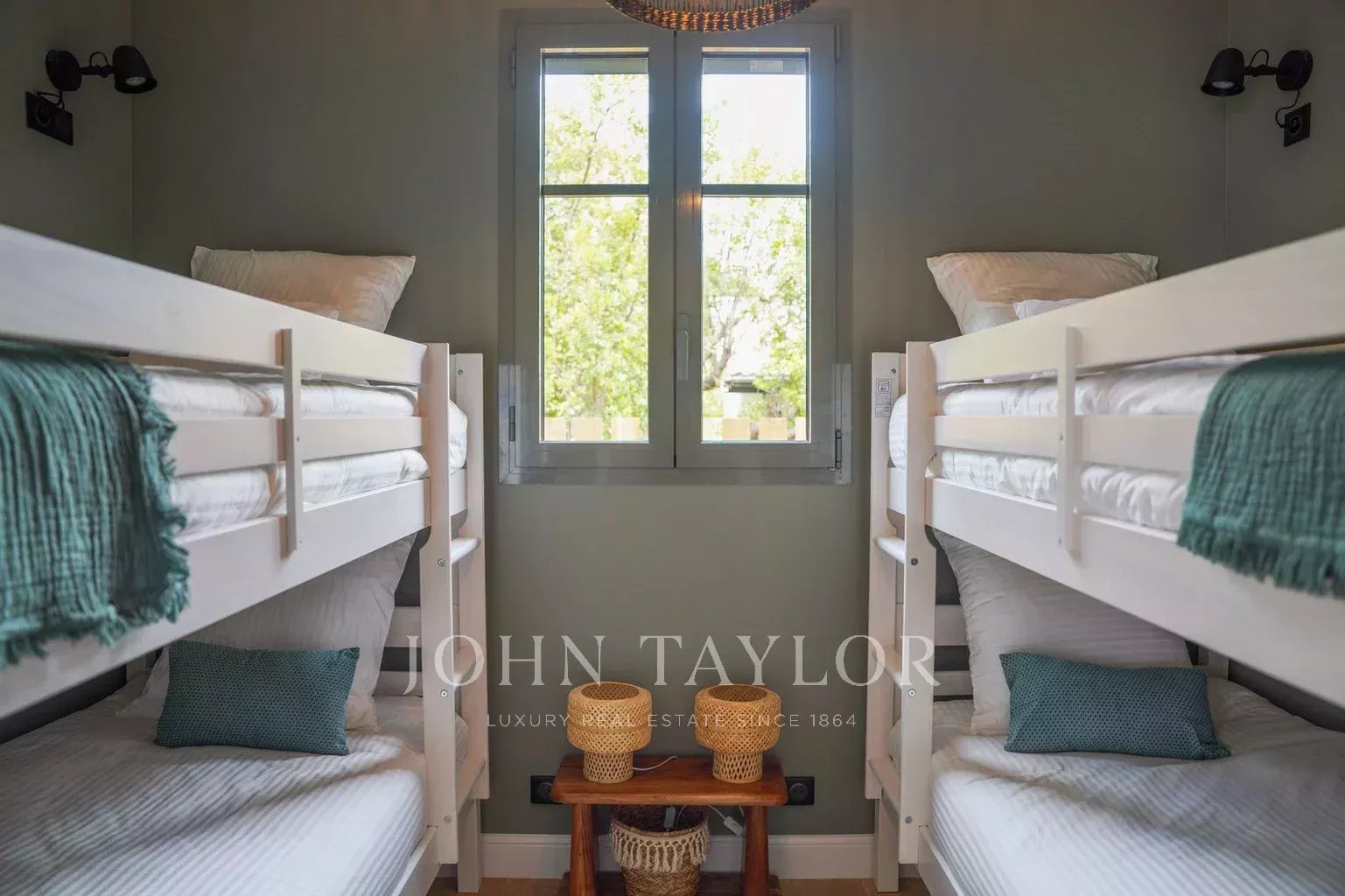 Die Hauptvilla verfügt über drei Doppelzimmer, jedes mit eigenem Badezimmer, darunter eine Mastersuite mit eigenem WC. Ein Schlafraum für vier Personen, der sich perfekt für Kinder eignet, vervollständigt den Schlafbereich. Eine unabhängige Suite mit direktem Zugang von der Terrasse aus verfügt ebenfalls über ein eigenes Badezimmer und WC und bietet zusätzlichen Komfort und Privatsphäre.